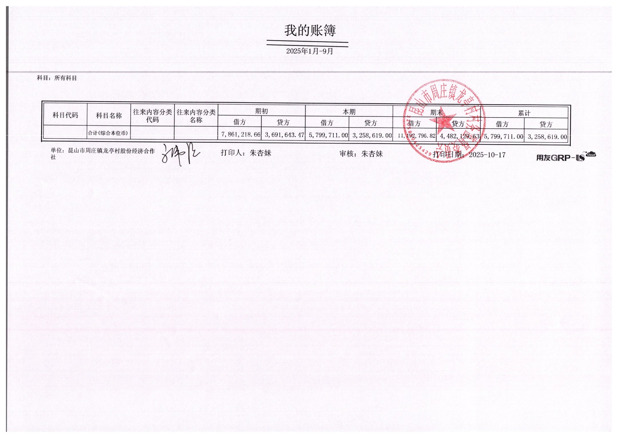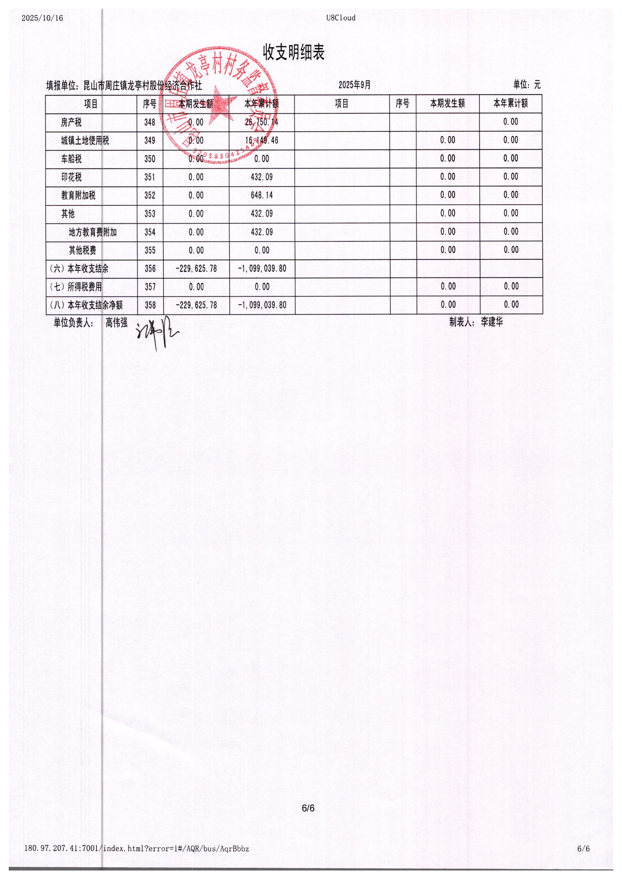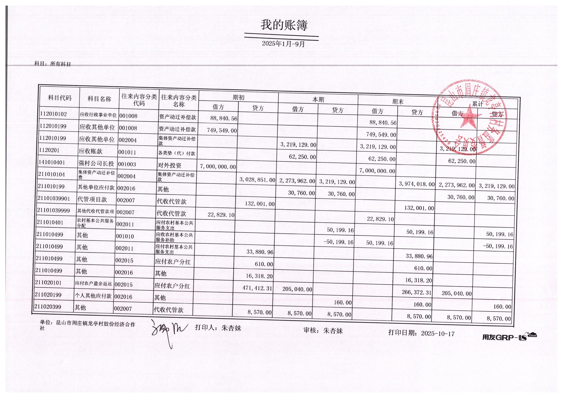 2025年9月股份經(jīng)濟合作社財務(wù)報表