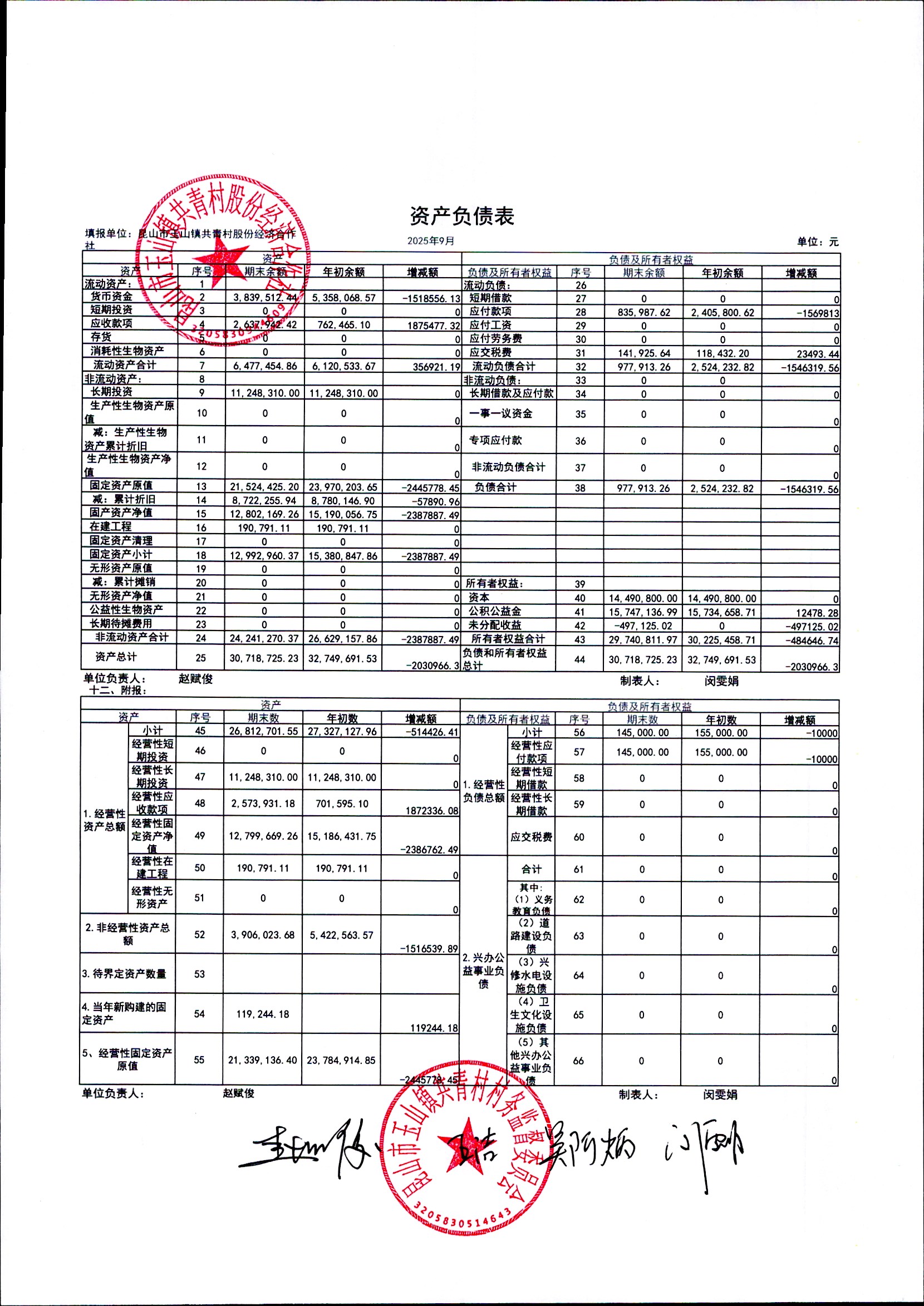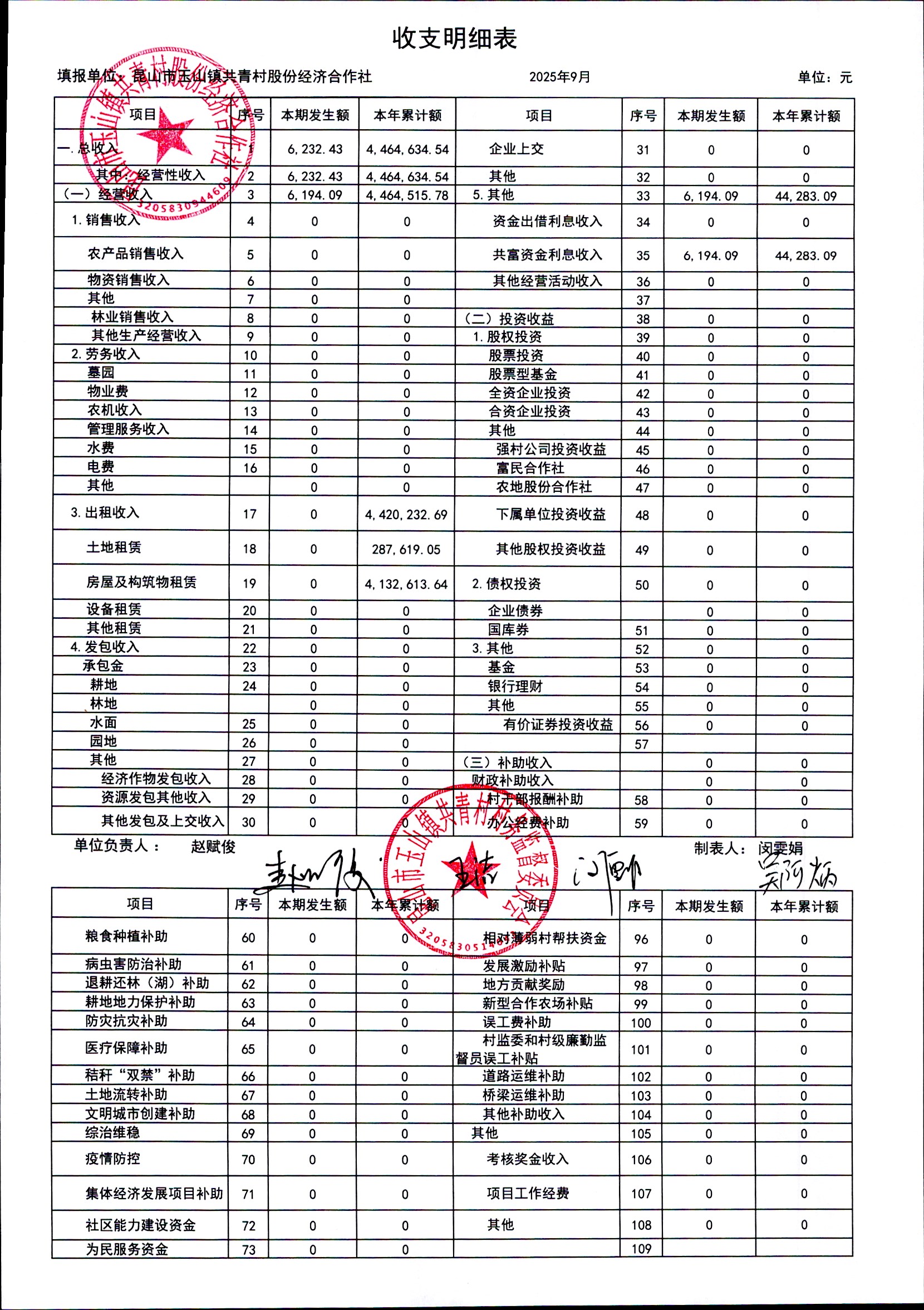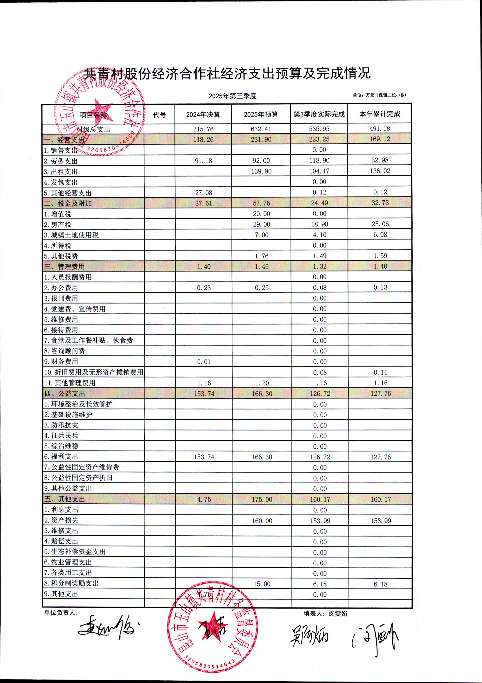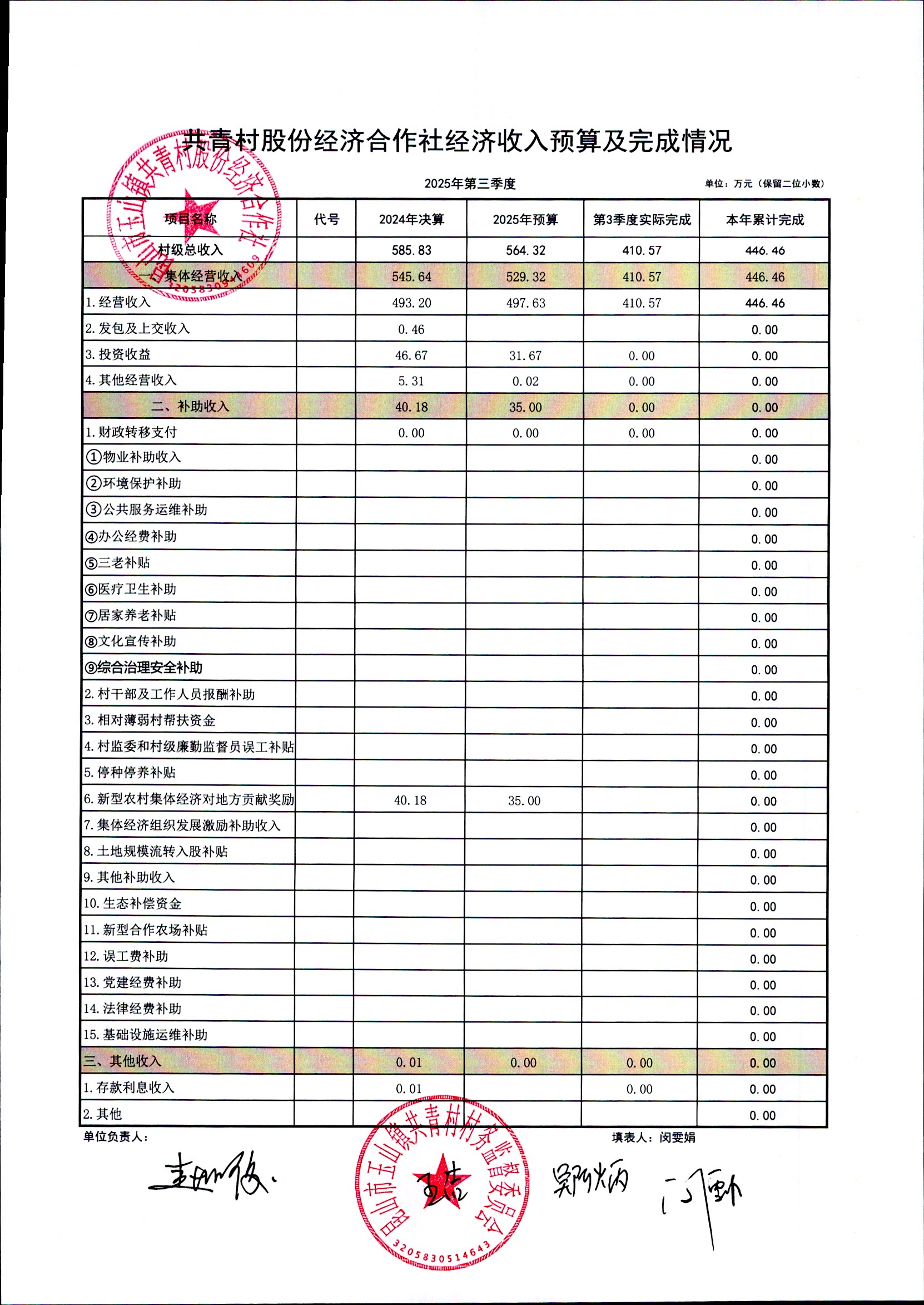 2025年10月共青村經(jīng)濟(jì)合作社財(cái)務(wù)公開