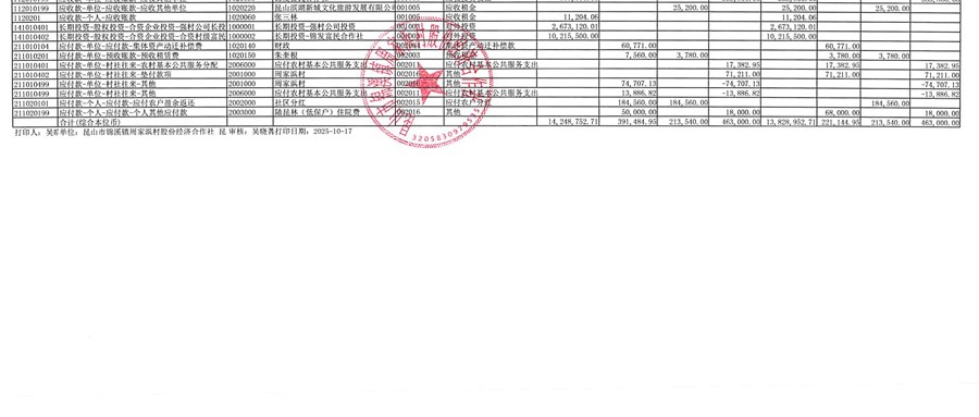 2025年周家浜村股份經(jīng)濟合作社10月份財務公開