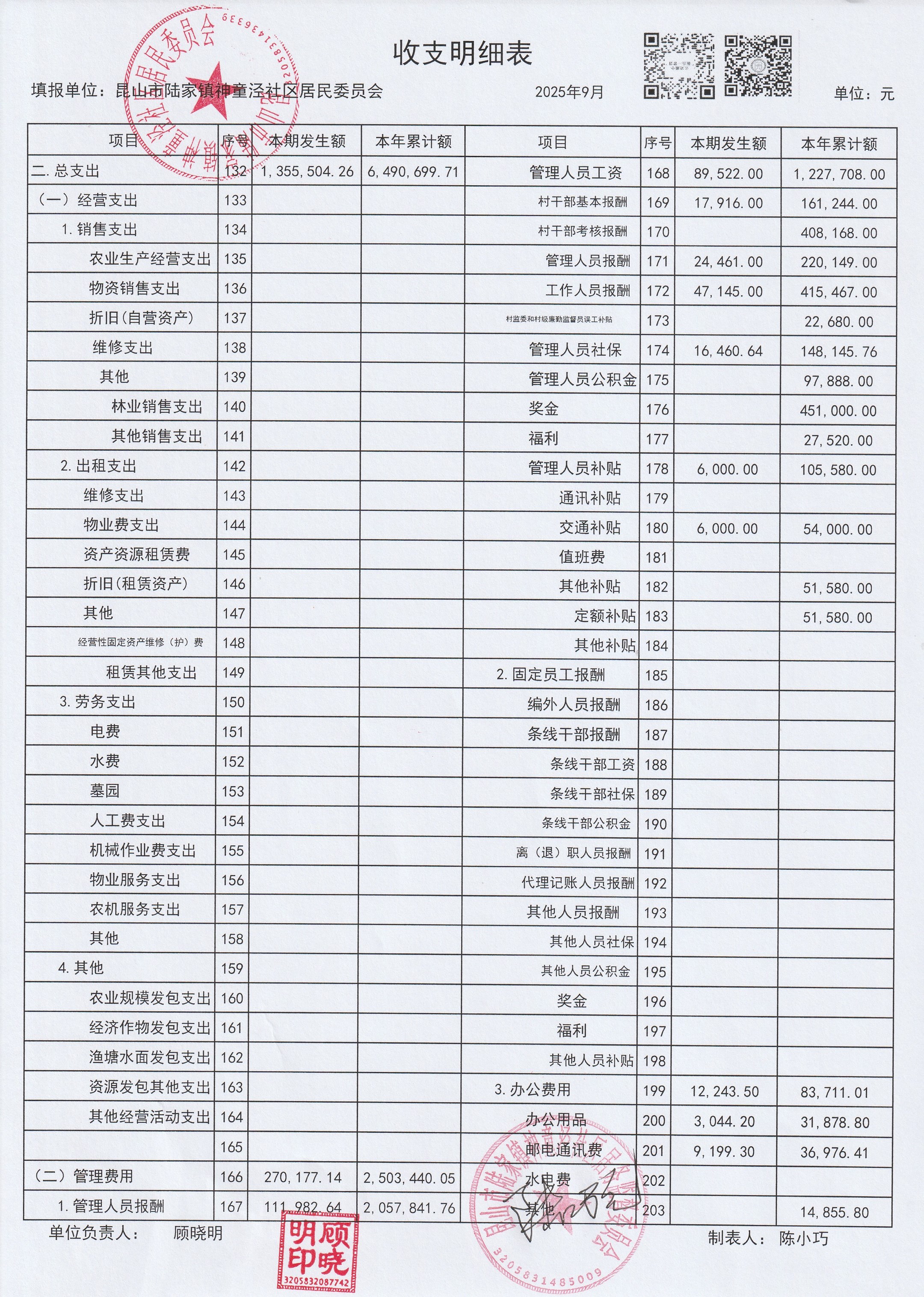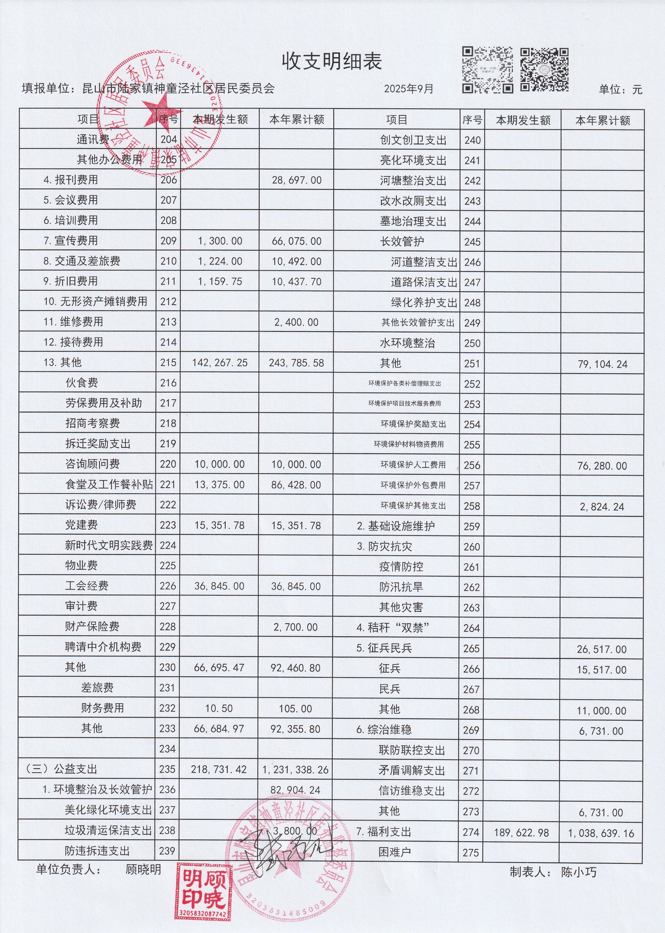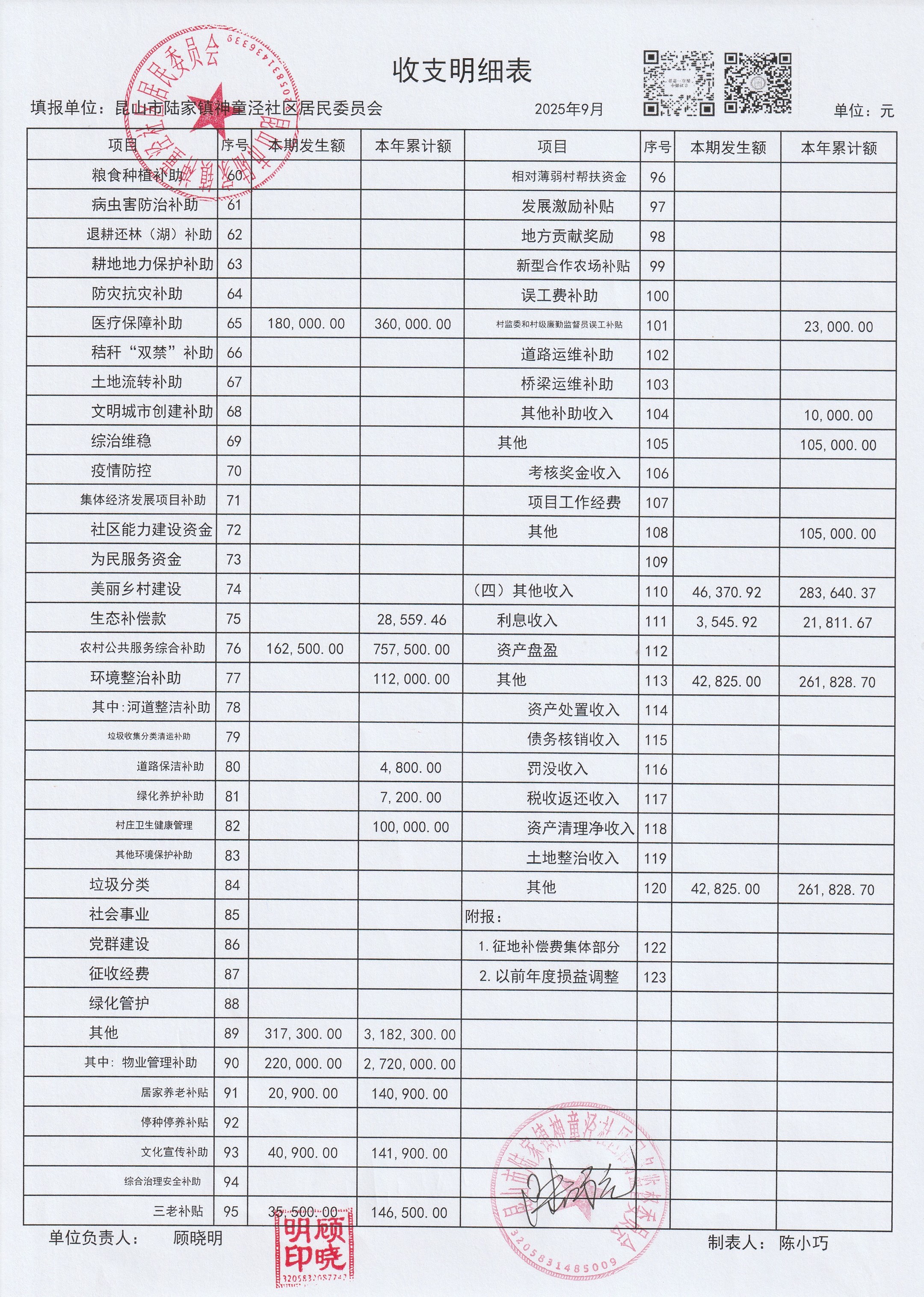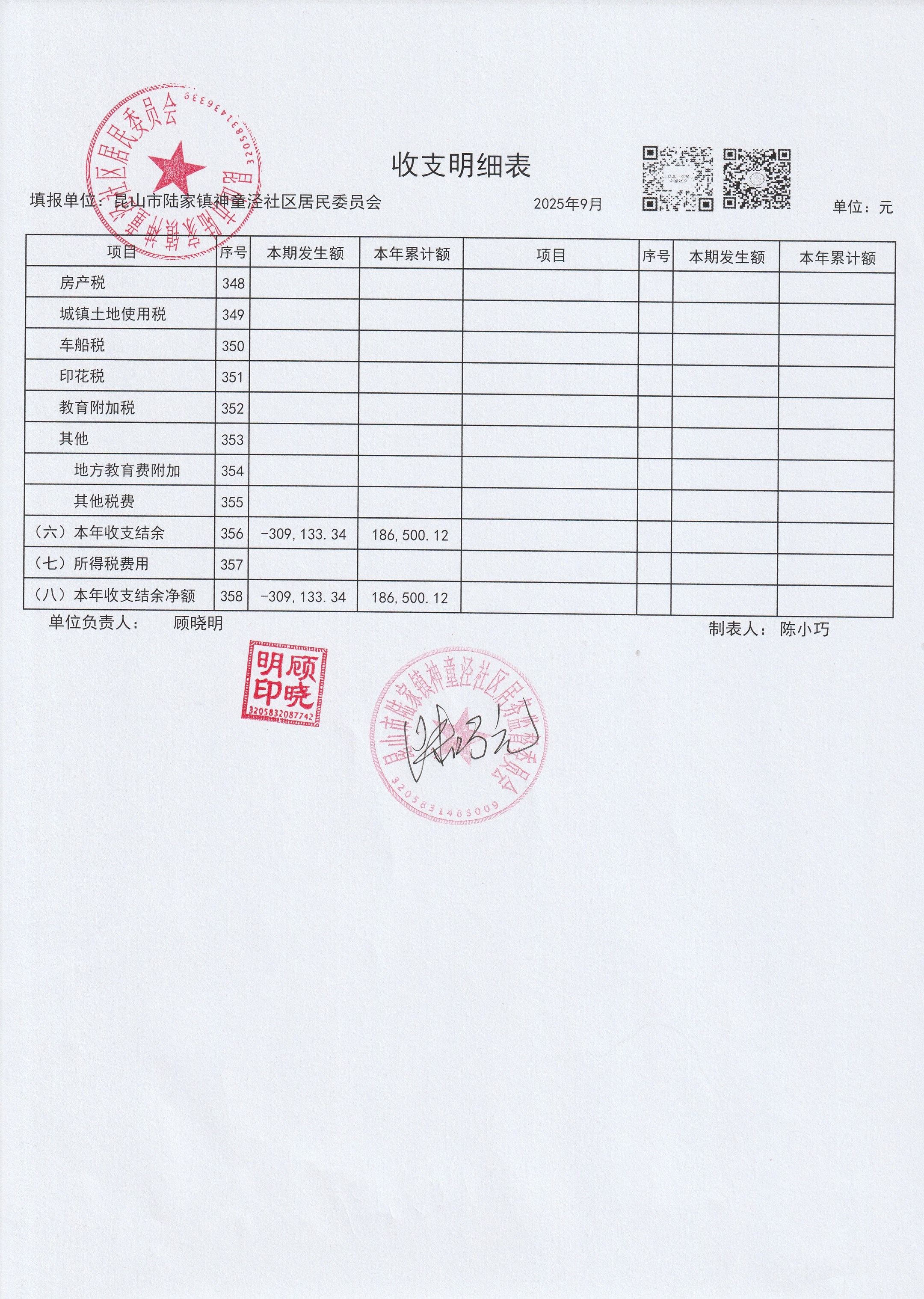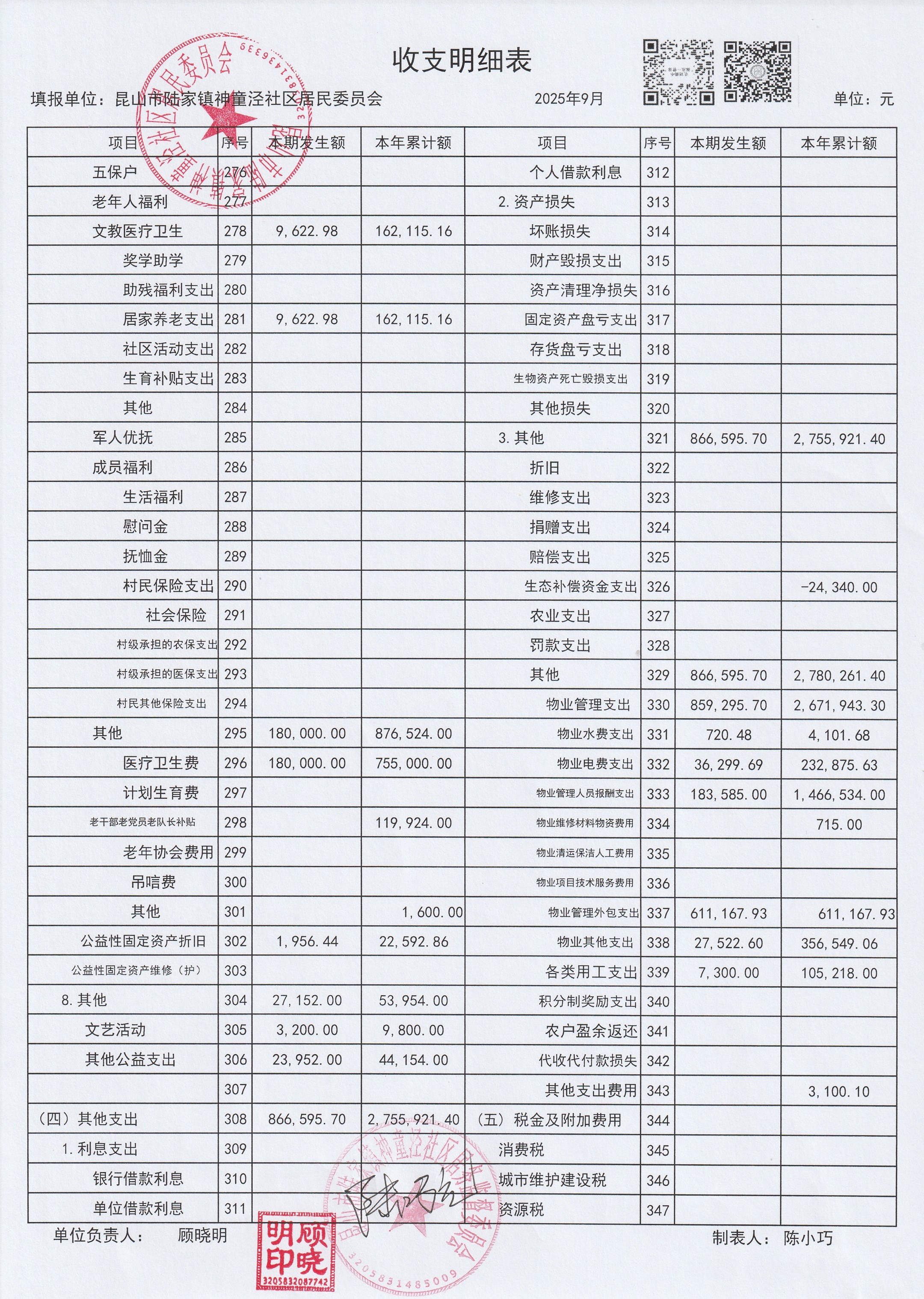 神童涇社區(qū)居民委員會財務(wù)公開(2025年9月)
