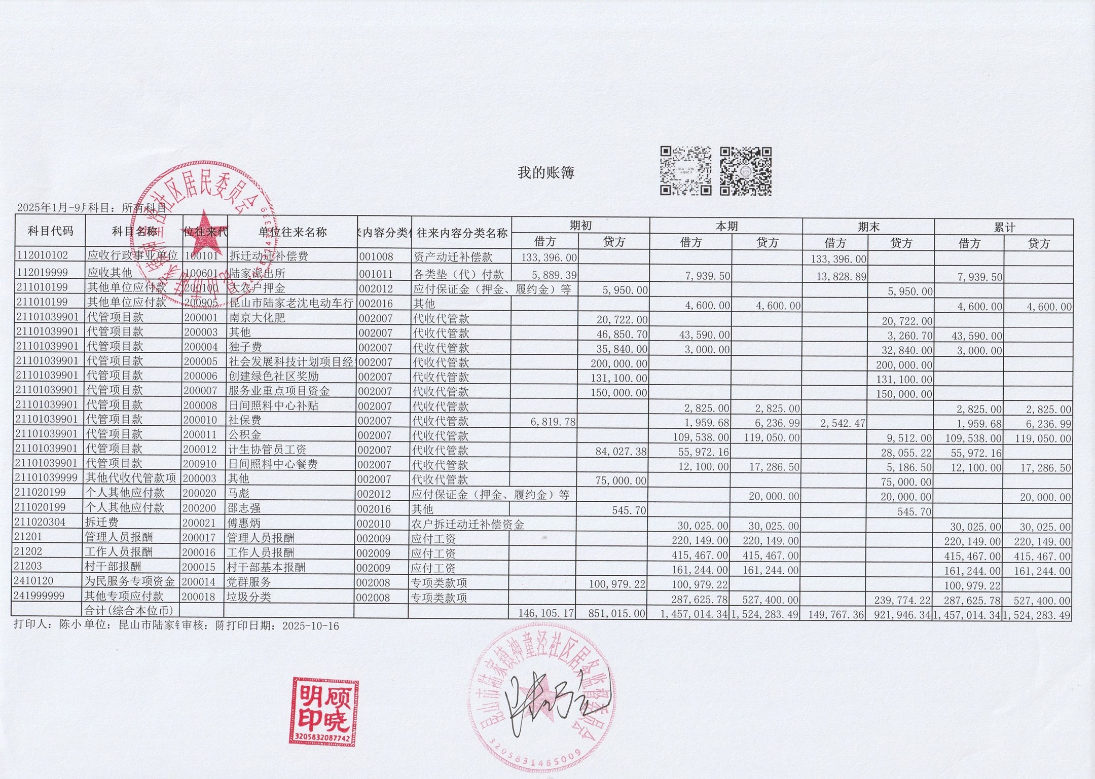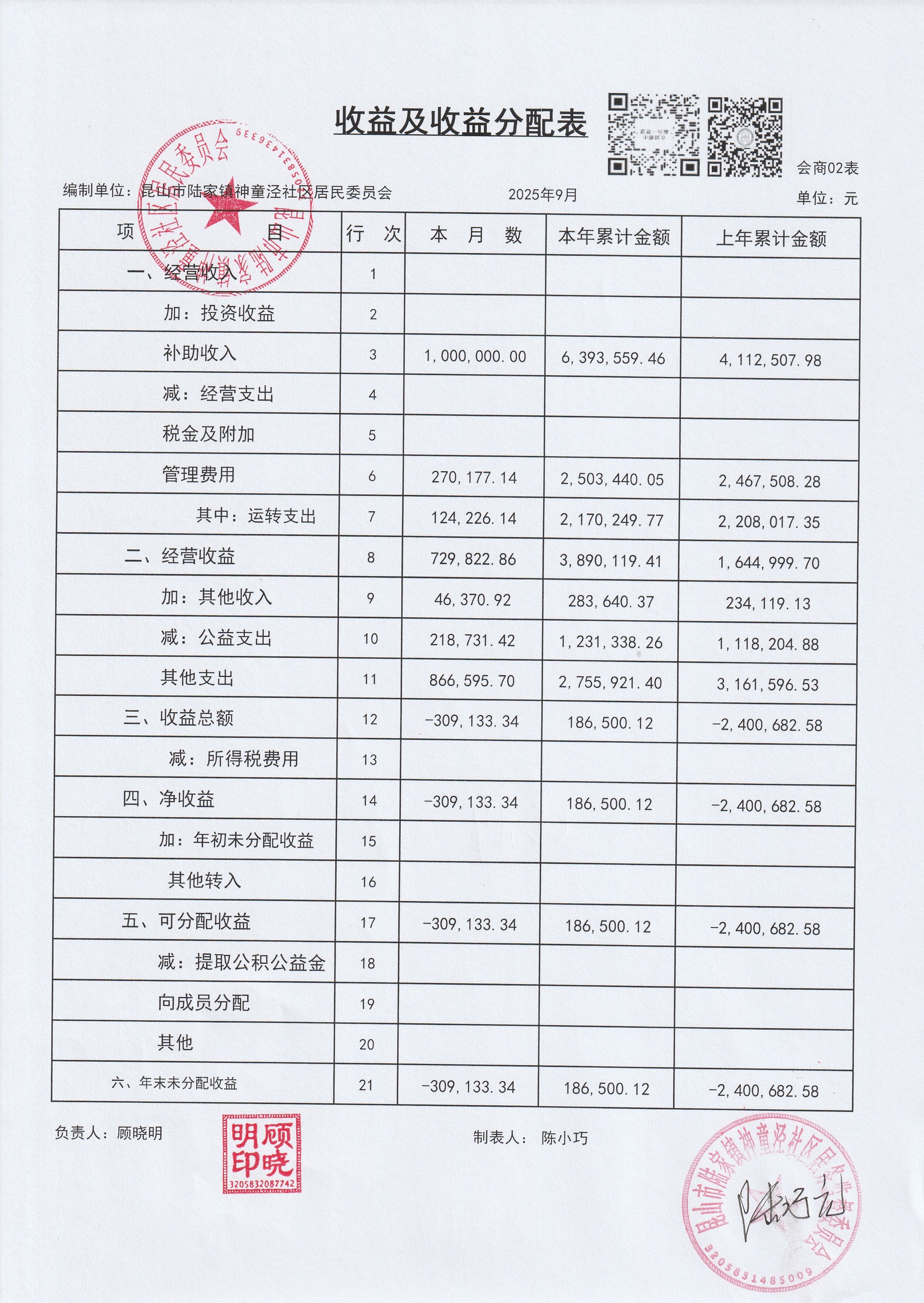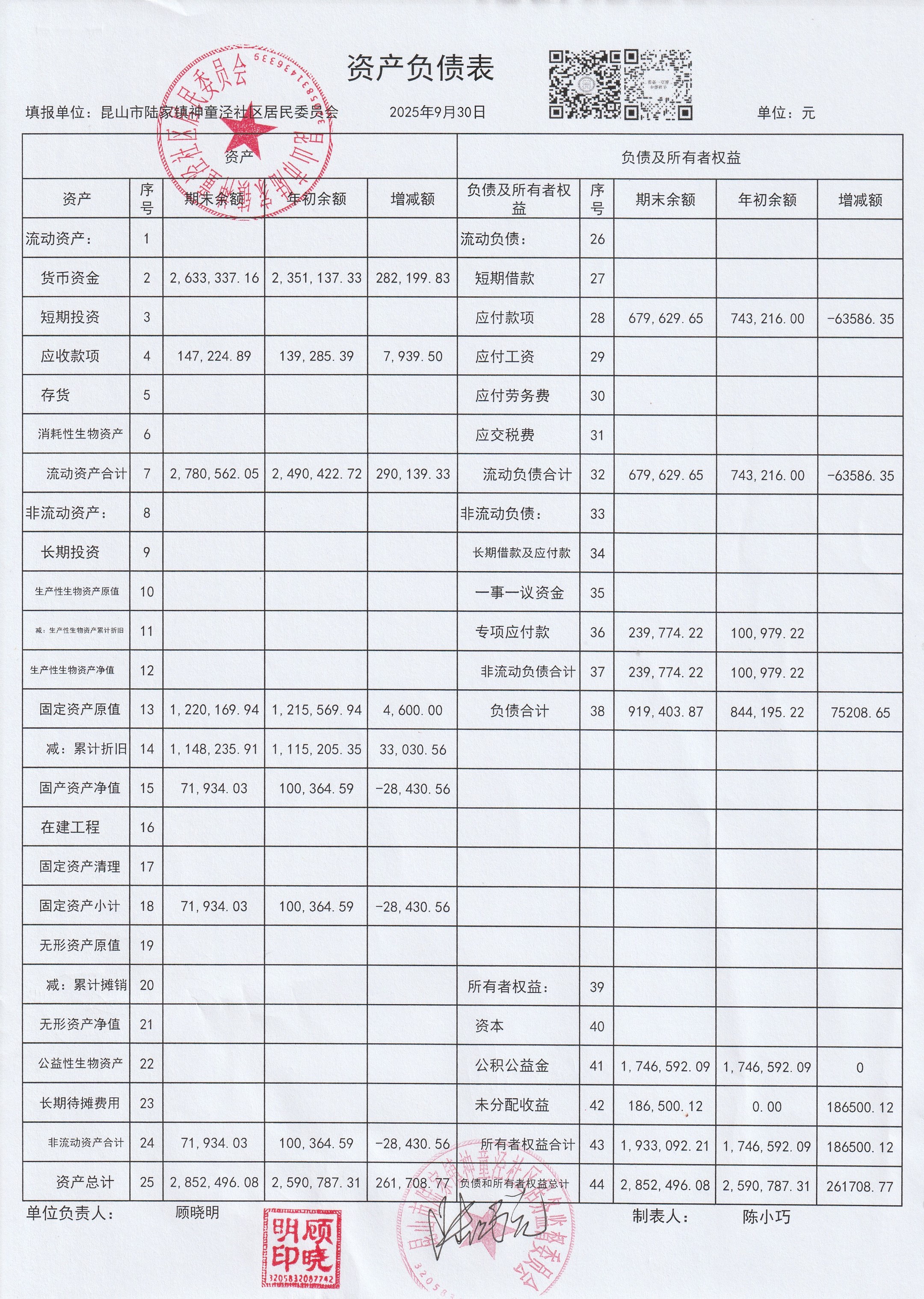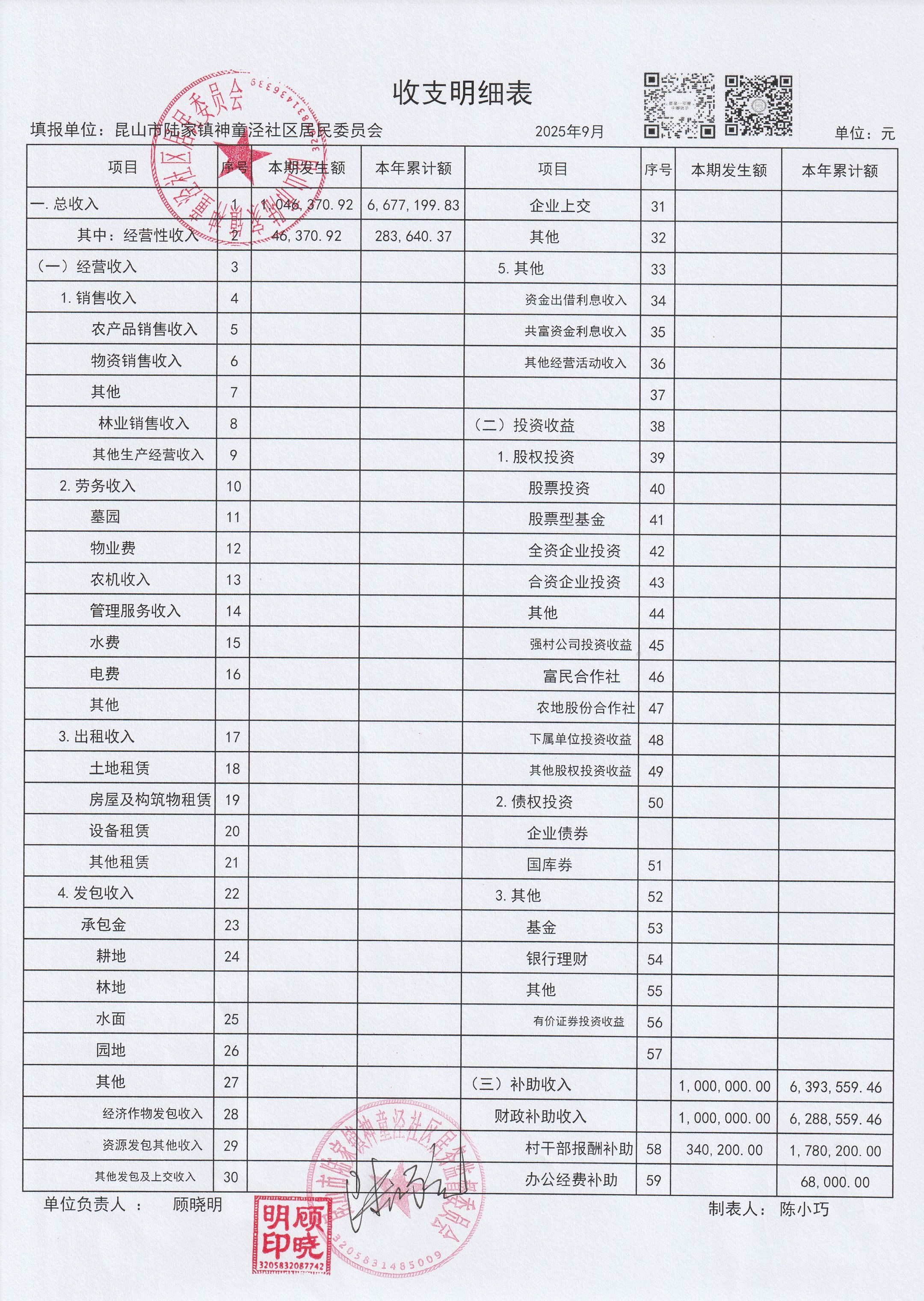 神童涇社區(qū)居民委員會財務(wù)公開(2025年9月)