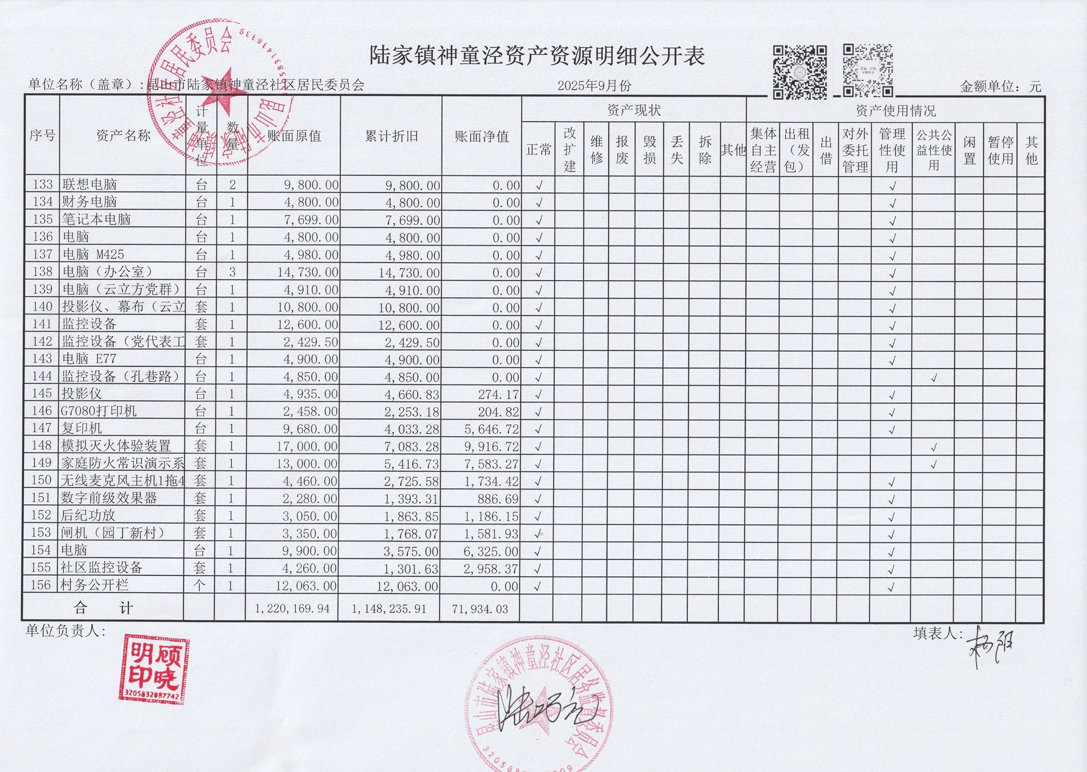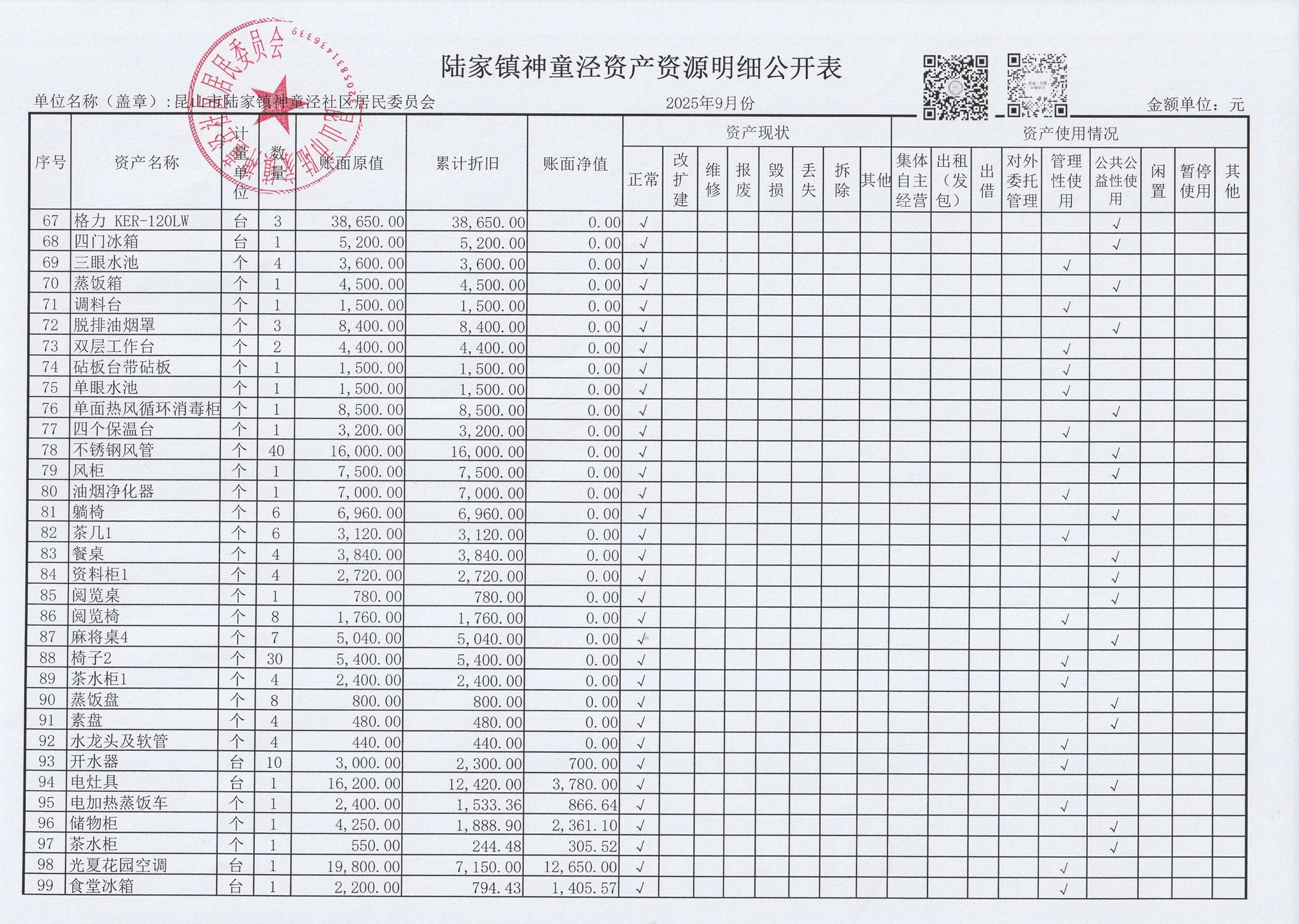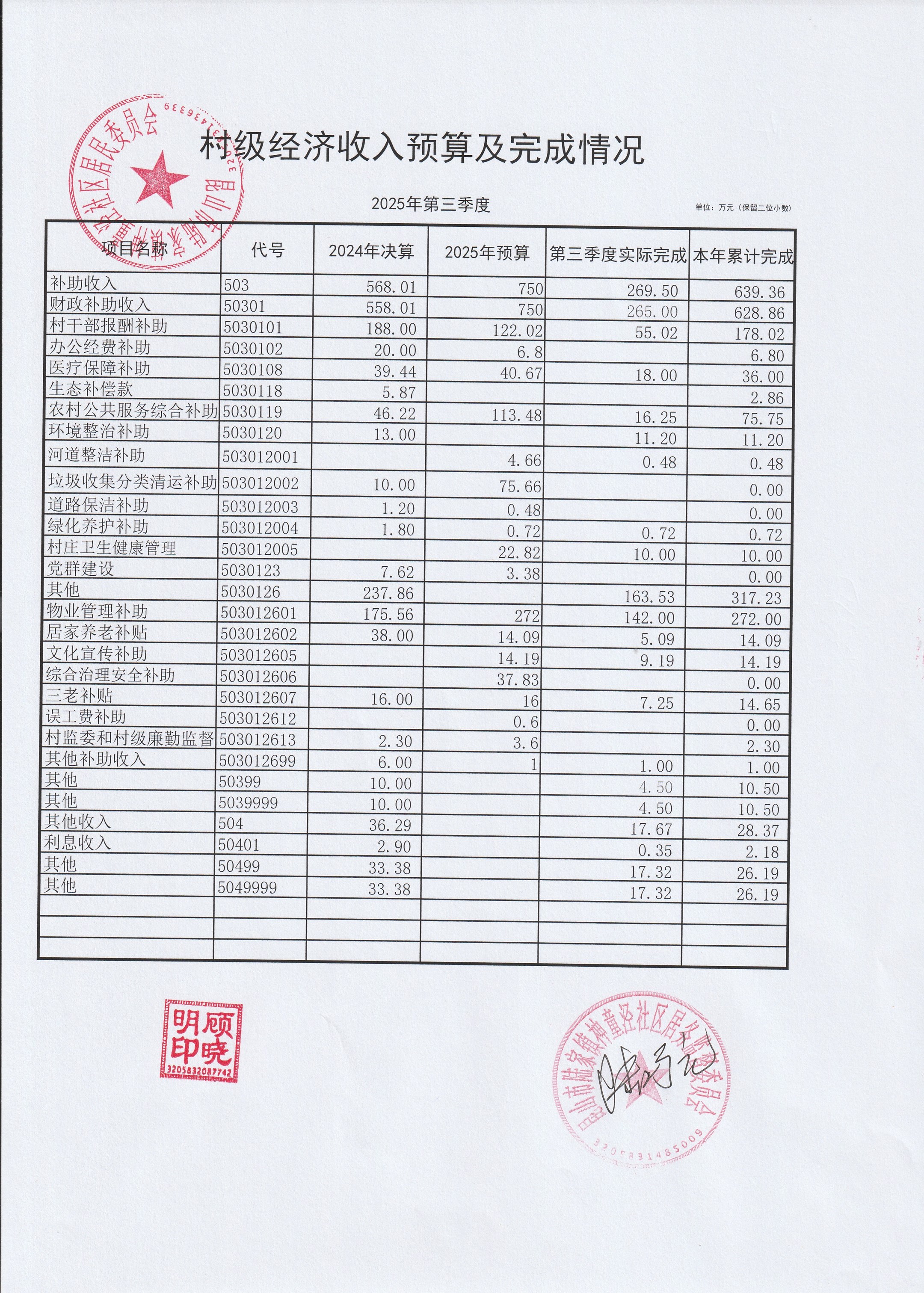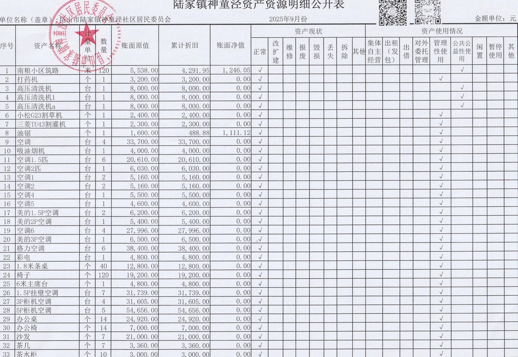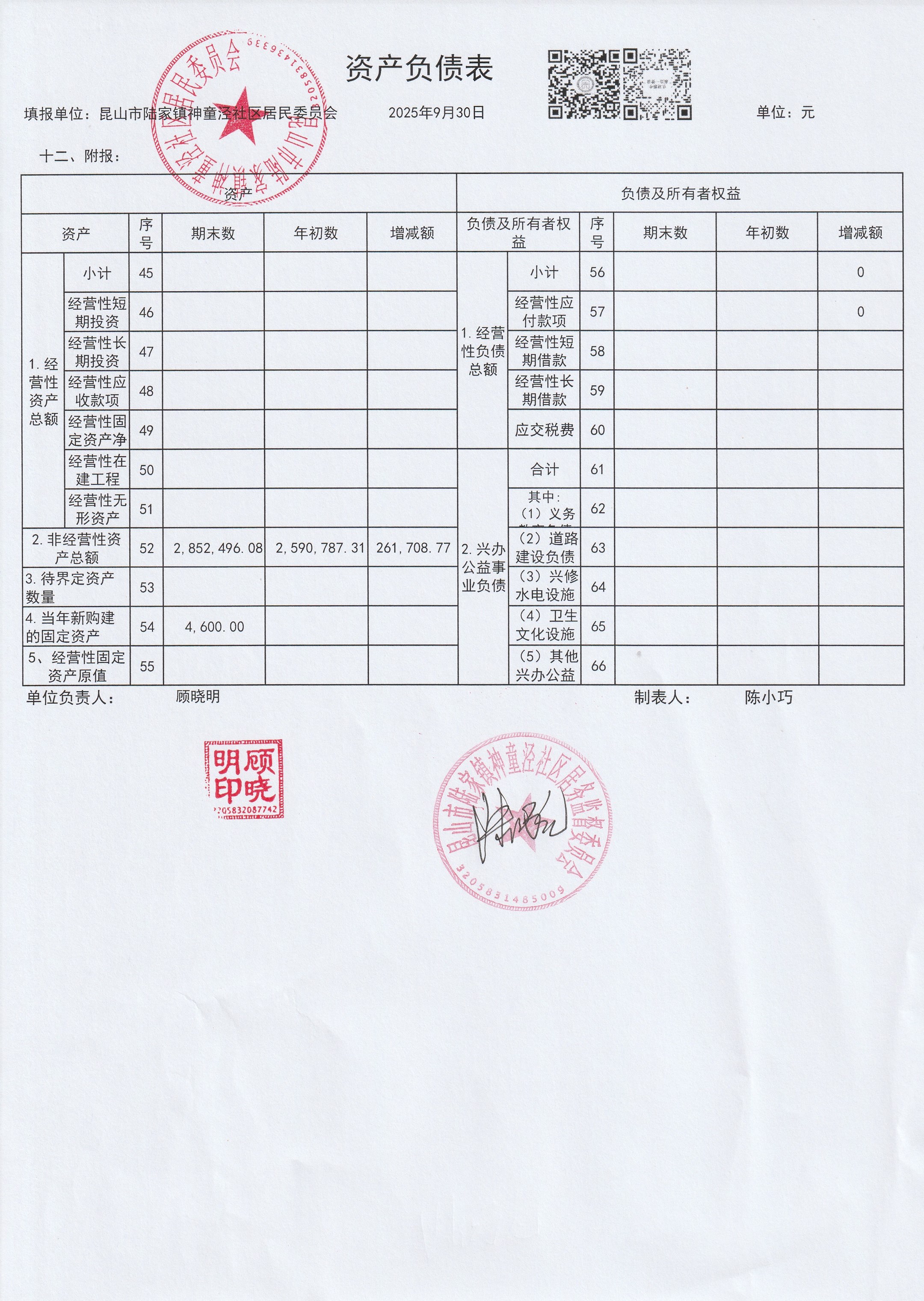 神童涇社區(qū)居民委員會財務(wù)公開(2025年9月)