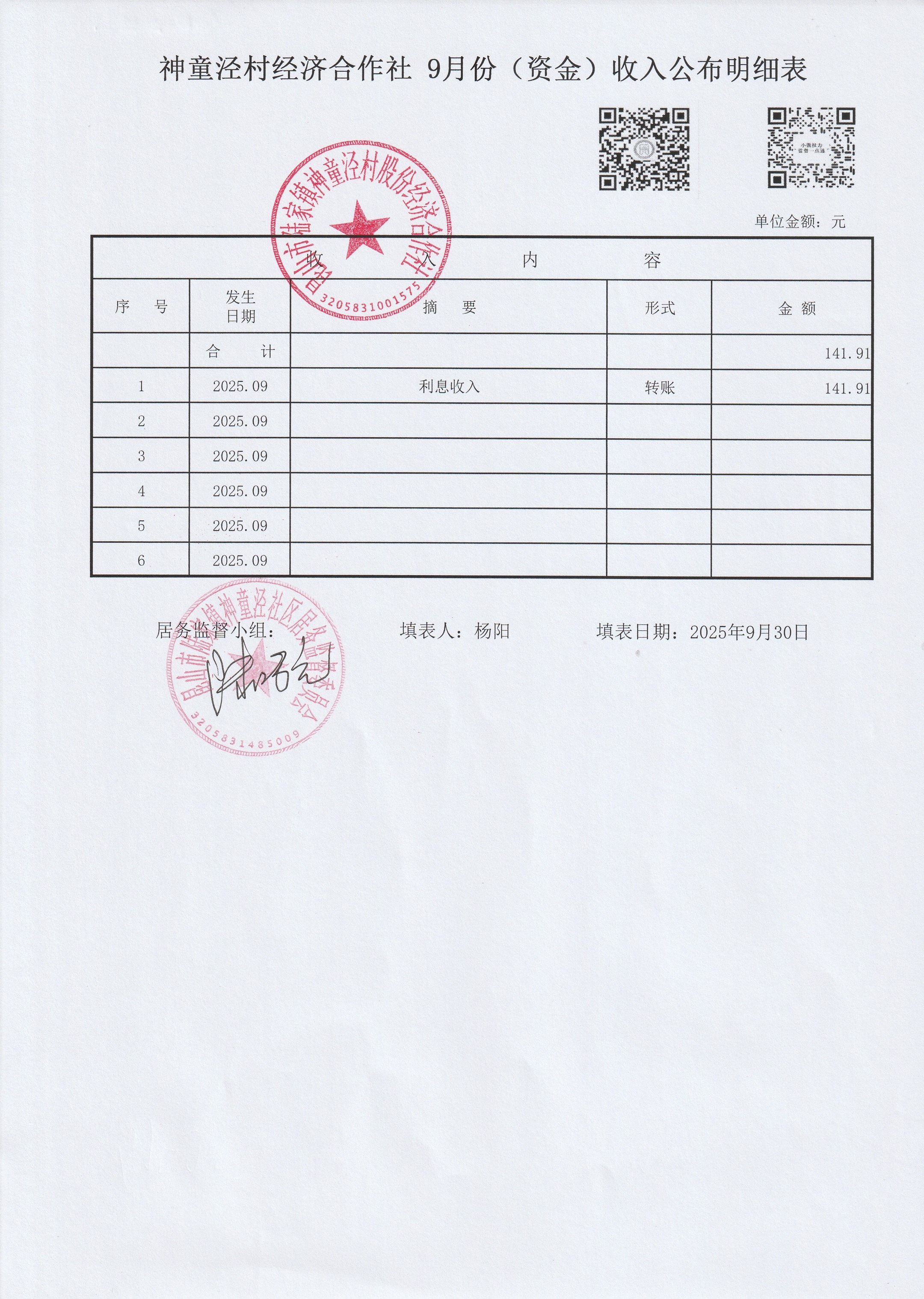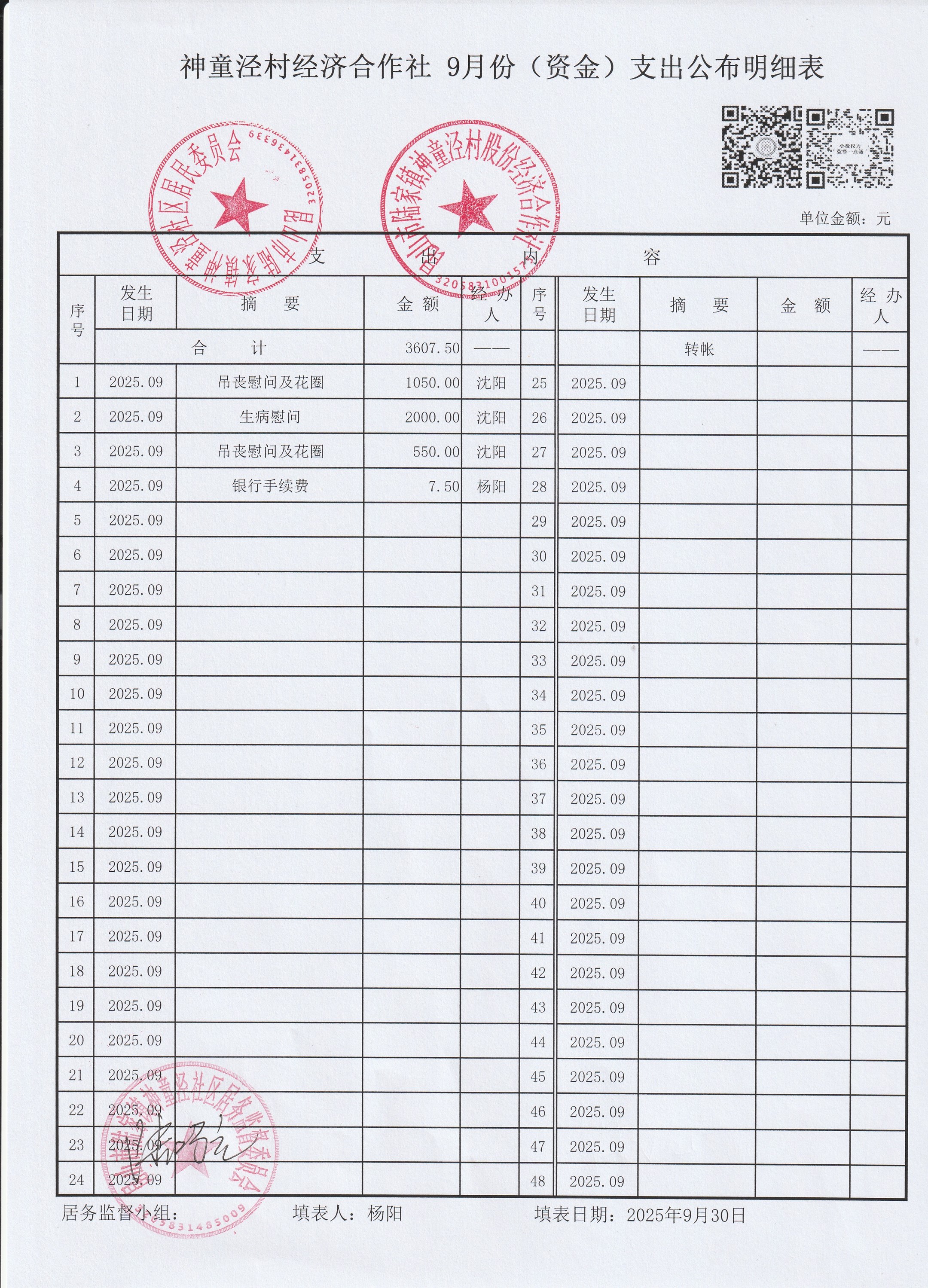 神童涇村股份經(jīng)濟(jì)合作社9月份(資金)收支公布明細(xì)表