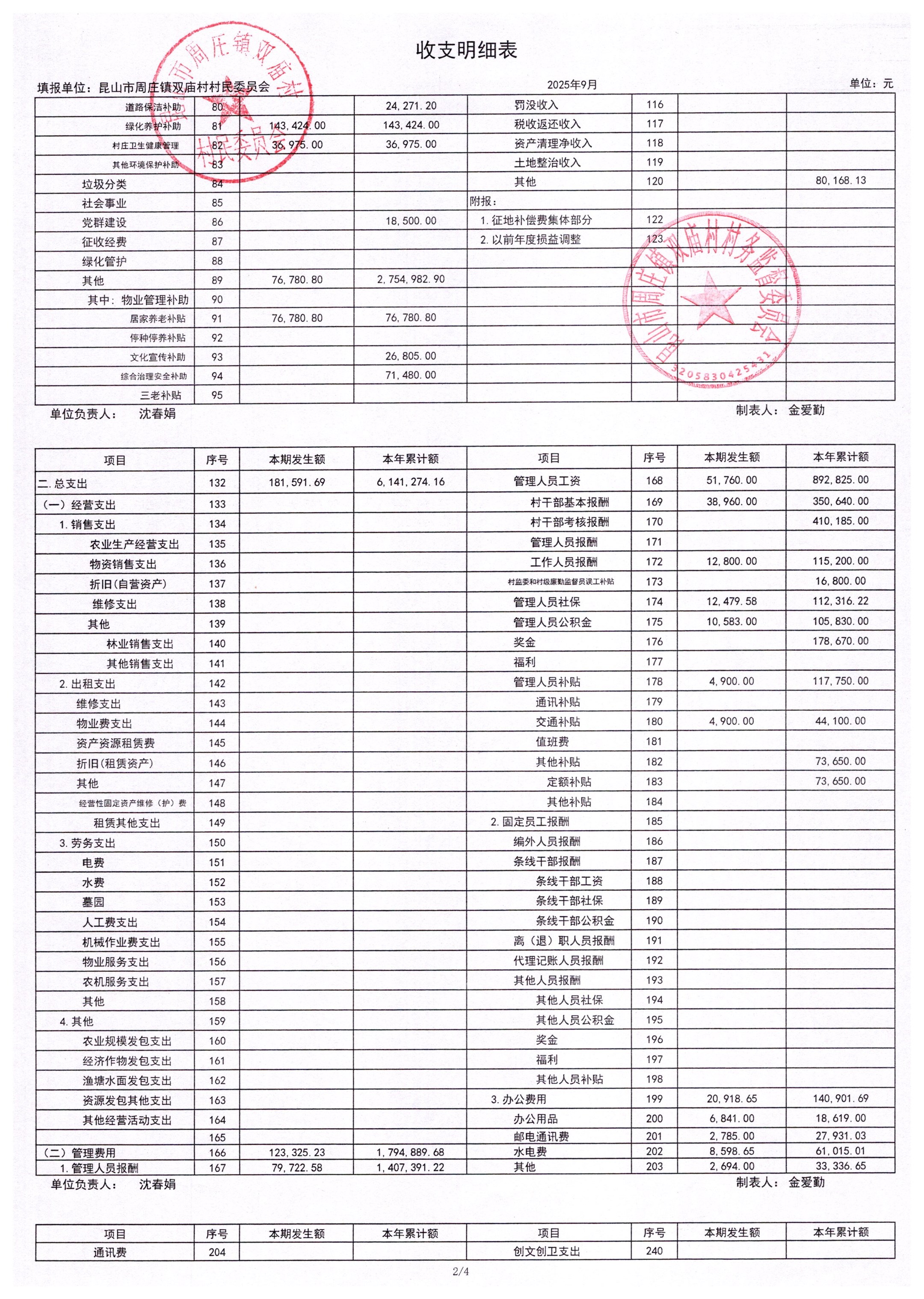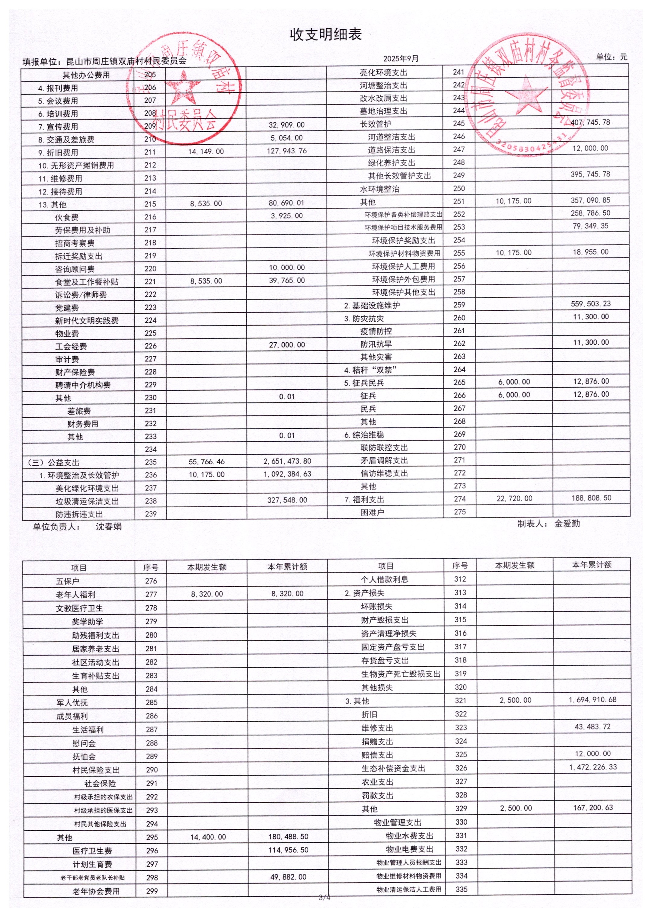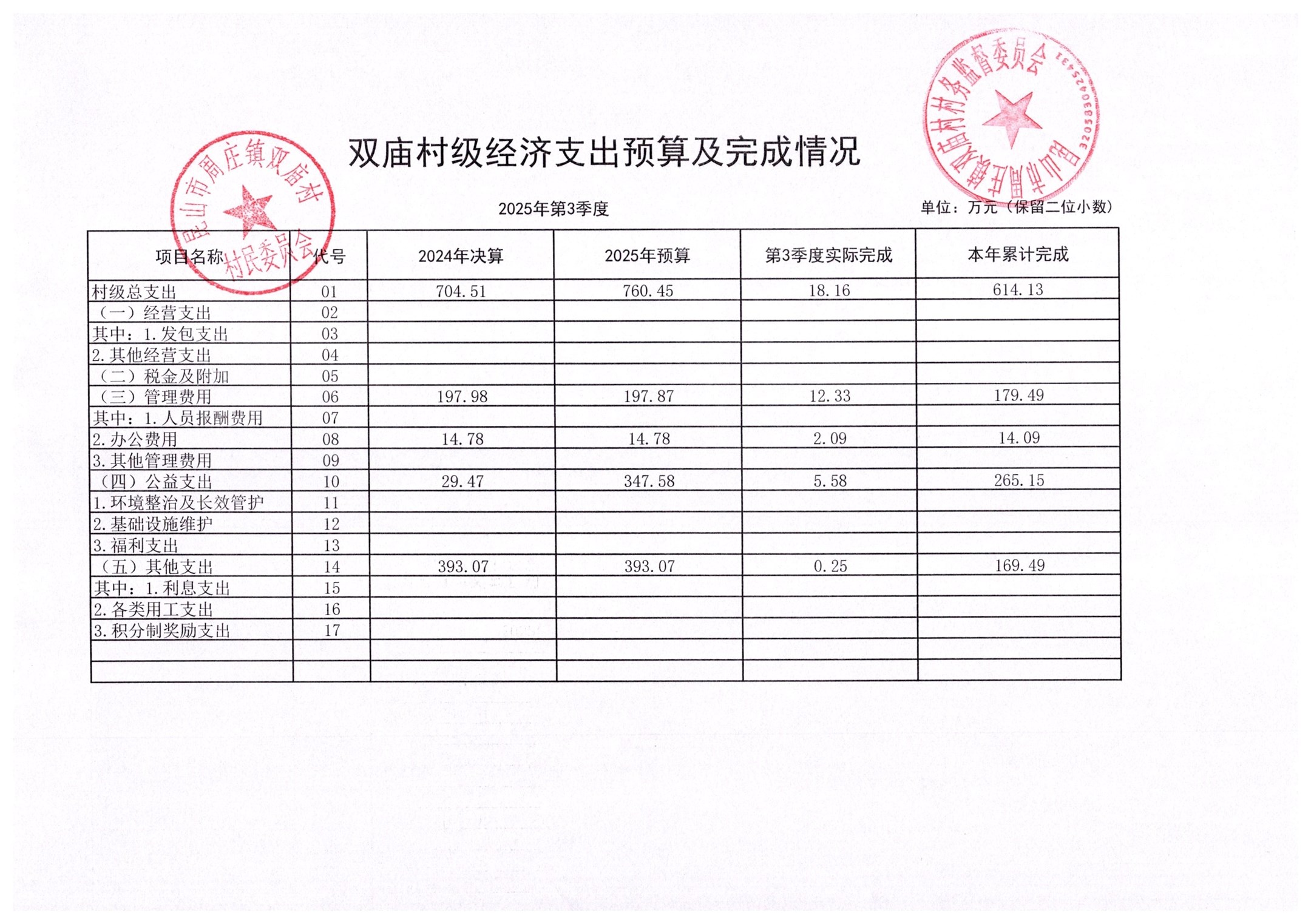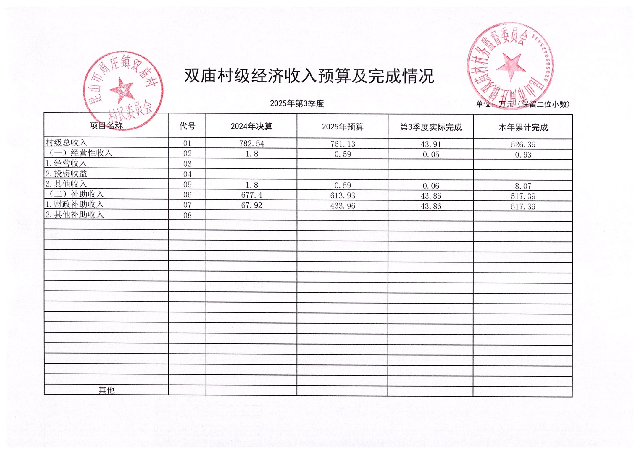 2025年第3季度財(cái)務(wù)公開-雙廟村財(cái)務(wù)公開