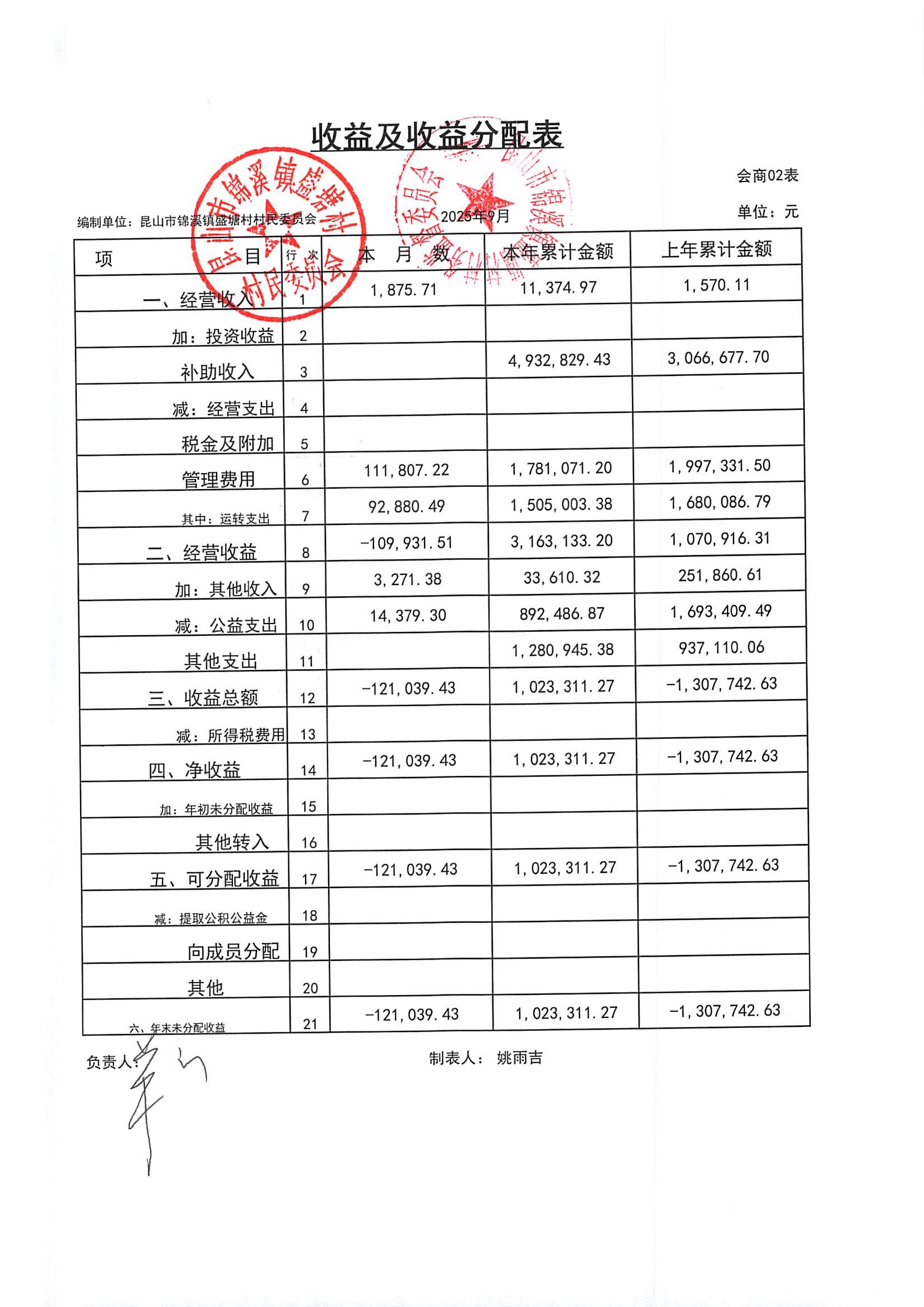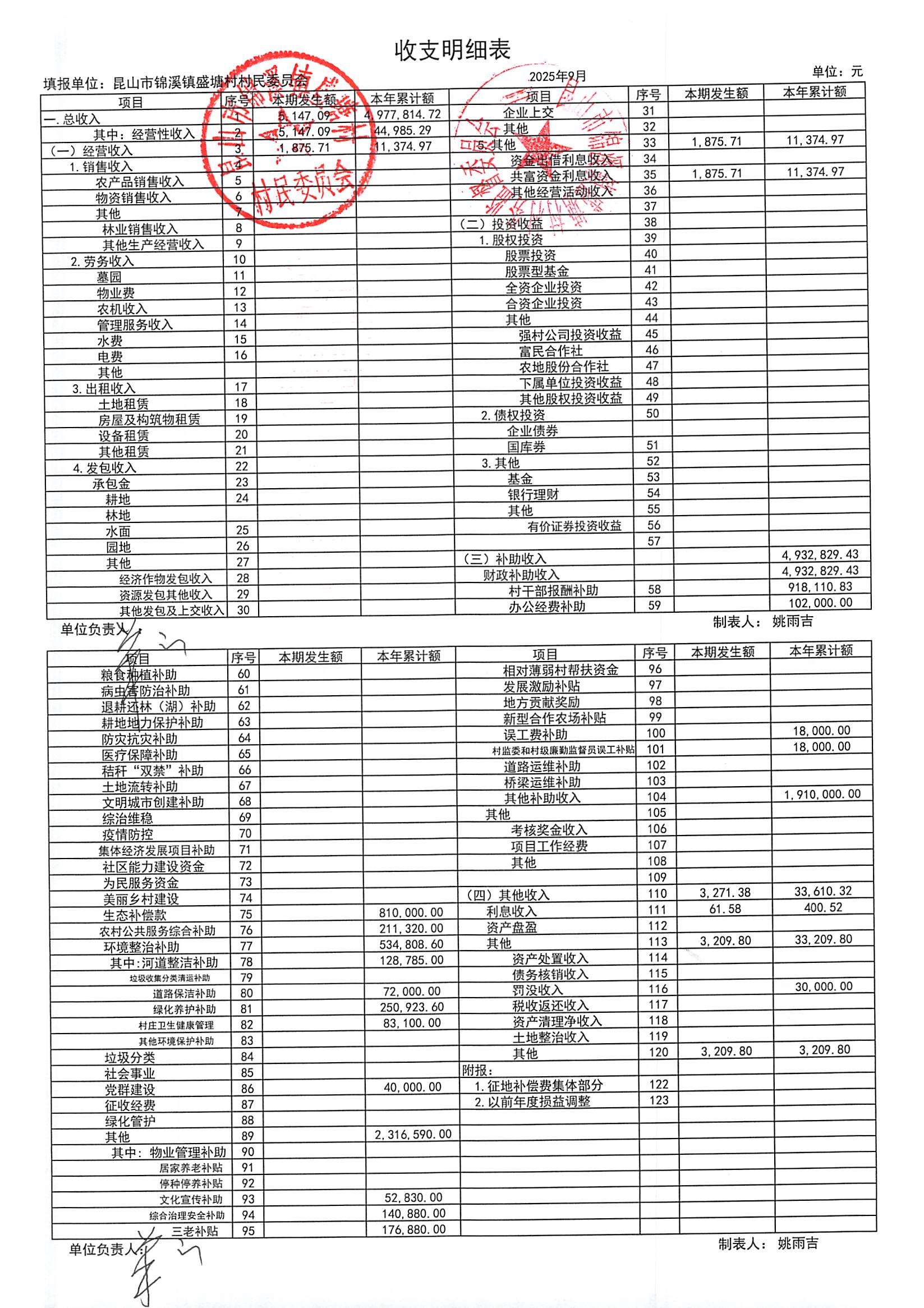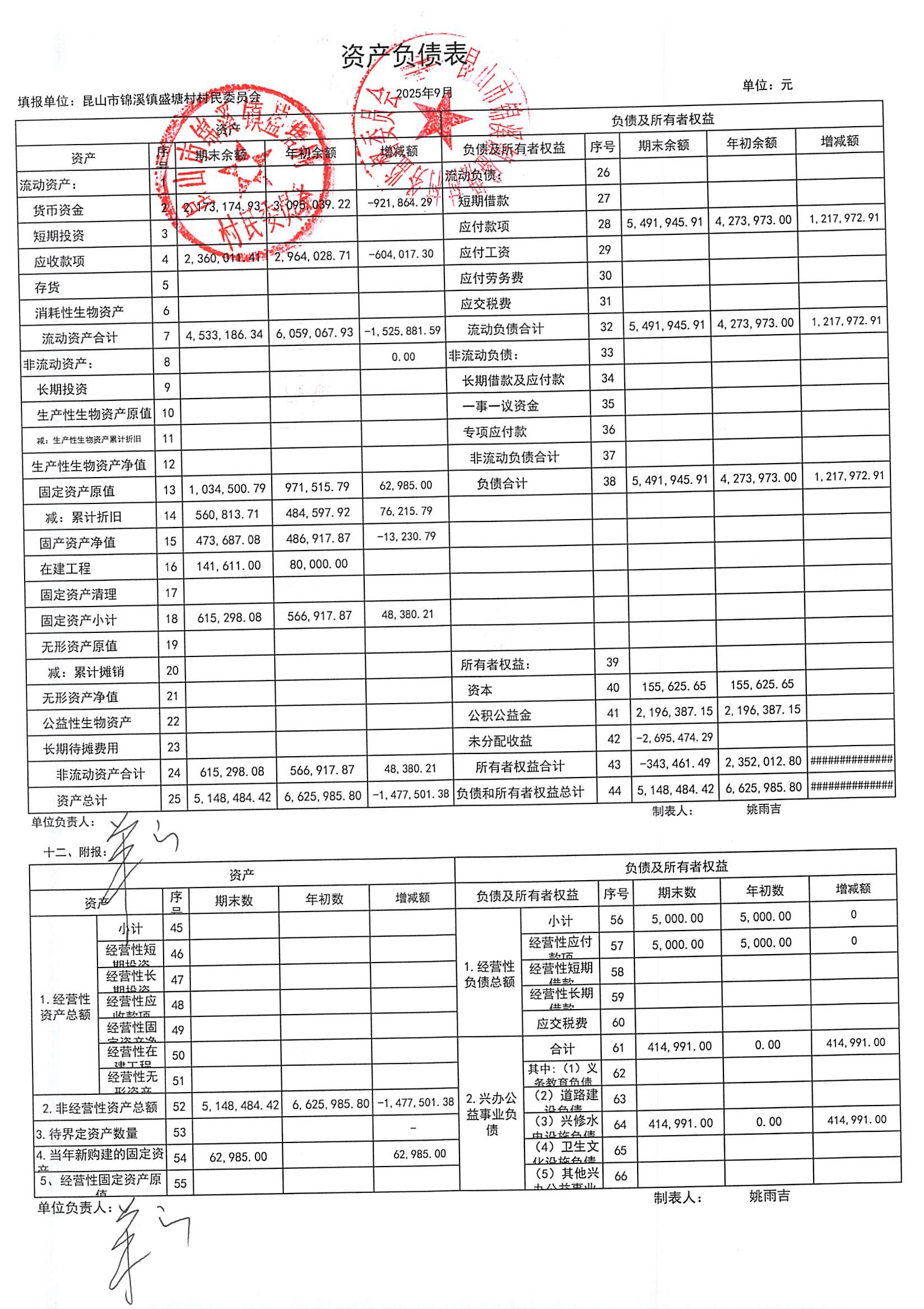 昆山市錦溪鎮(zhèn)盛塘村2025年第三季度9月村財務(wù)公開資料