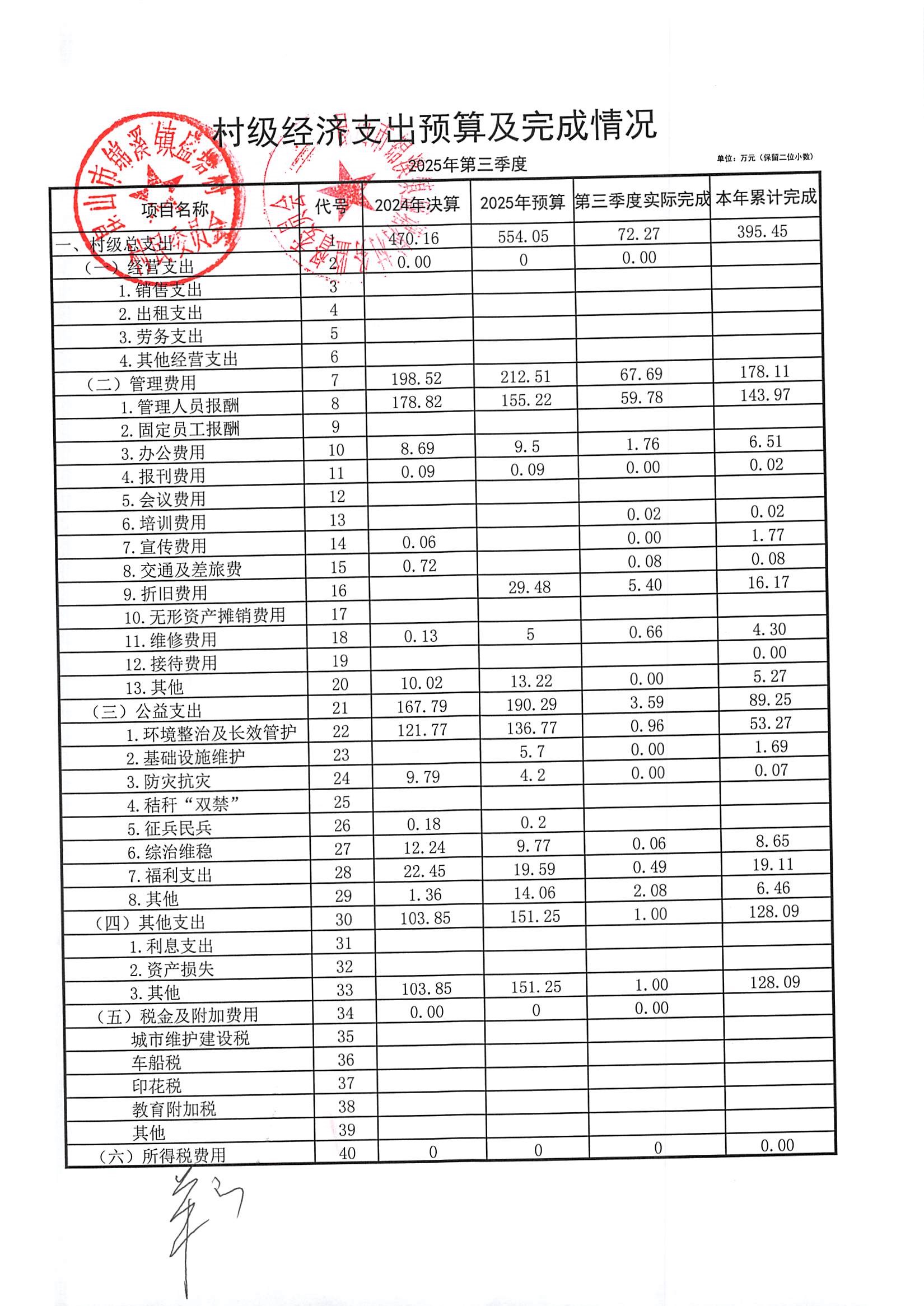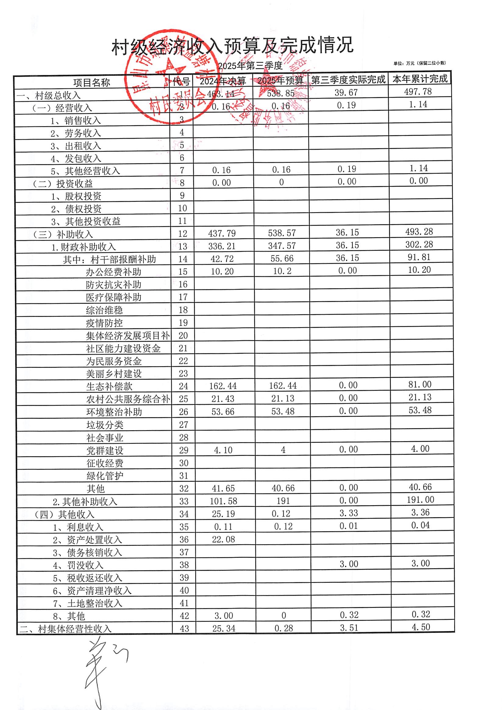2025年第三季度村級經(jīng)濟(jì)收入、支出預(yù)算及完成情況