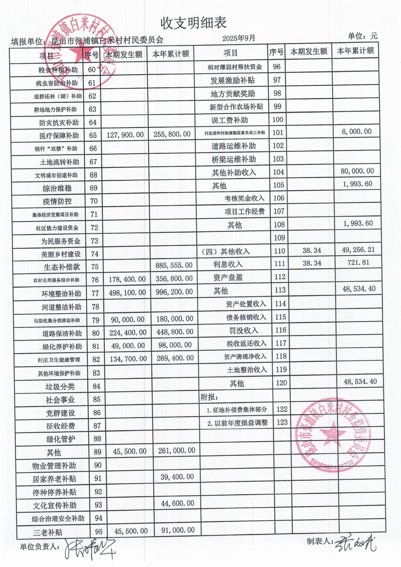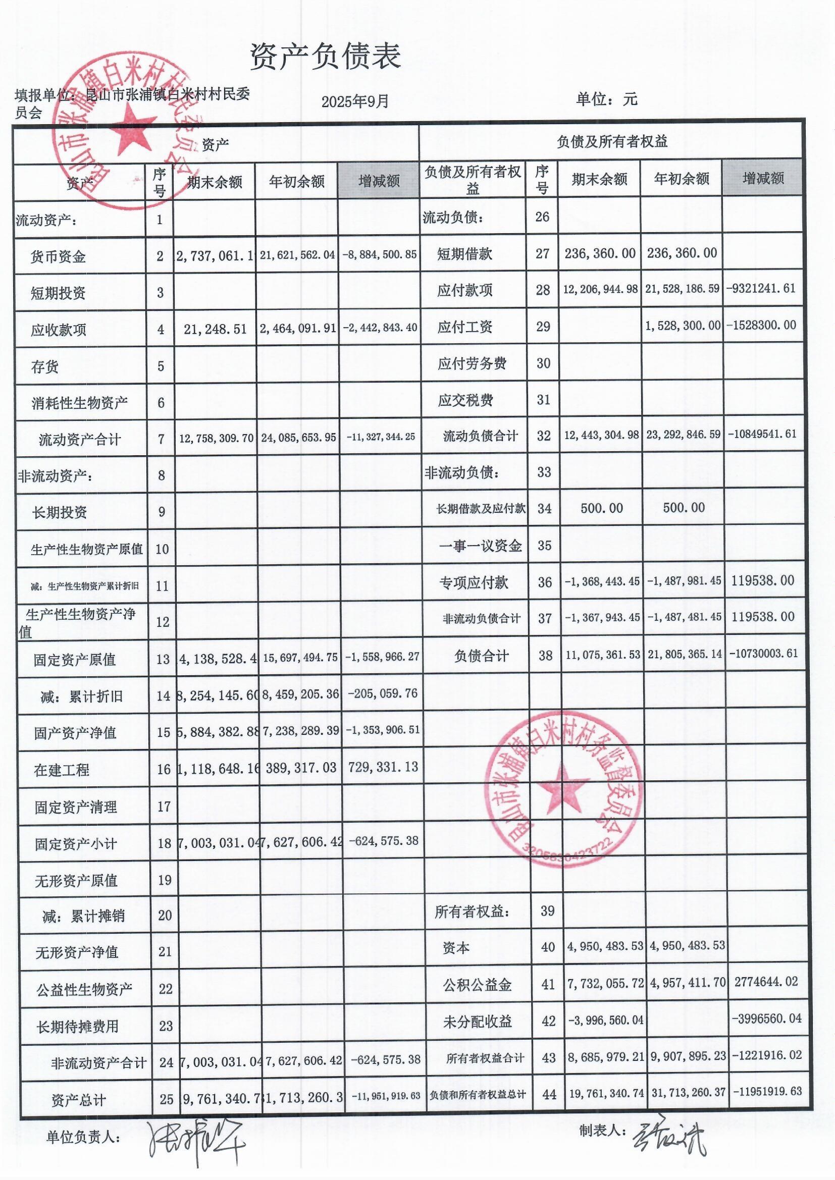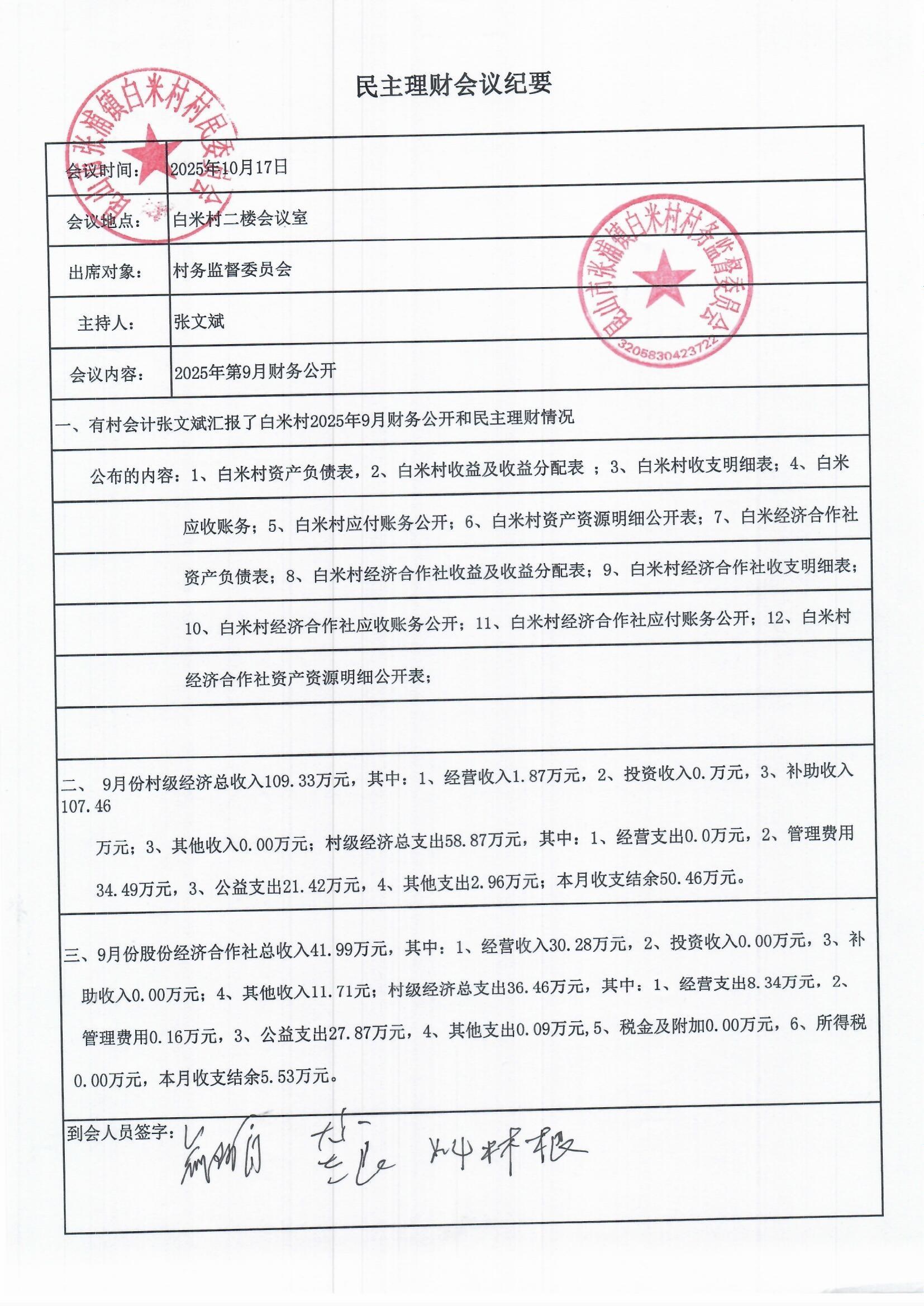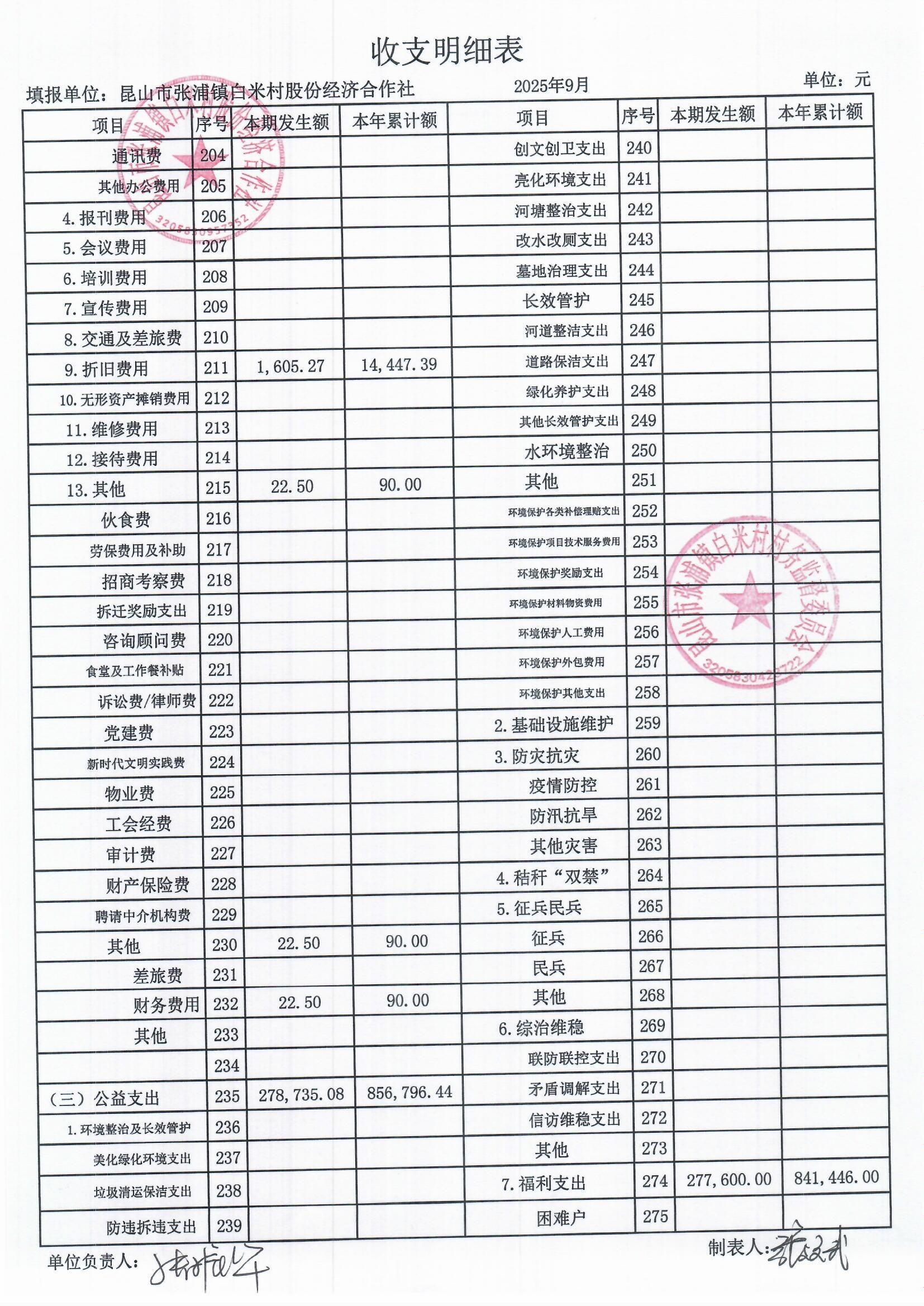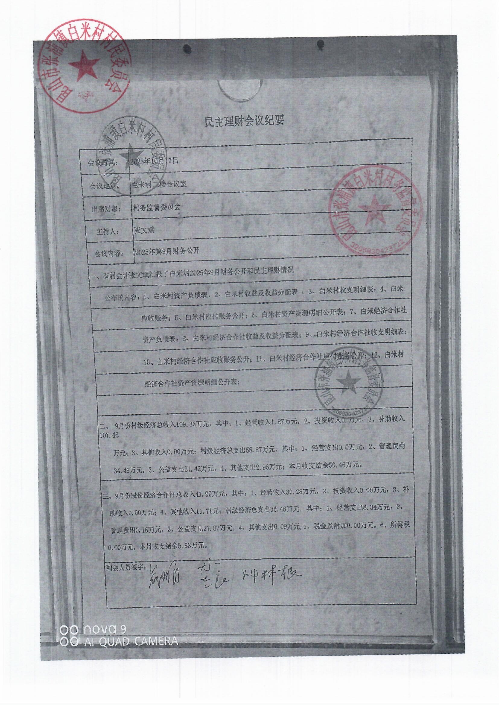 2025年9月白米村委會和股份合作社財務(wù)公開