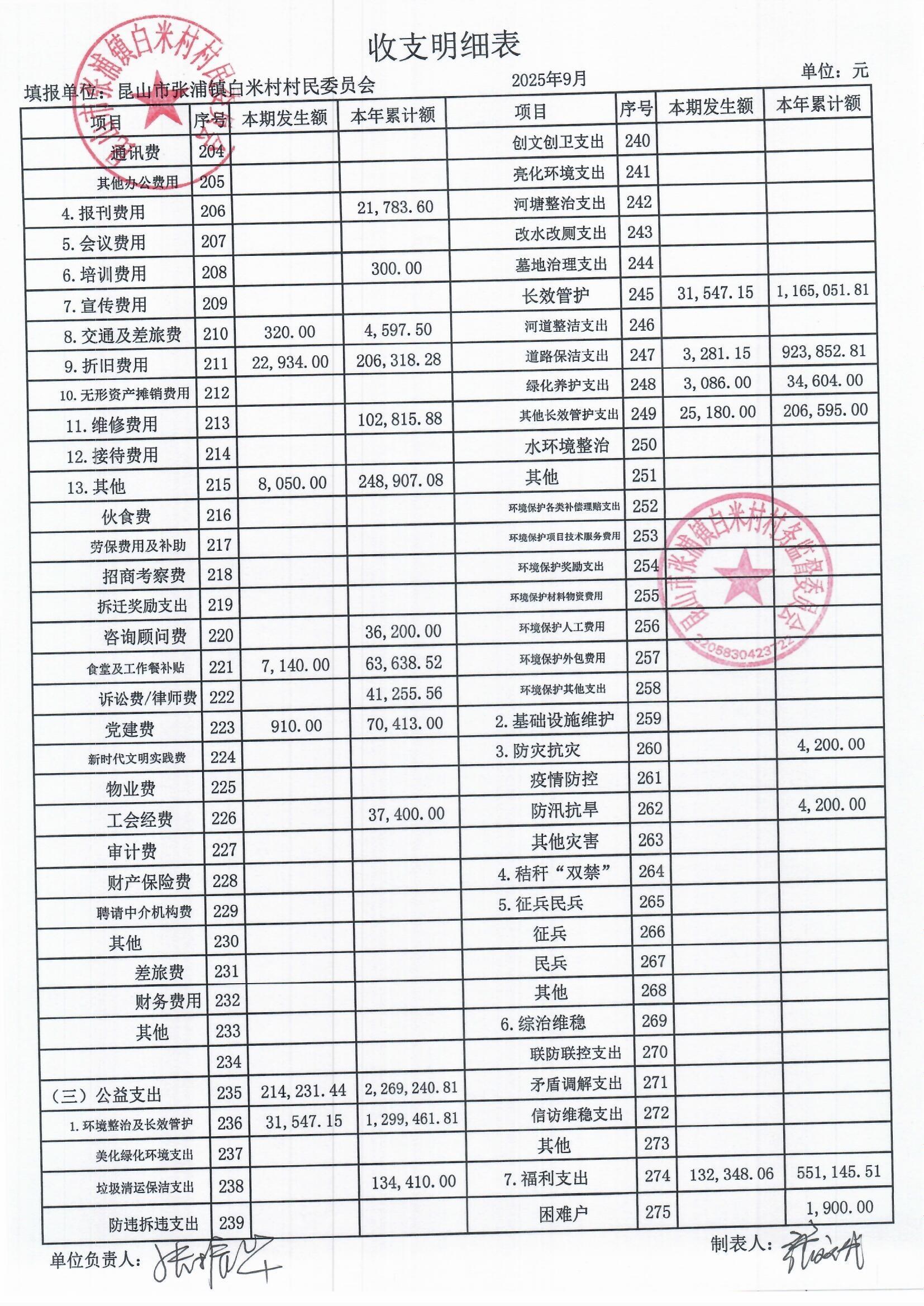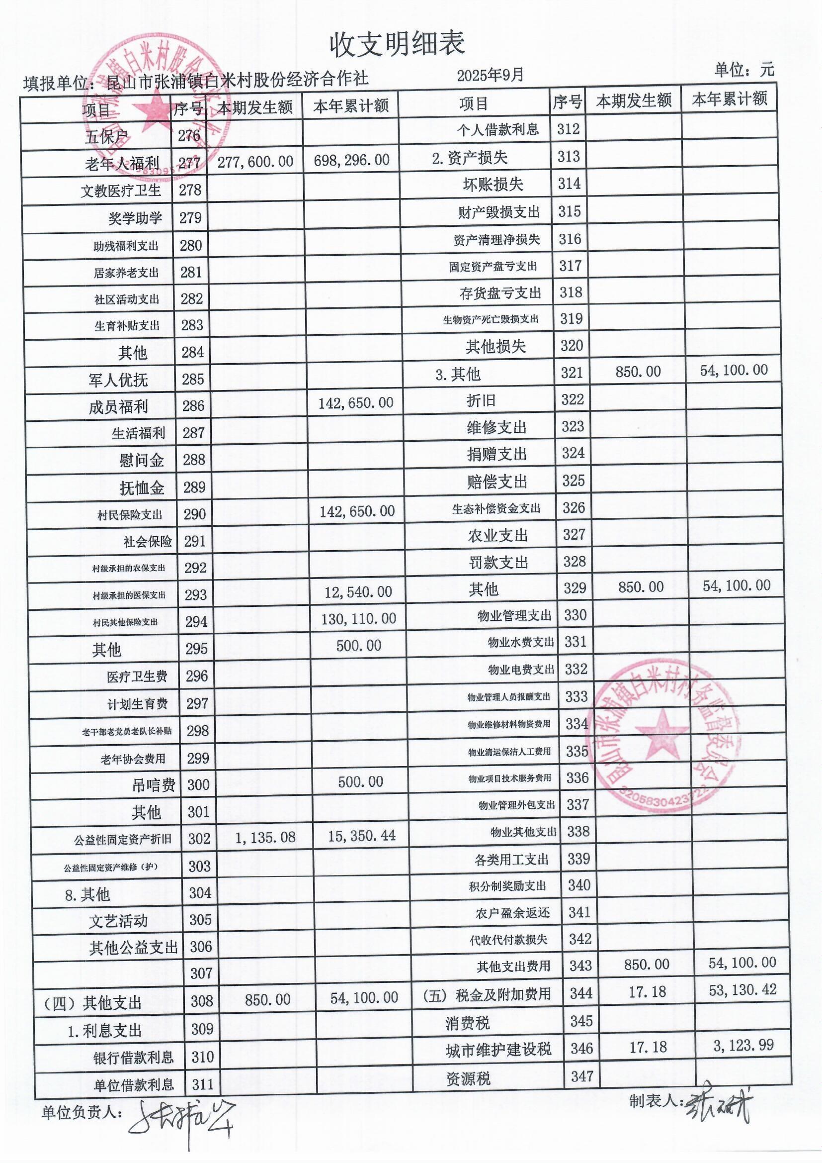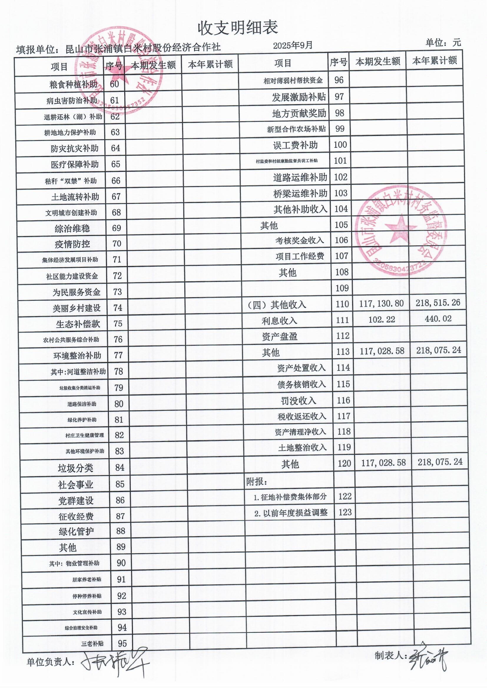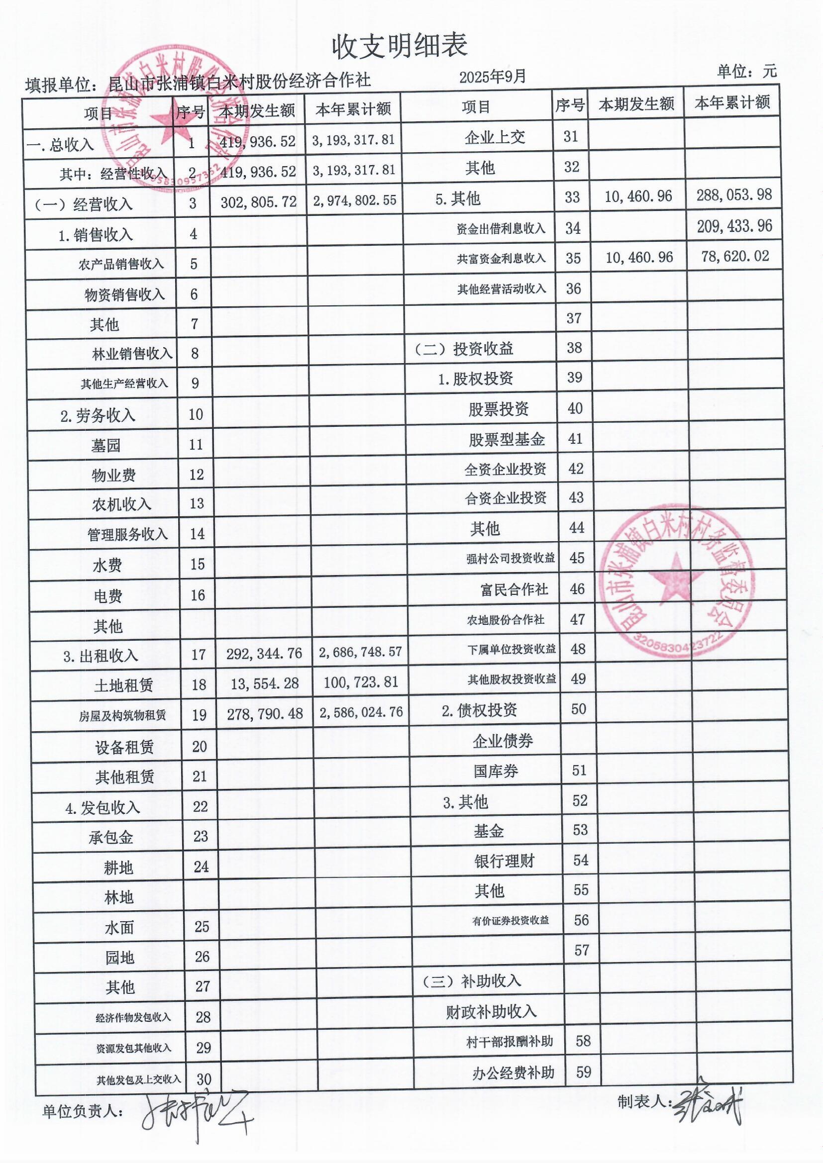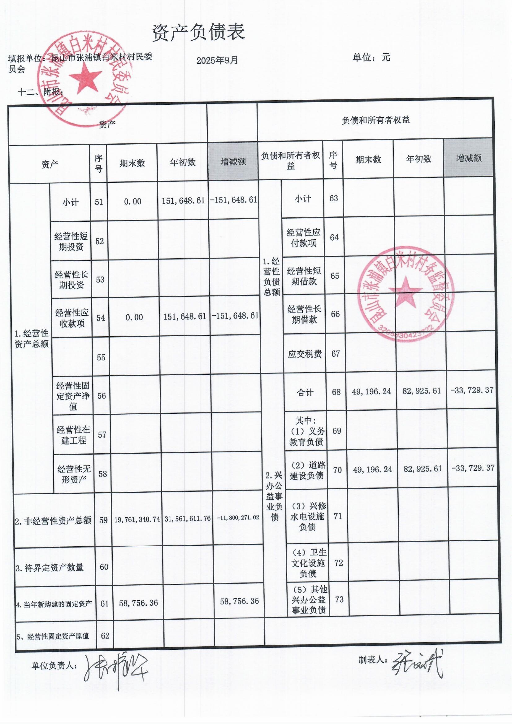 2025年9月白米村委會和股份合作社財務(wù)公開