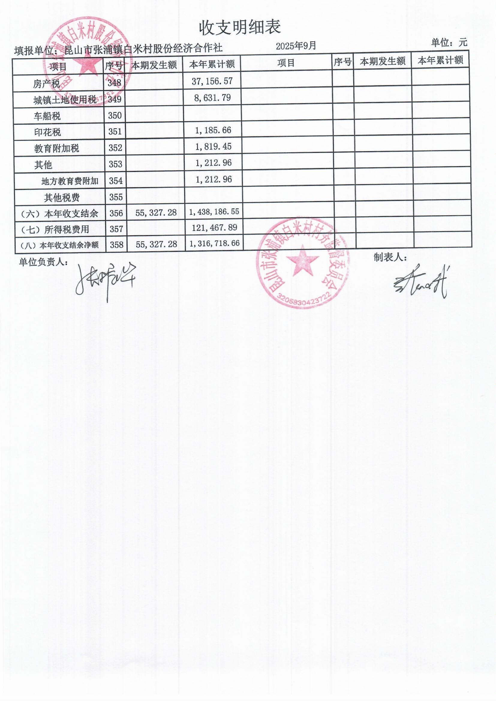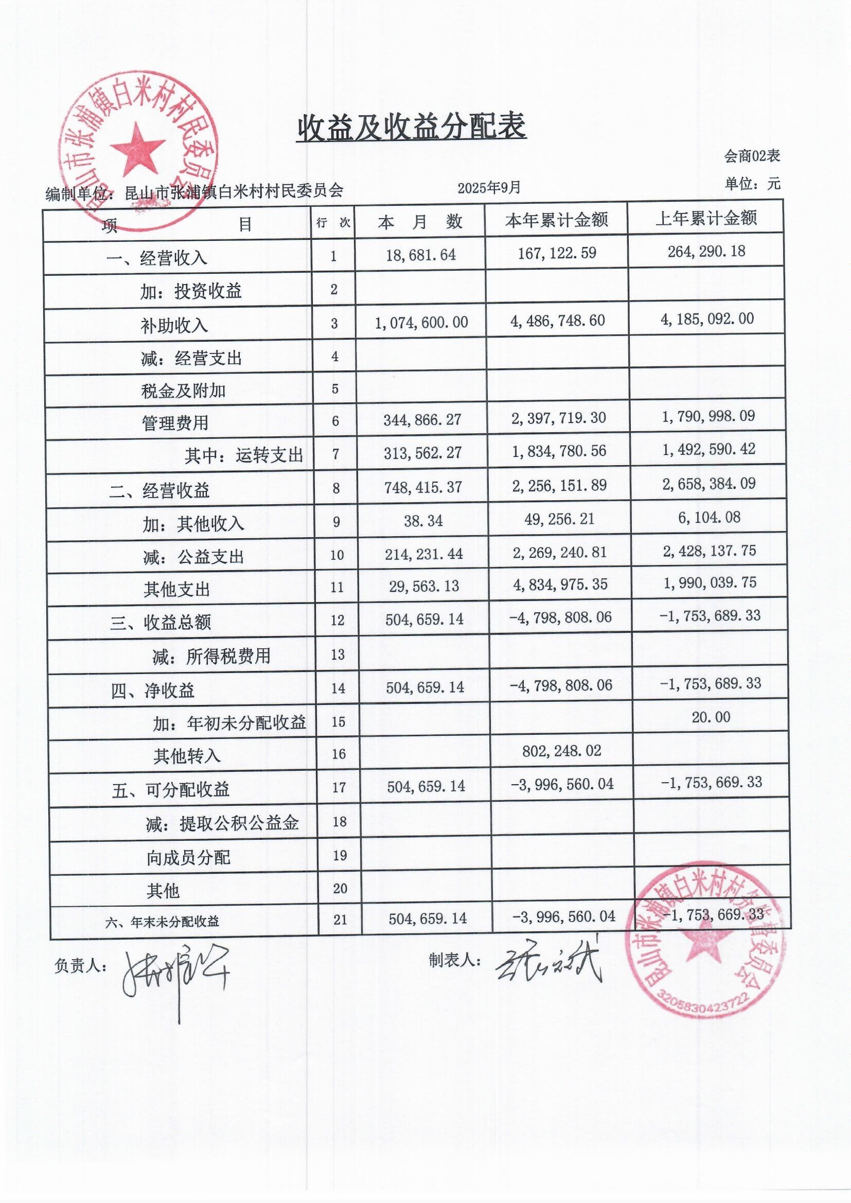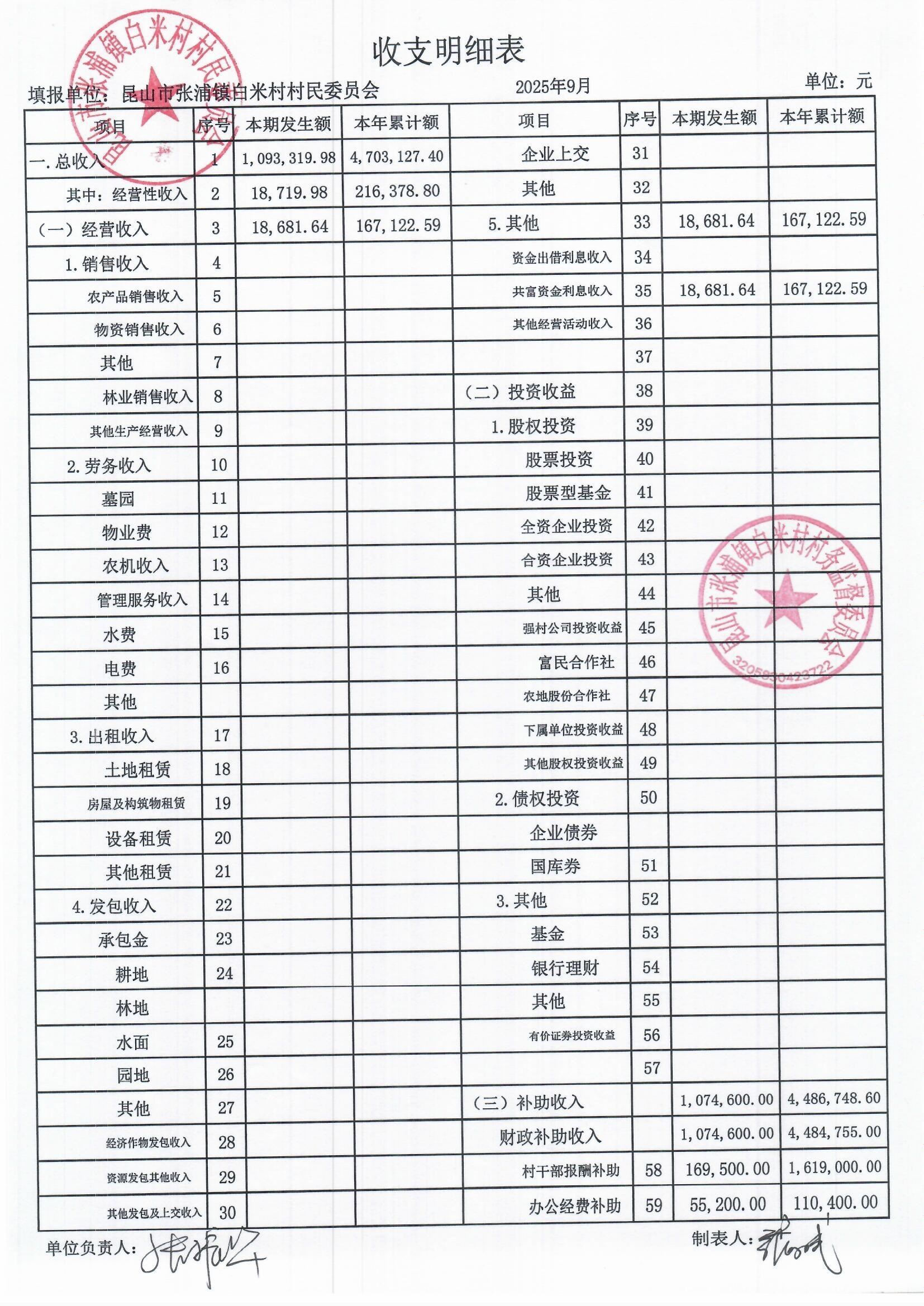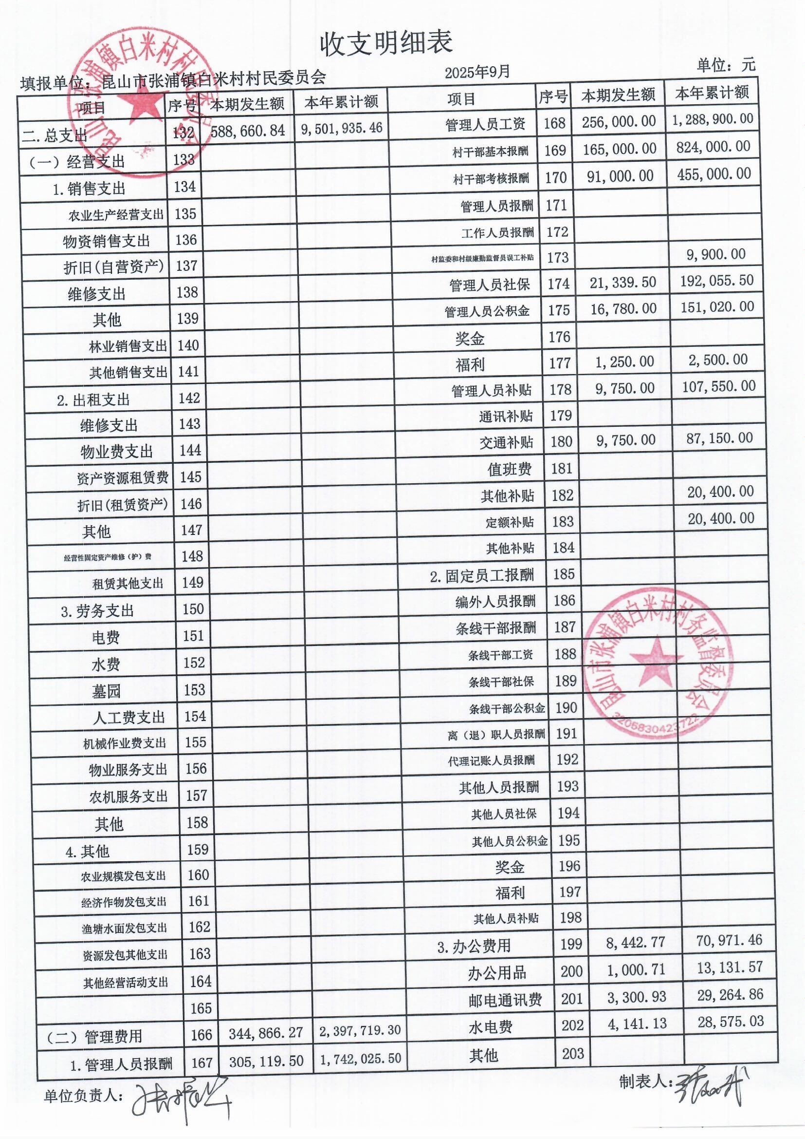 2025年9月白米村委會和股份合作社財務(wù)公開