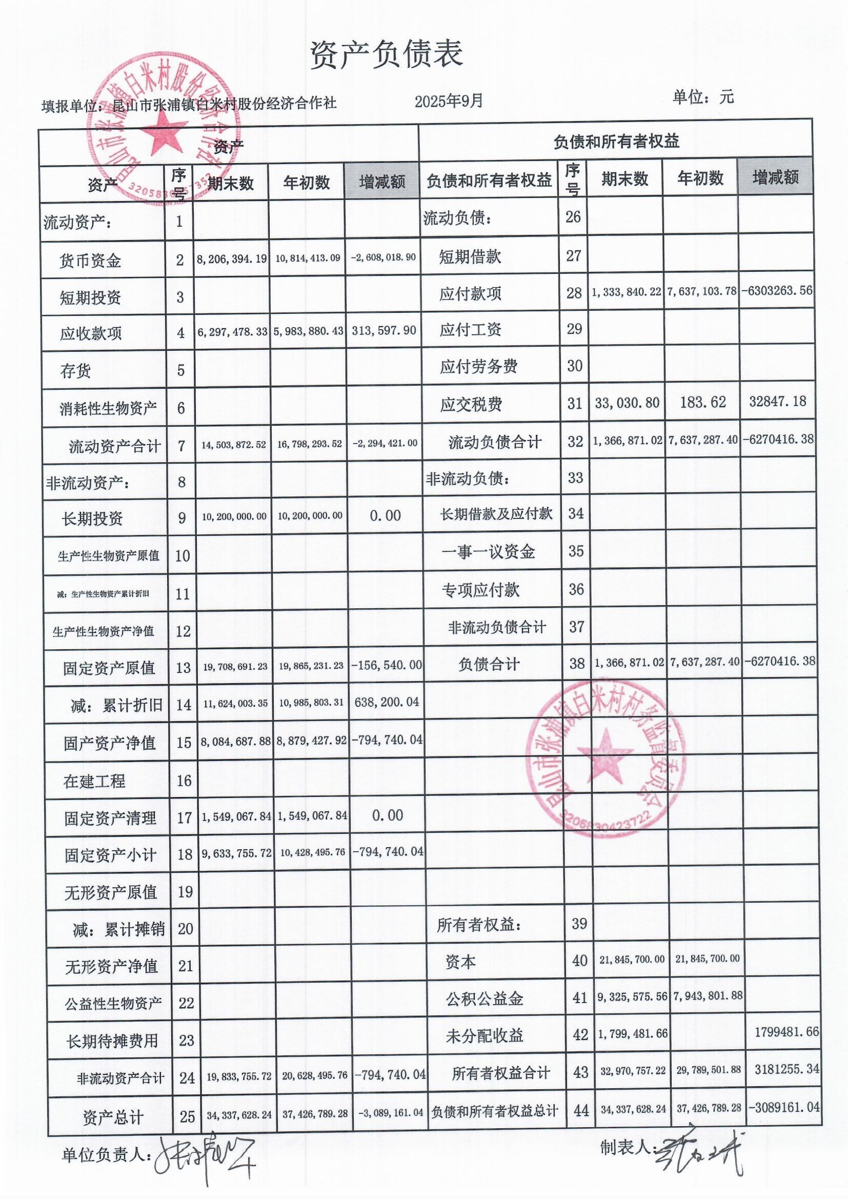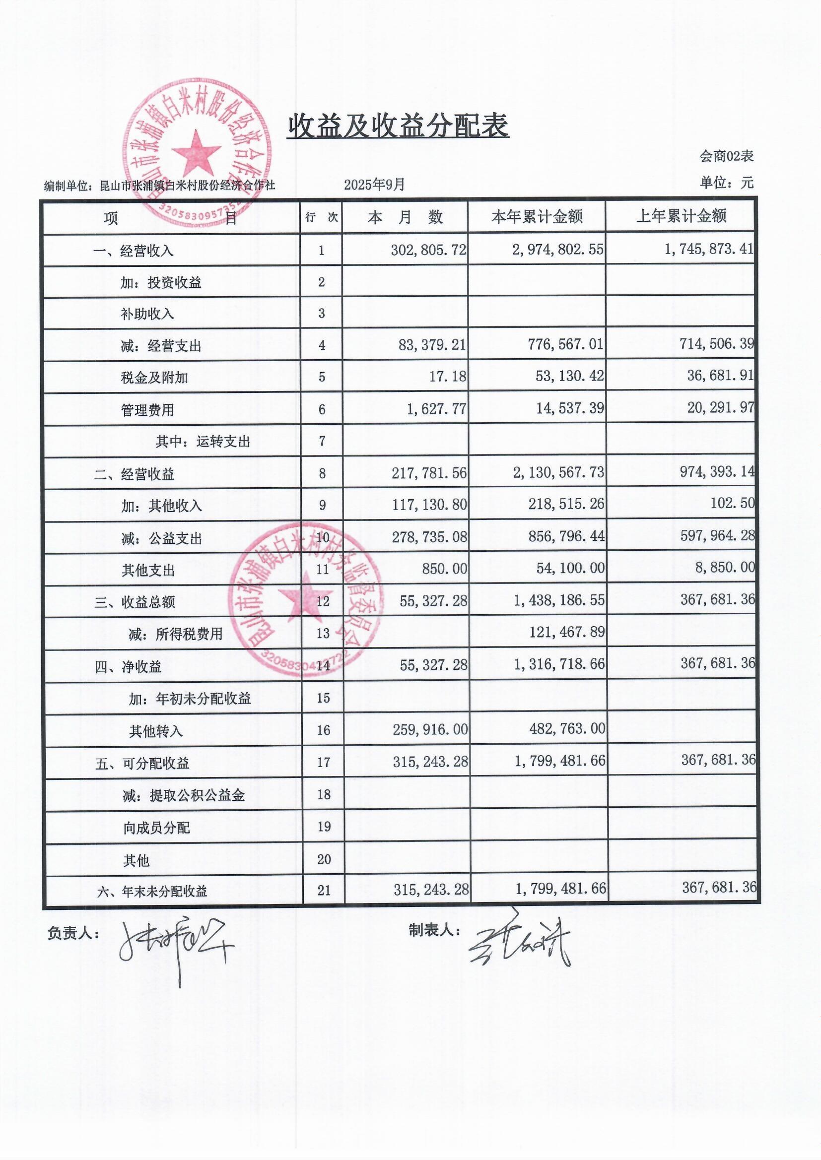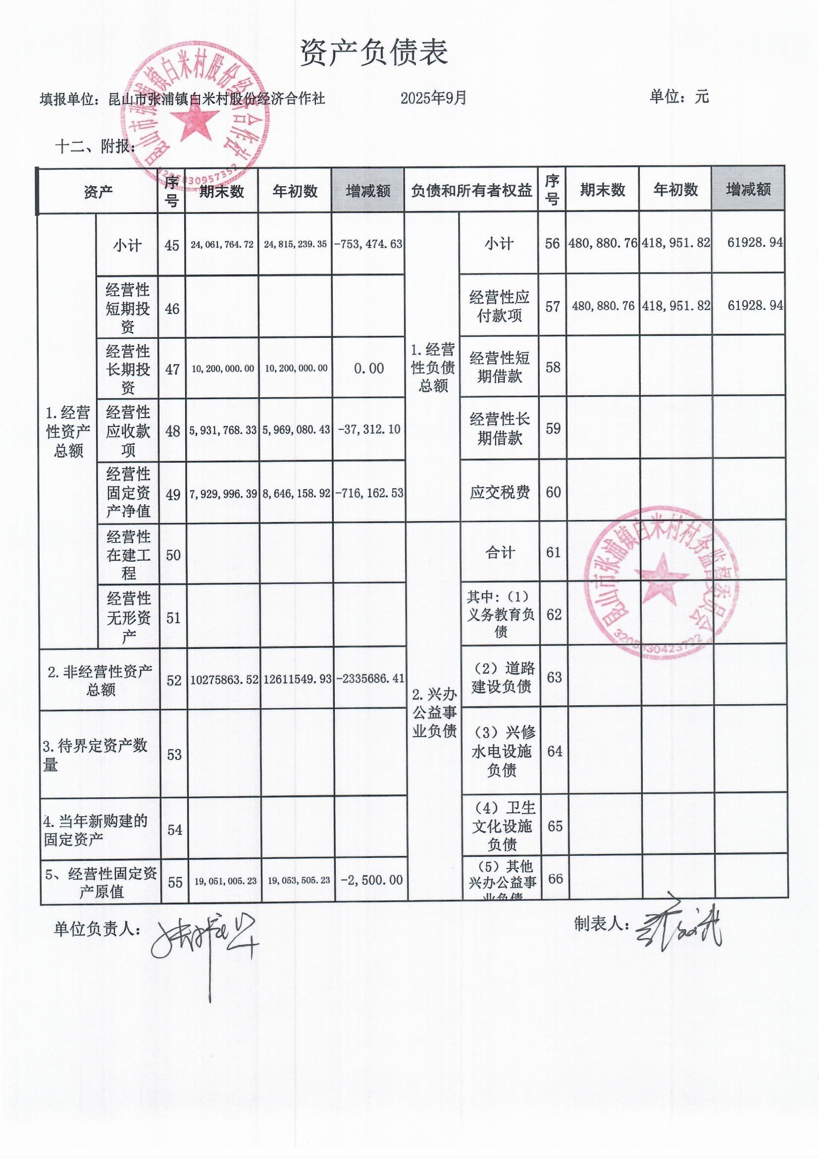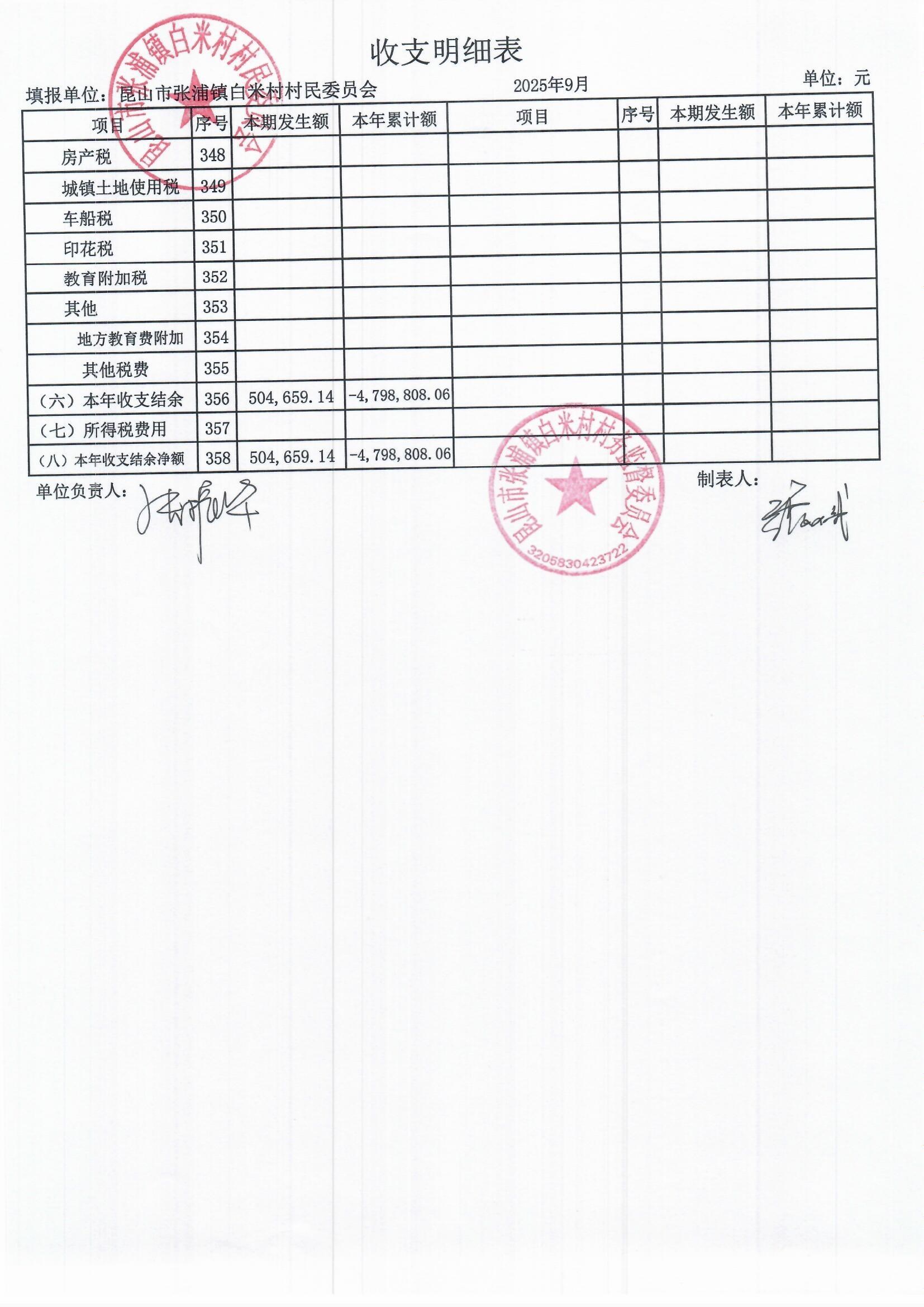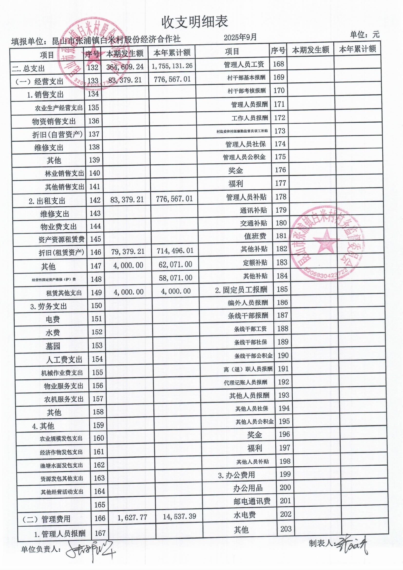 2025年9月白米村委會和股份合作社財務(wù)公開