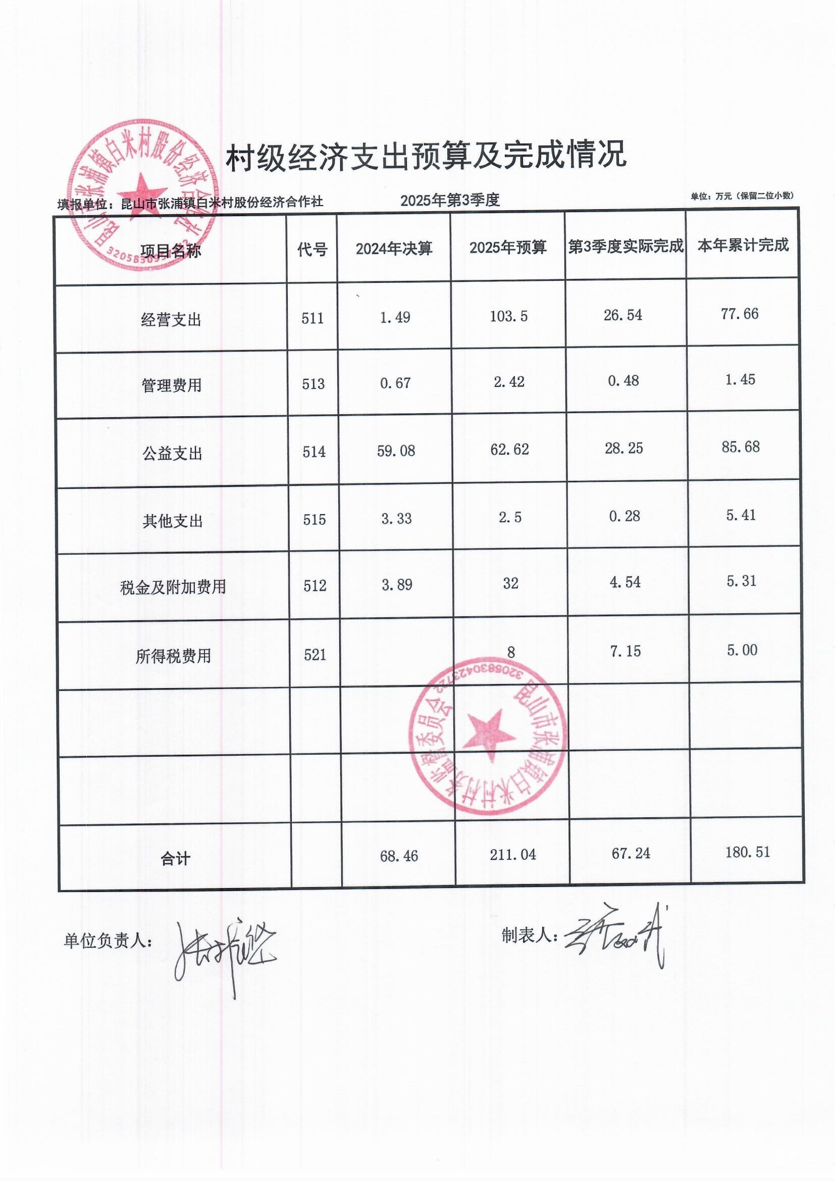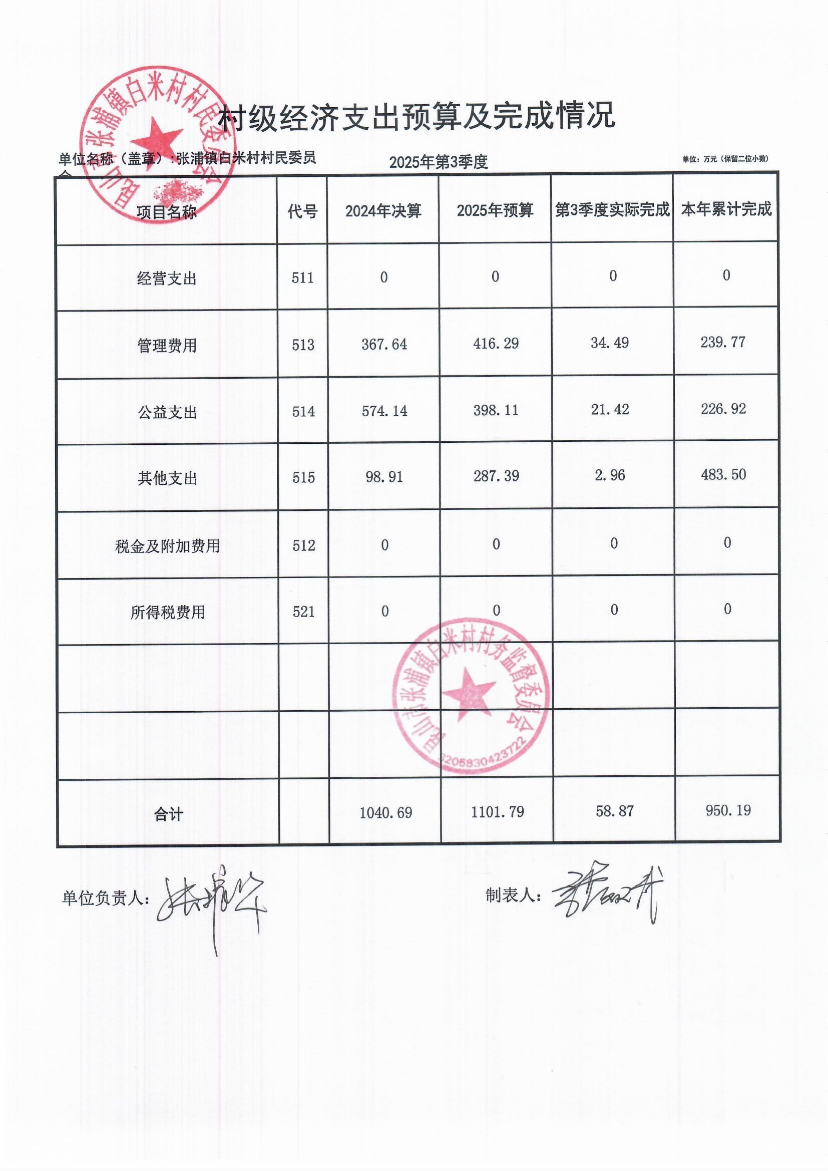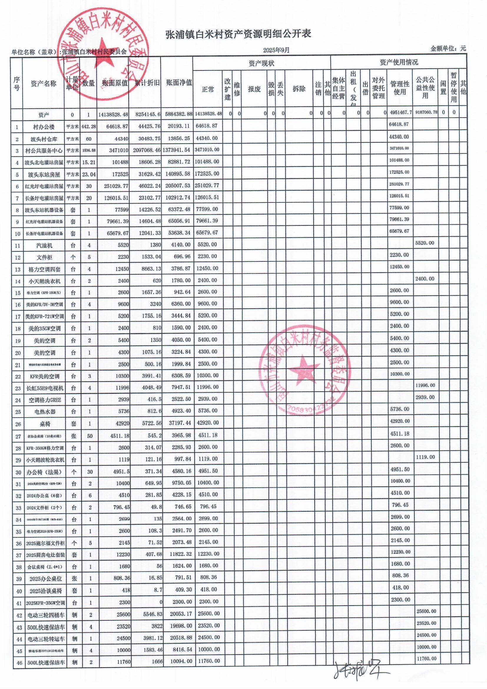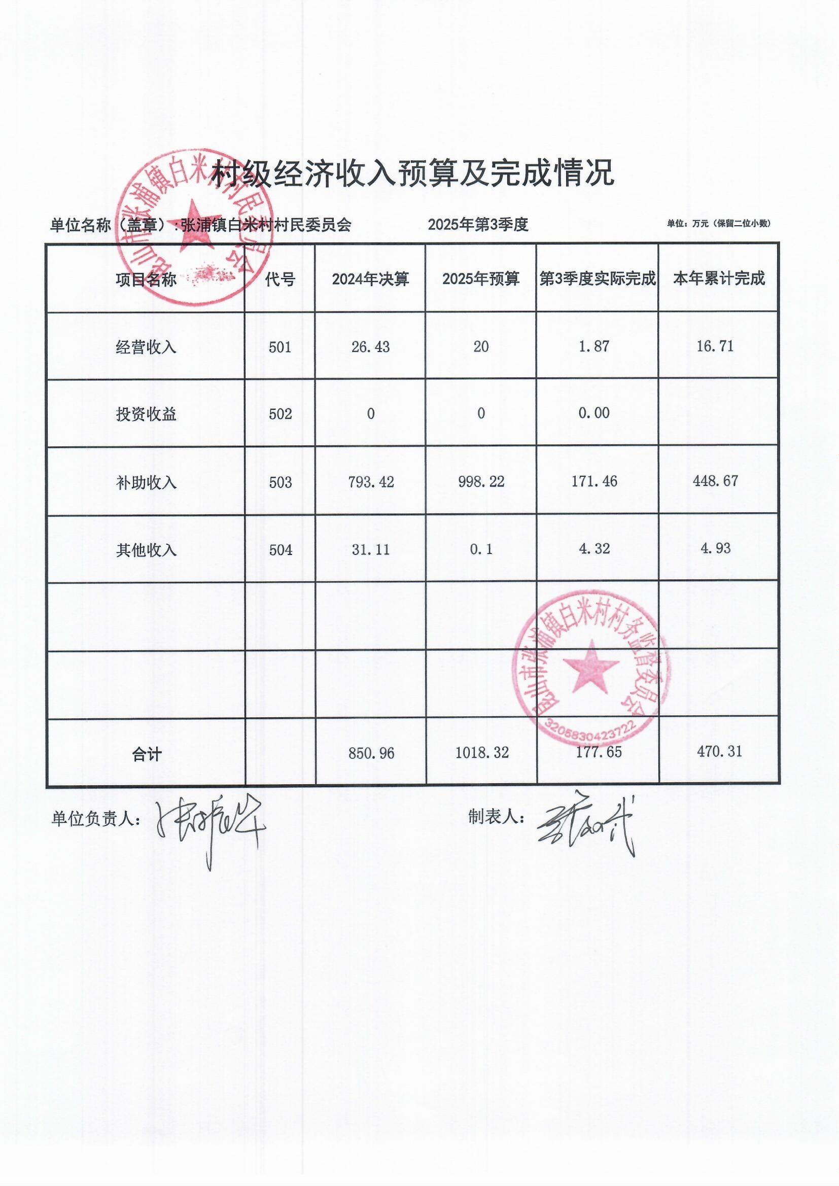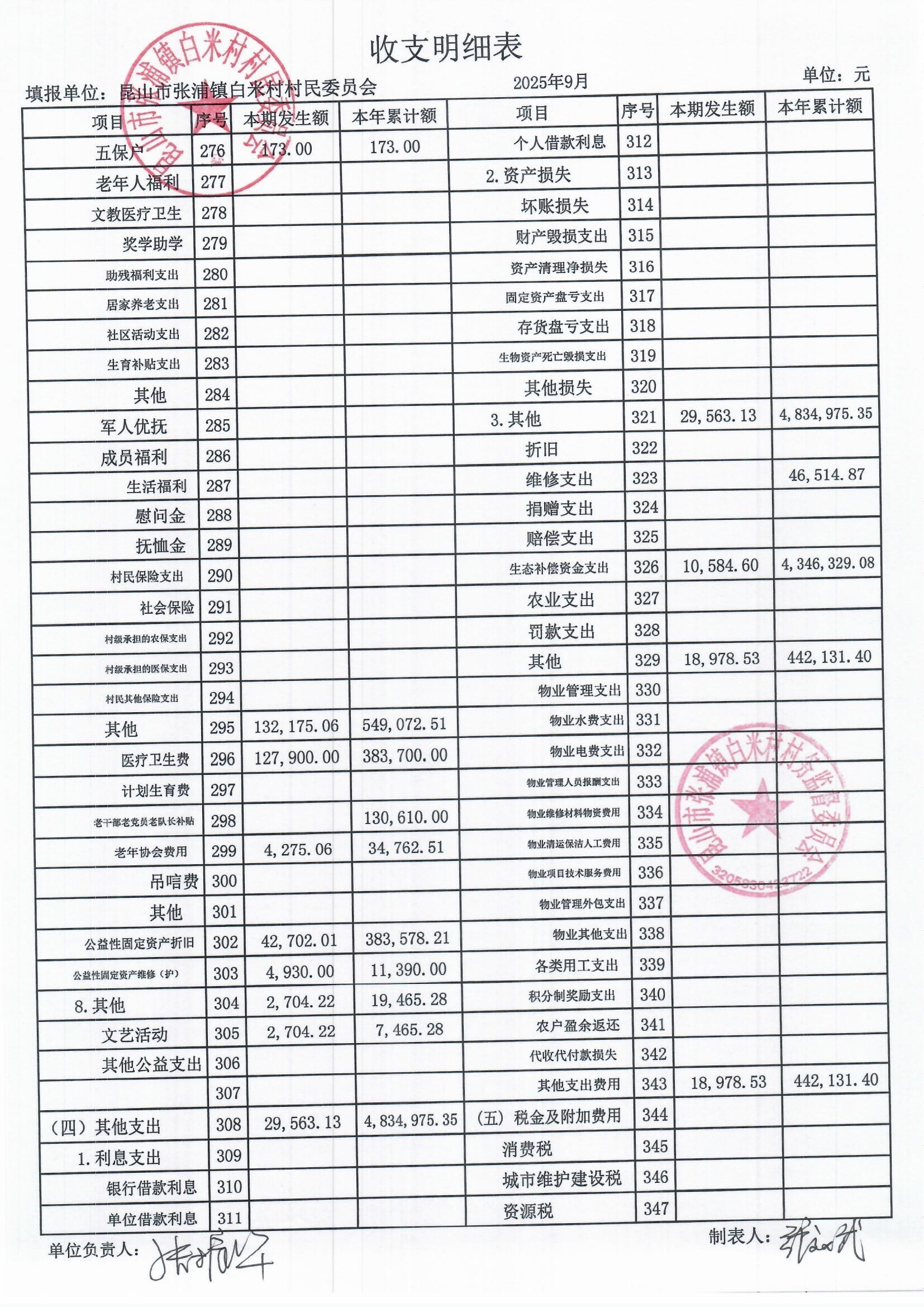 2025年9月白米村委會和股份合作社財務(wù)公開