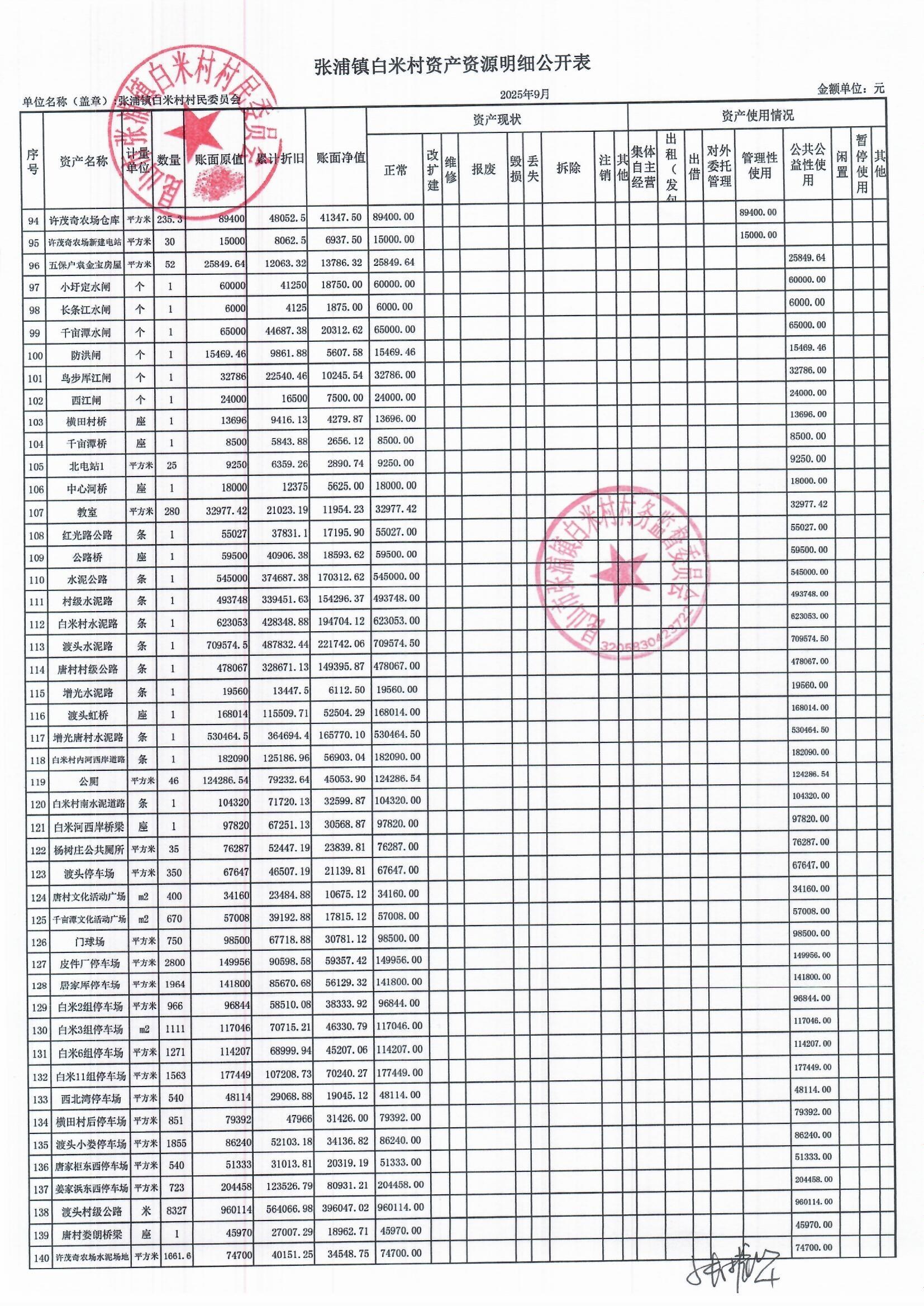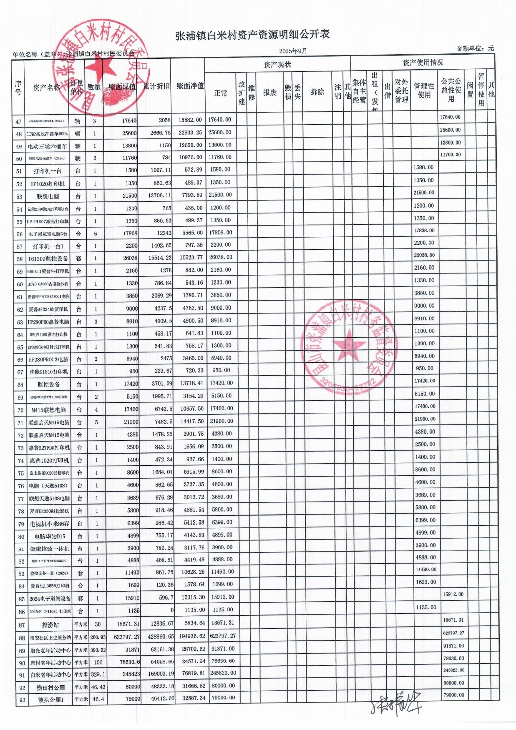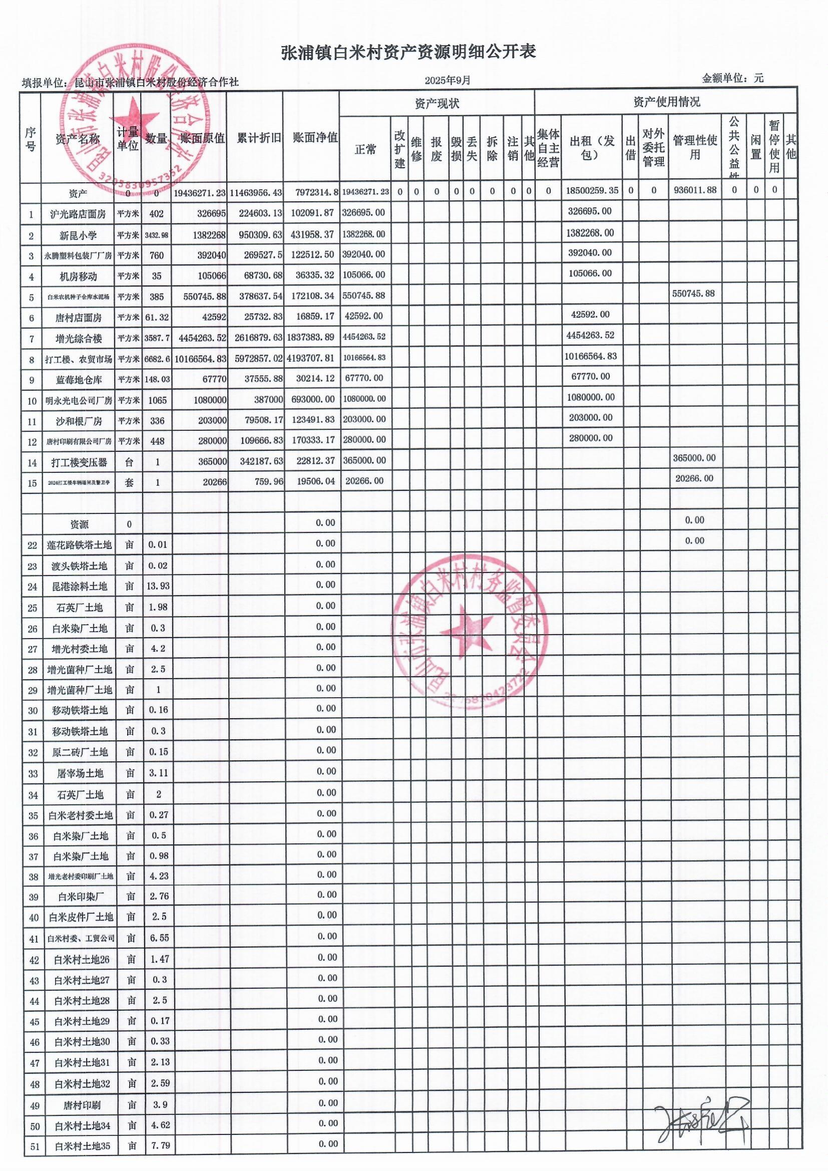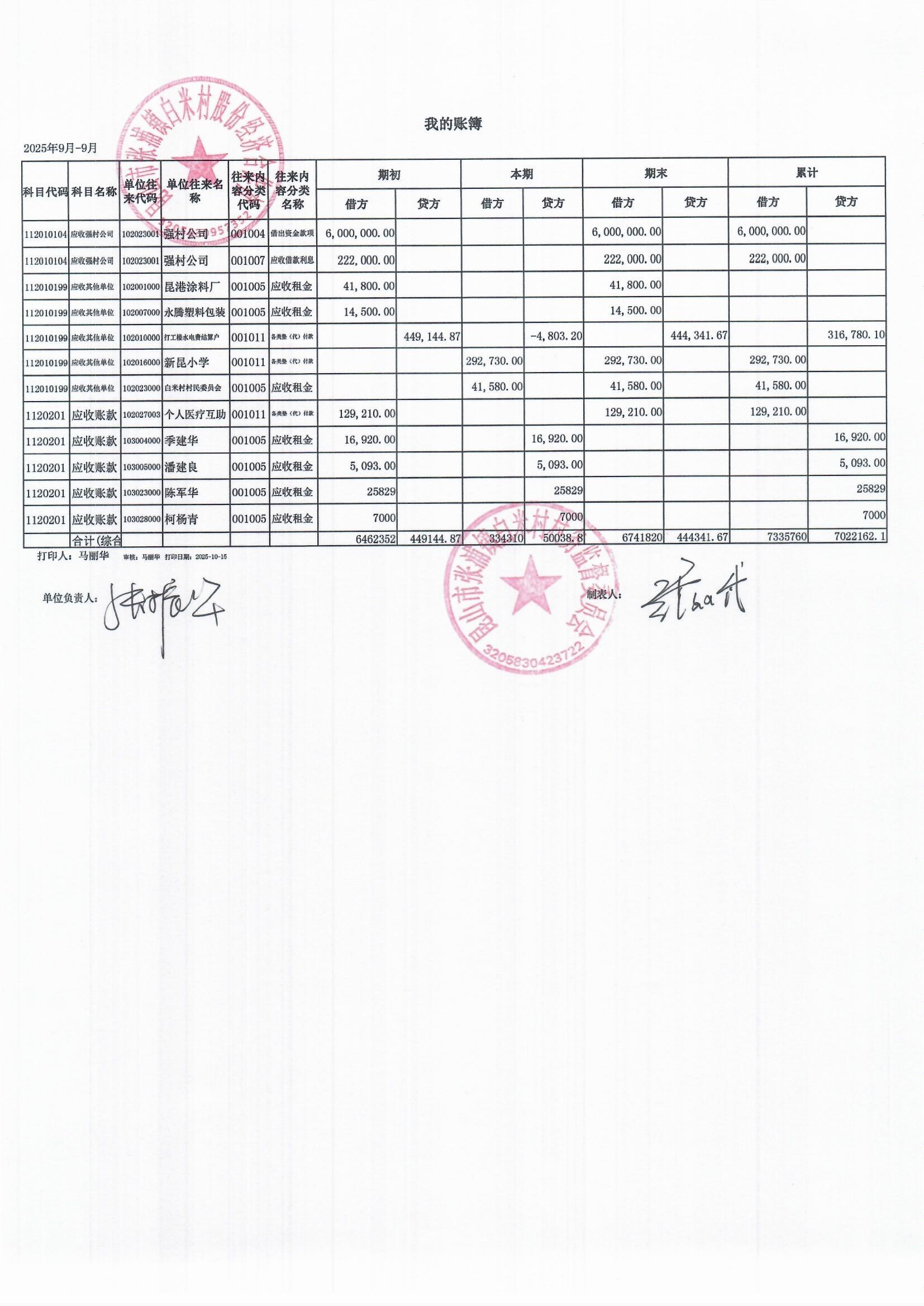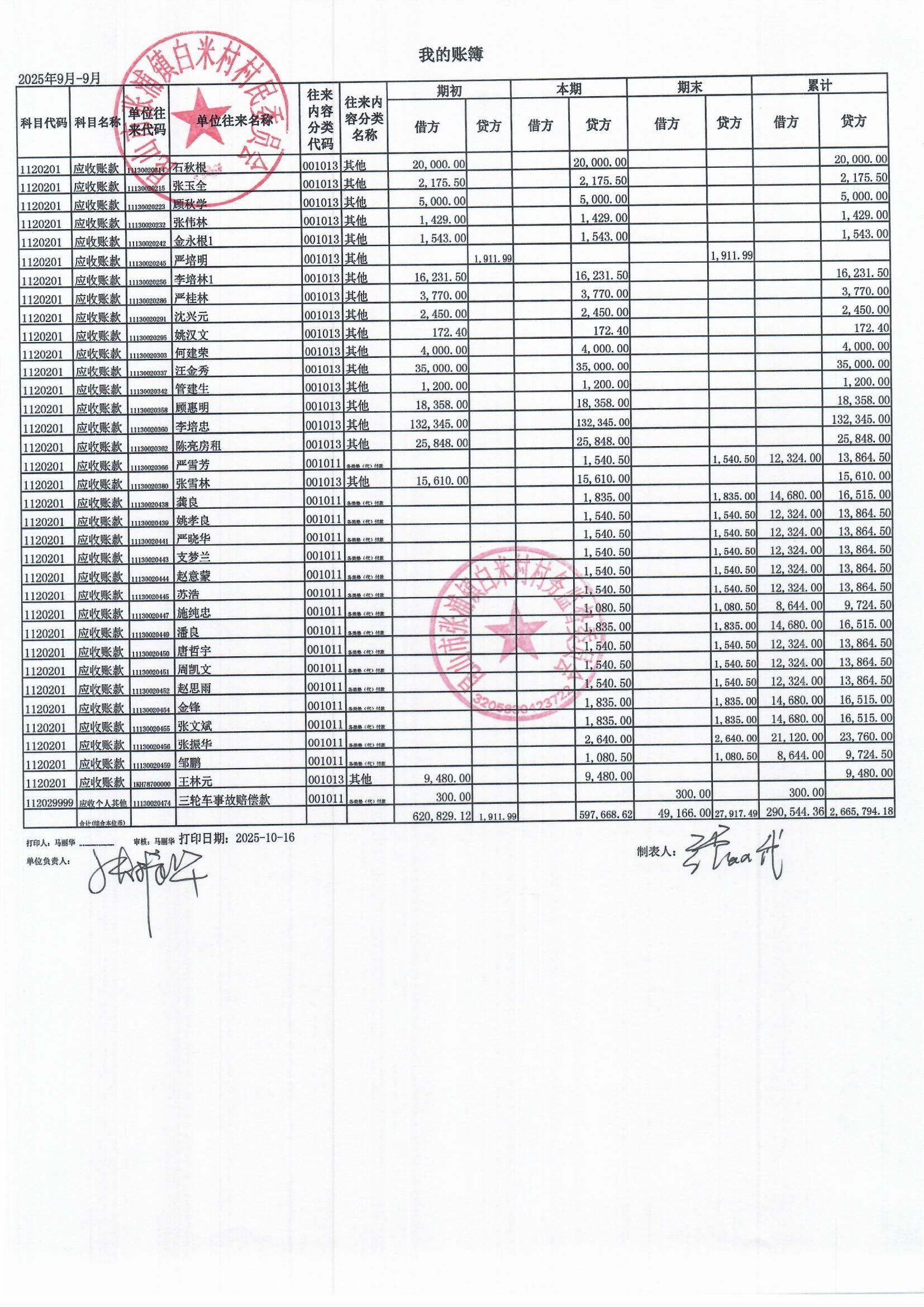 2025年9月白米村委會和股份合作社財務(wù)公開