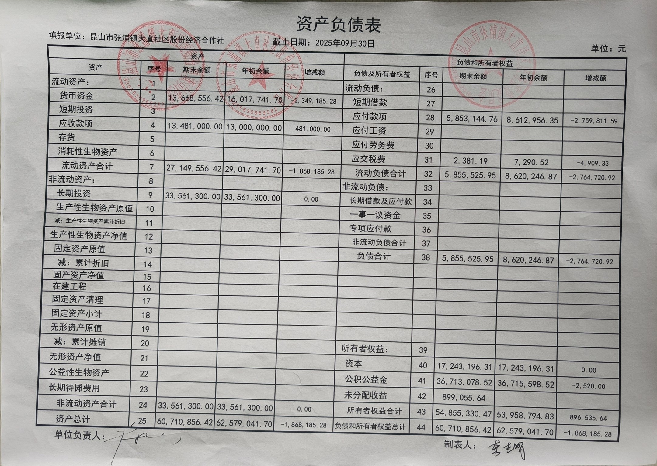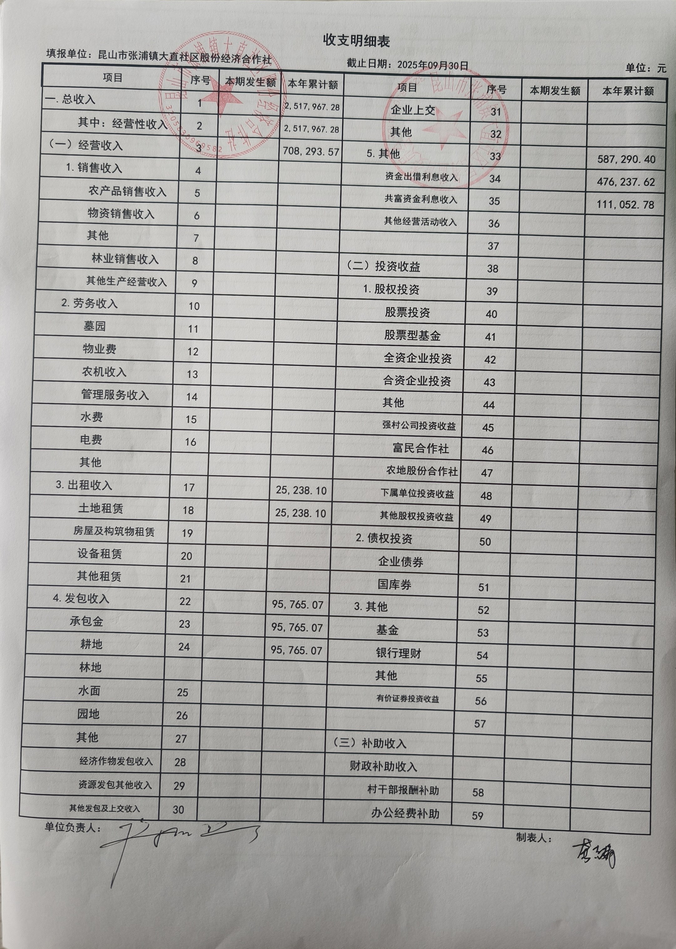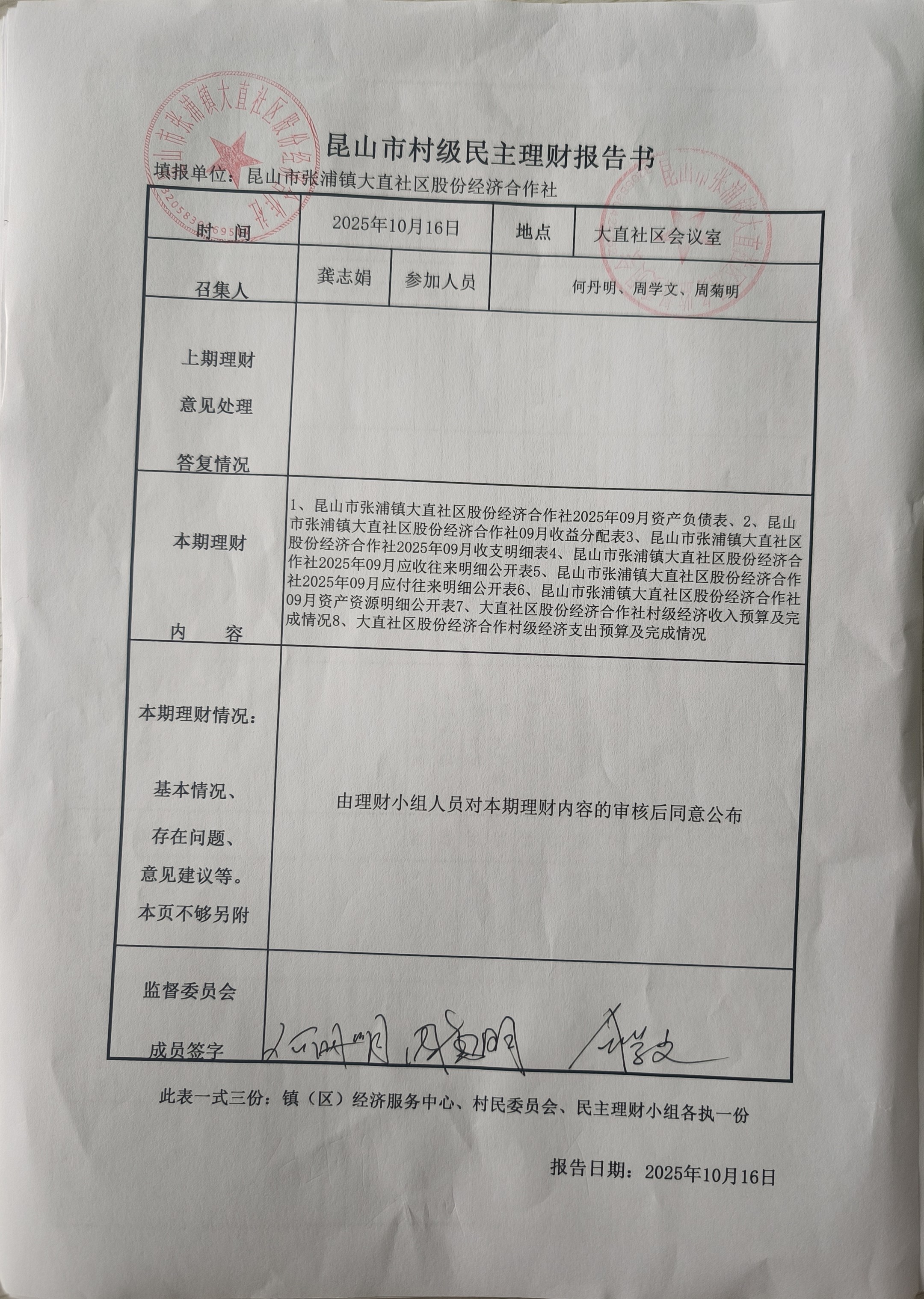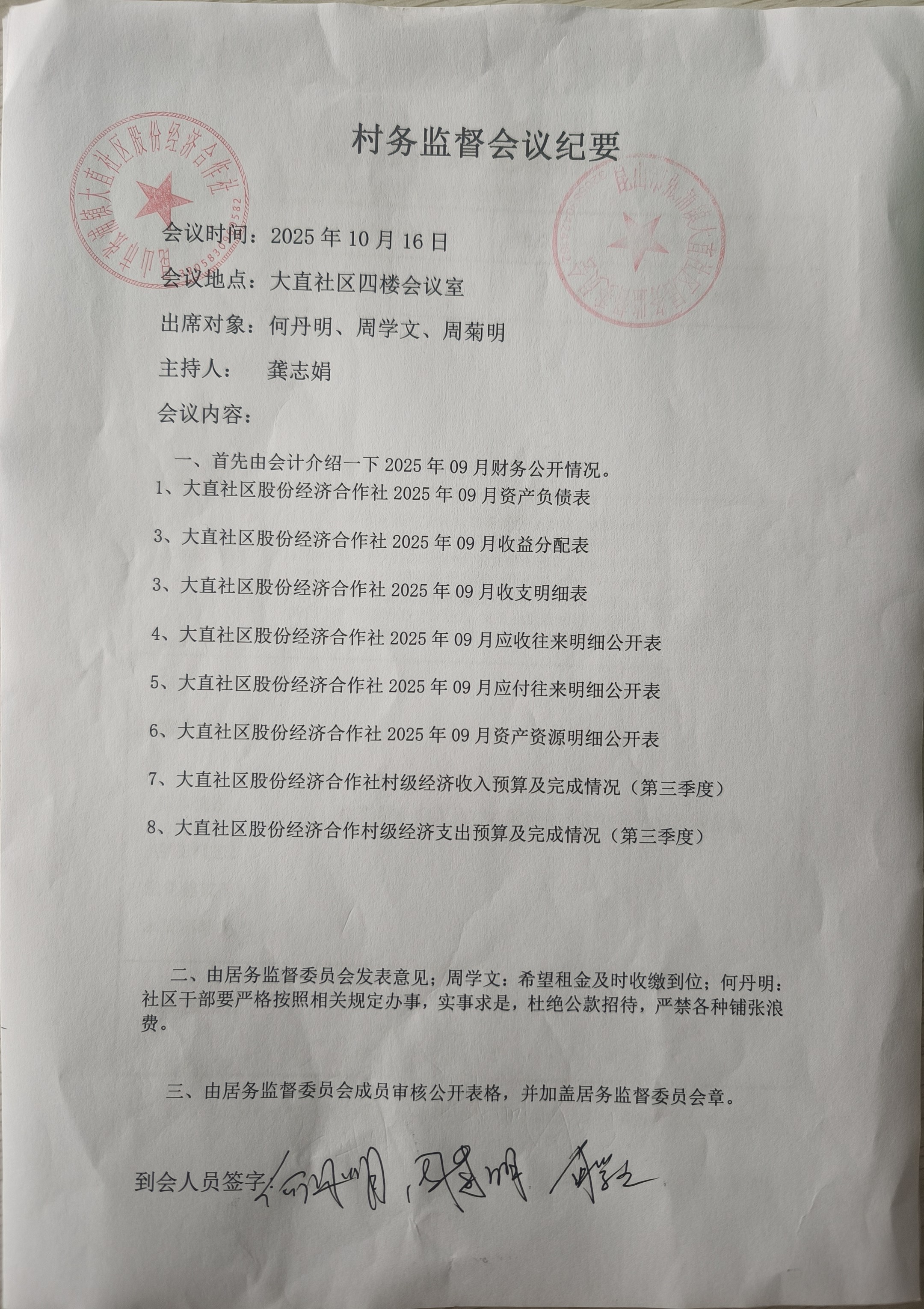 2025年9月大直社區(qū)股份經(jīng)濟(jì)合作社財務(wù)公開