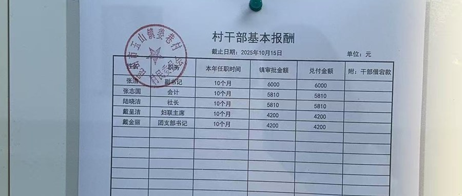 姜巷村2025年10月份財(cái)務(wù)公開(村干部基本報(bào)酬類)