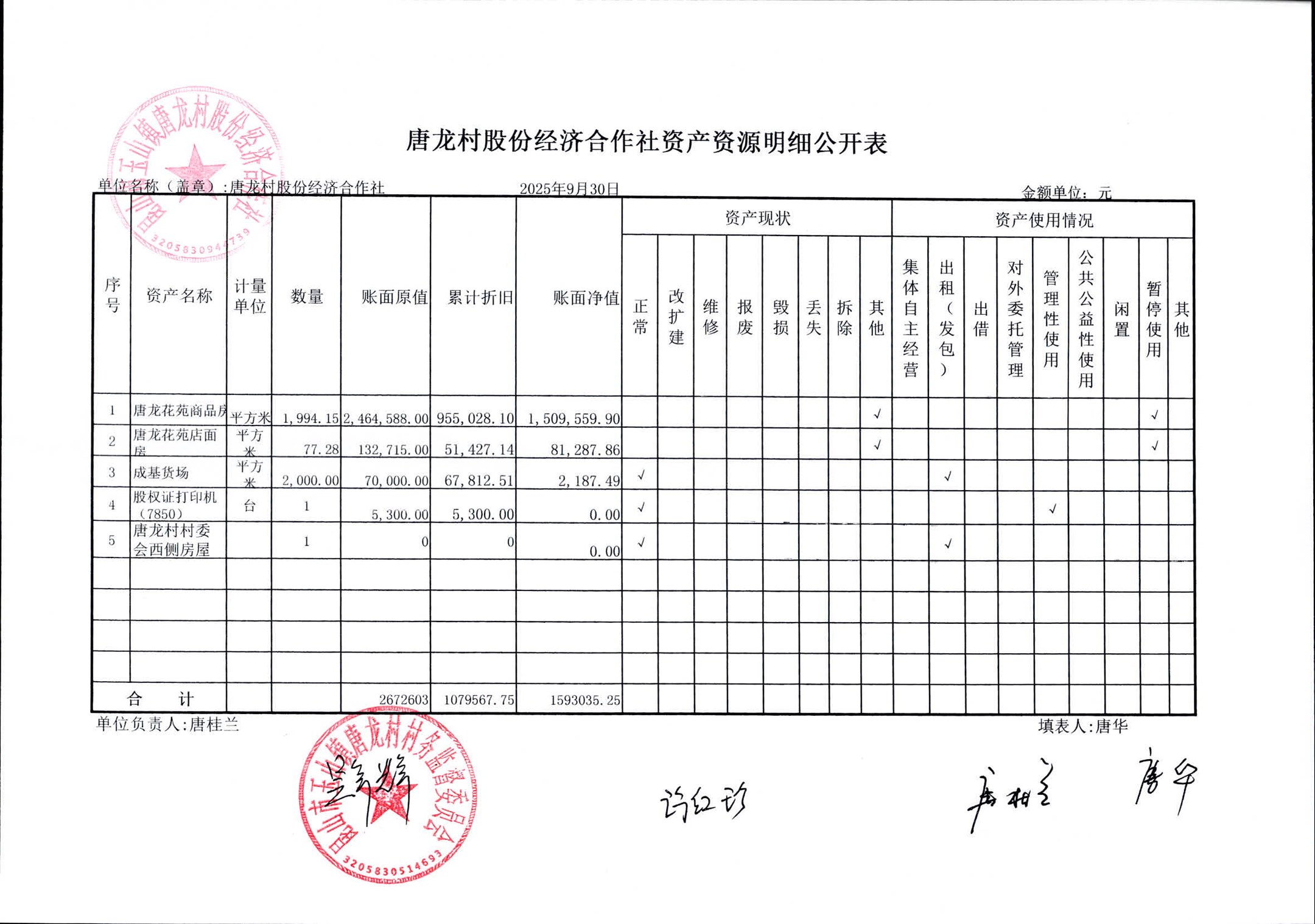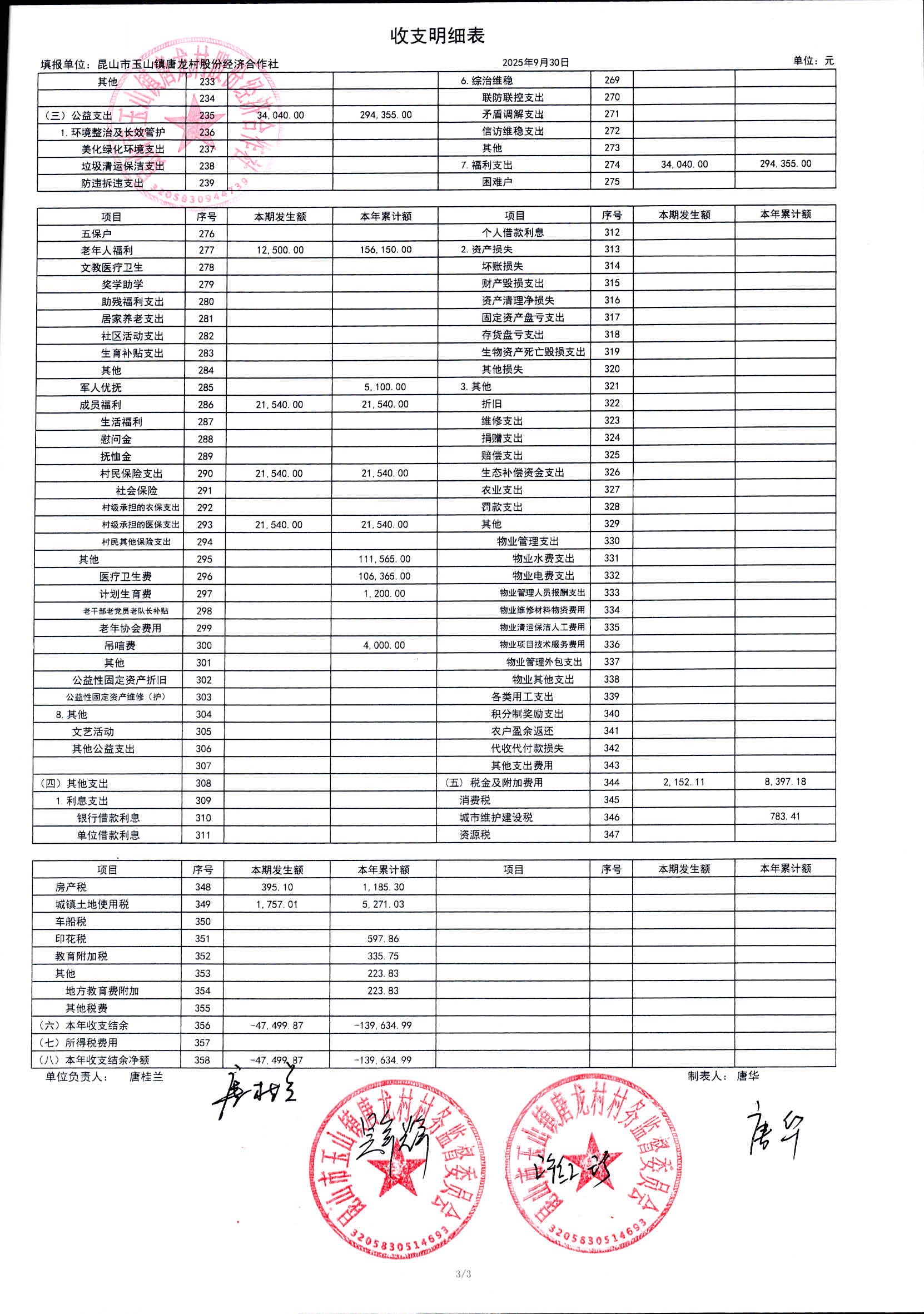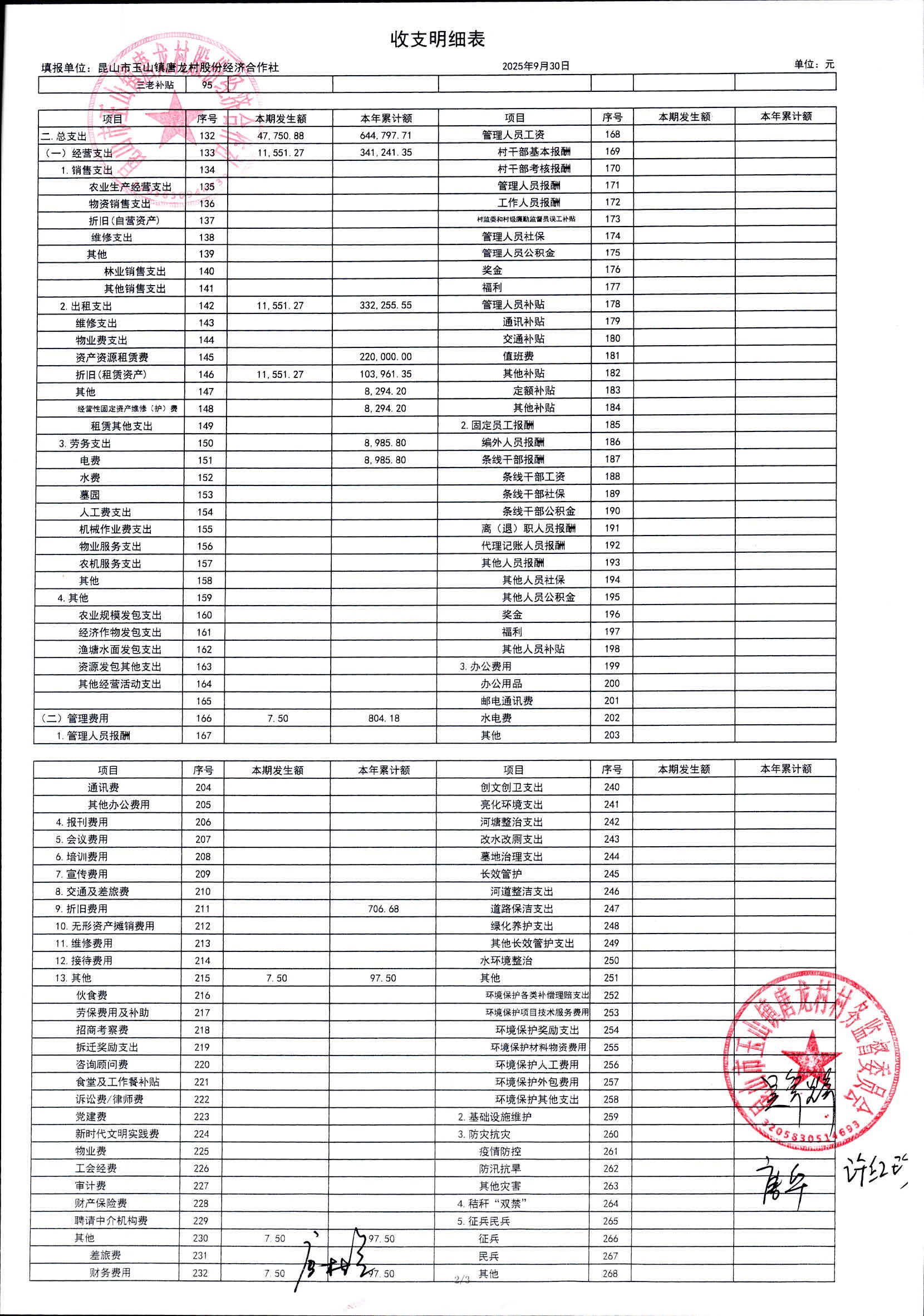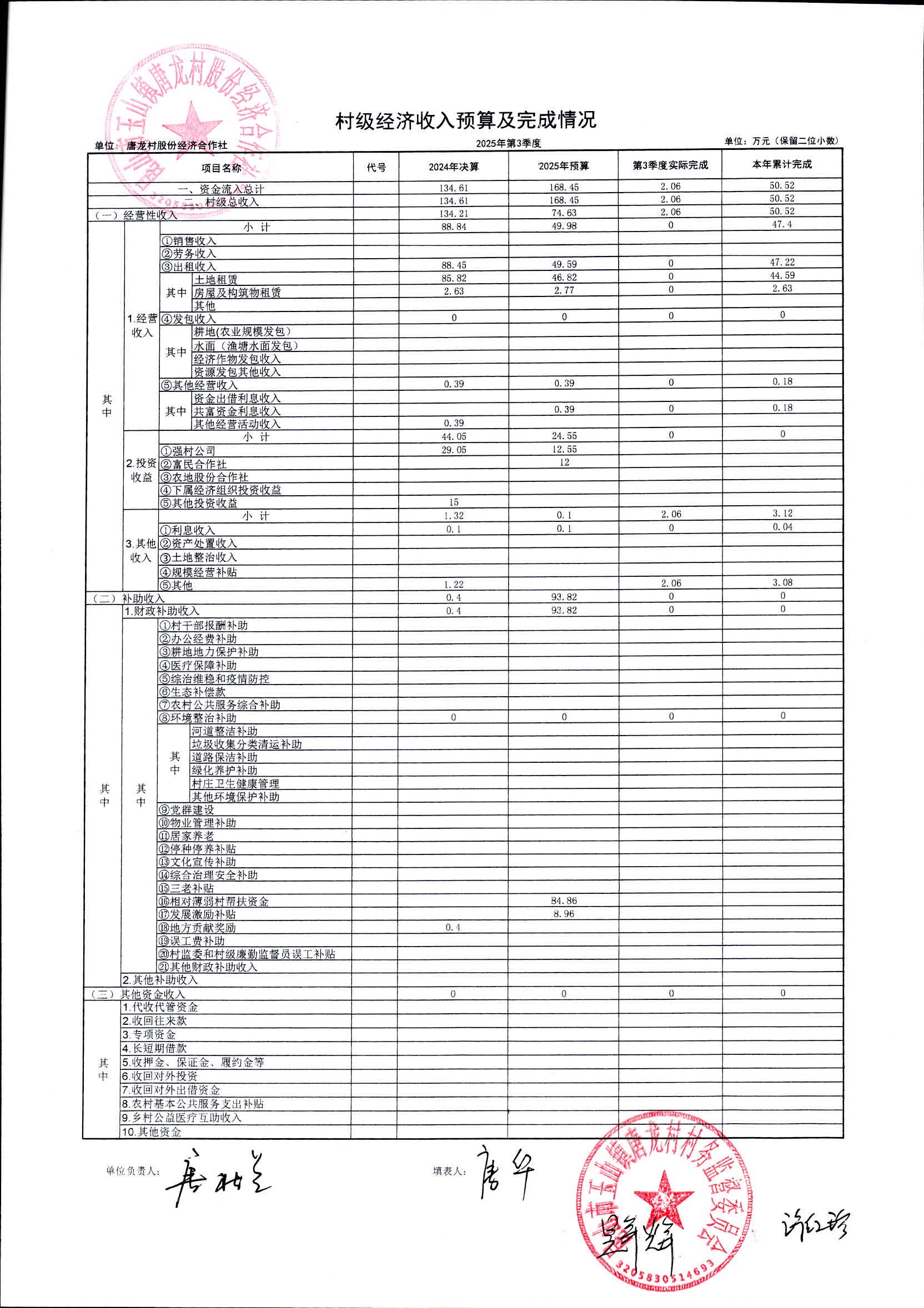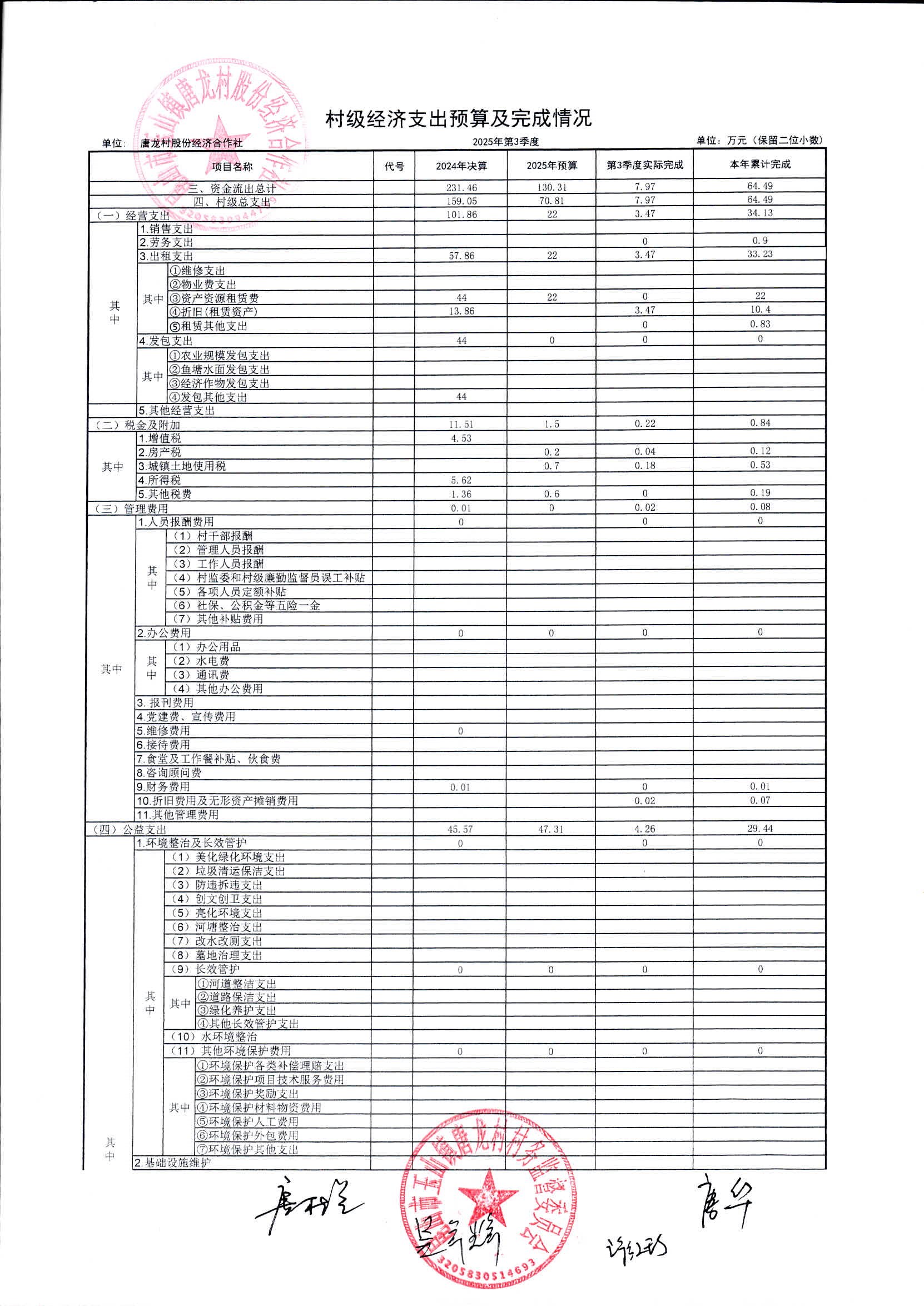 2025年10月唐龍村股份財務(wù)公開及村級經(jīng)濟(jì)第3季度收入支出預(yù)算完成情況