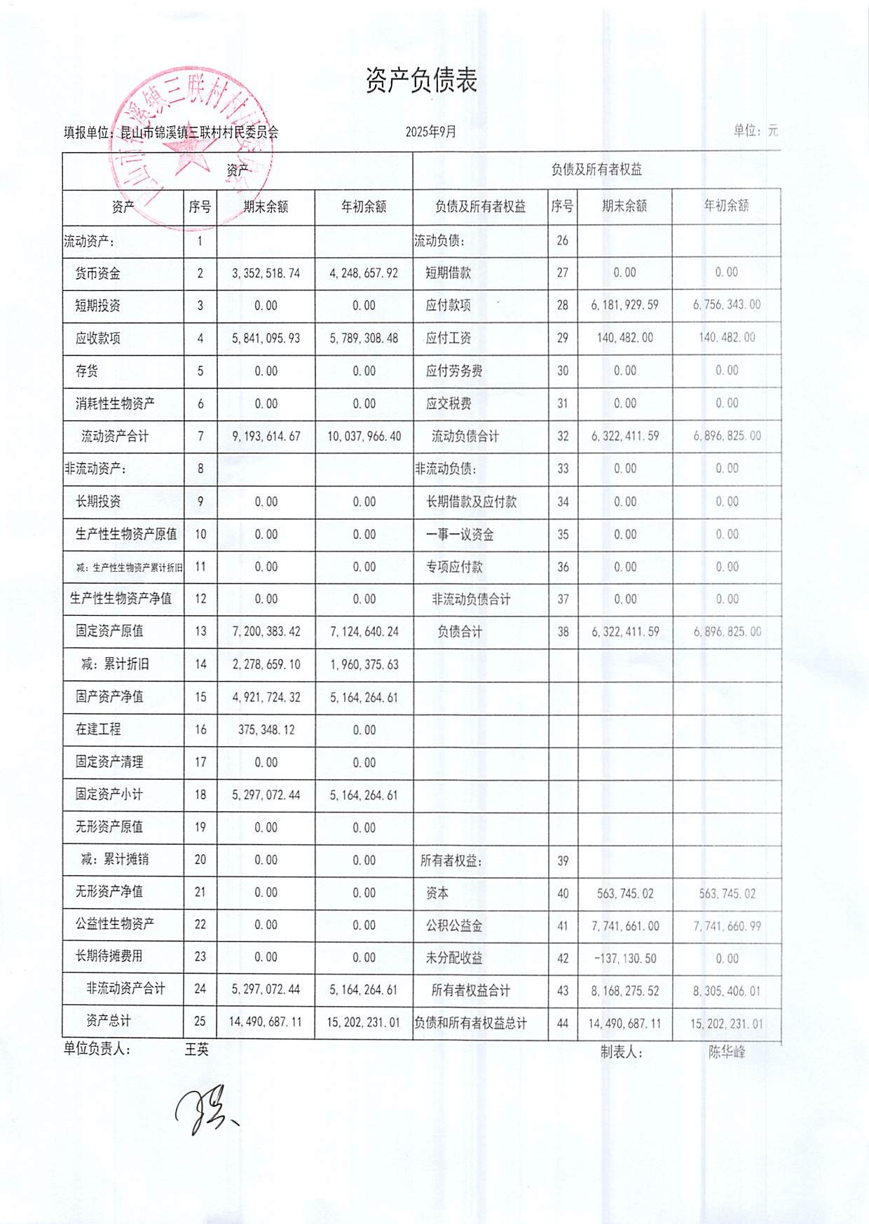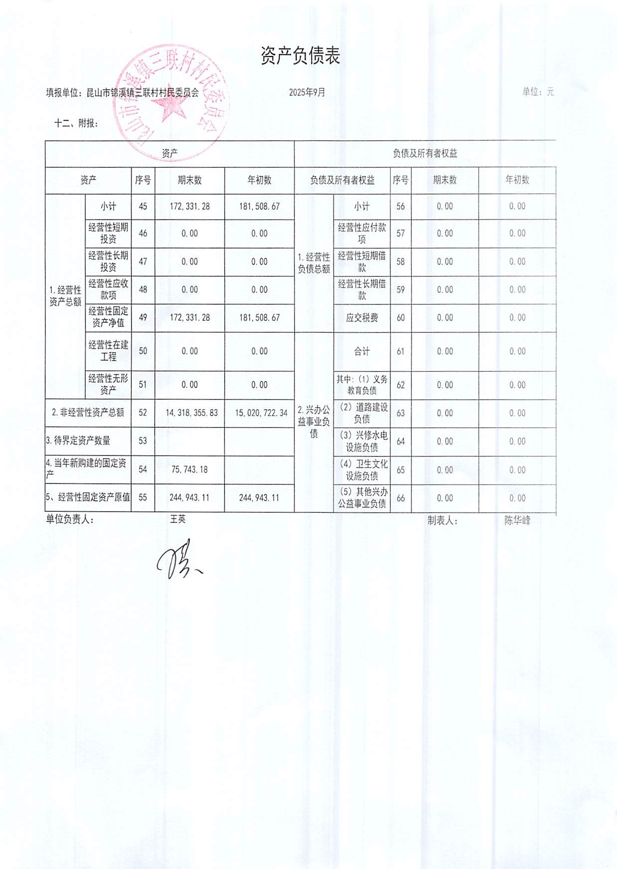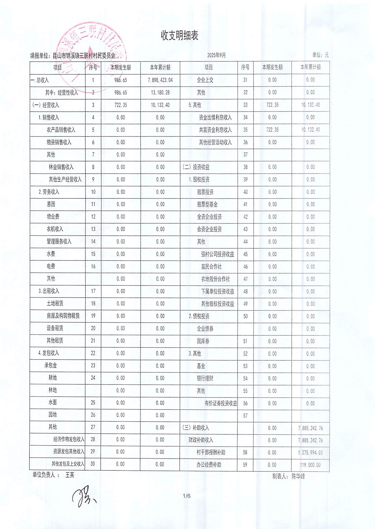 2025年三聯(lián)村村委會(huì)9月份財(cái)務(wù)公開