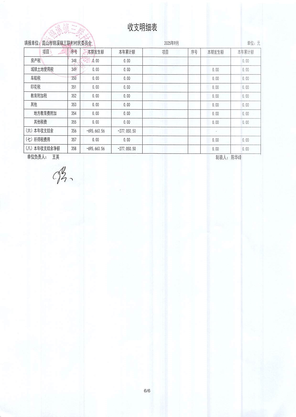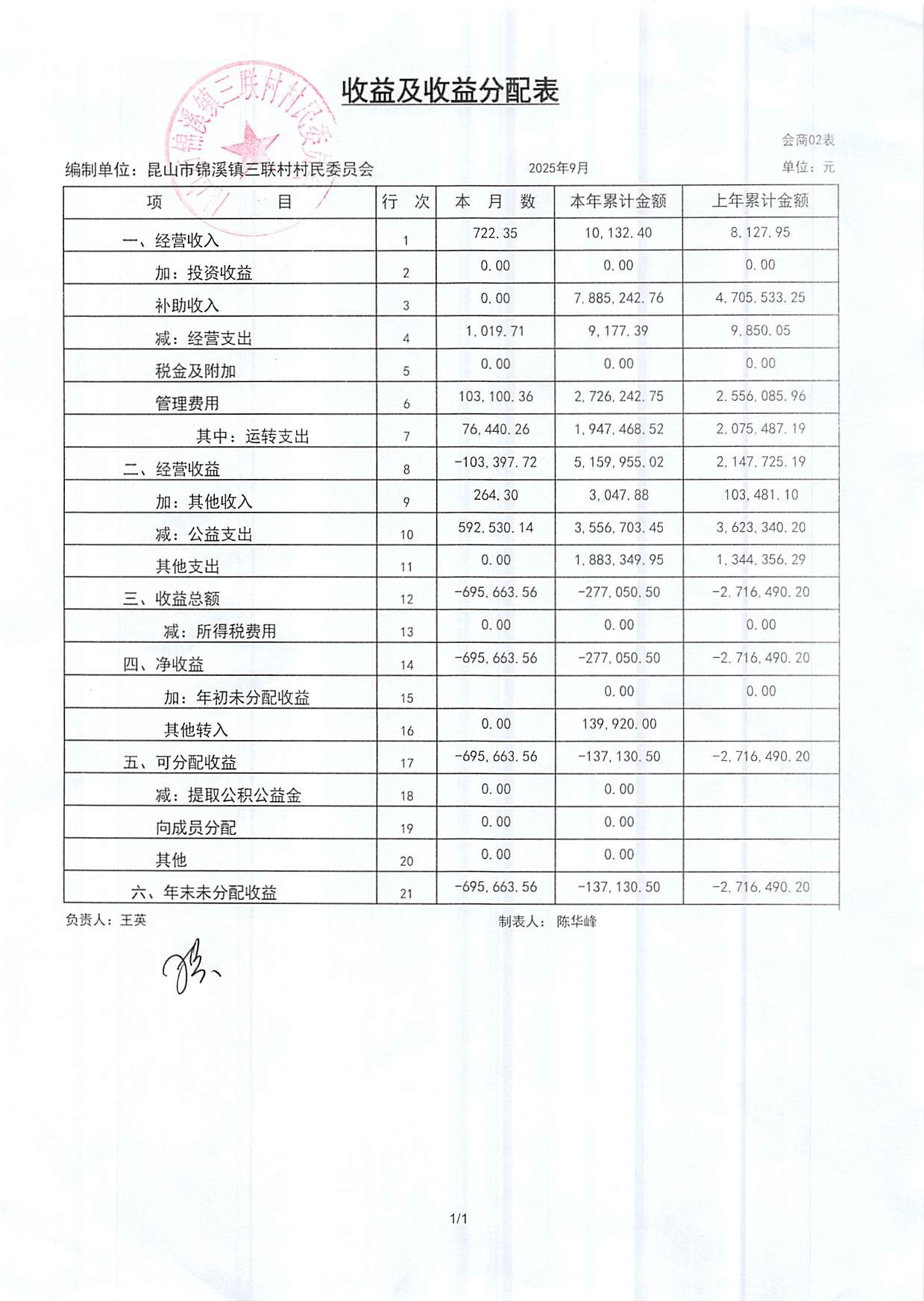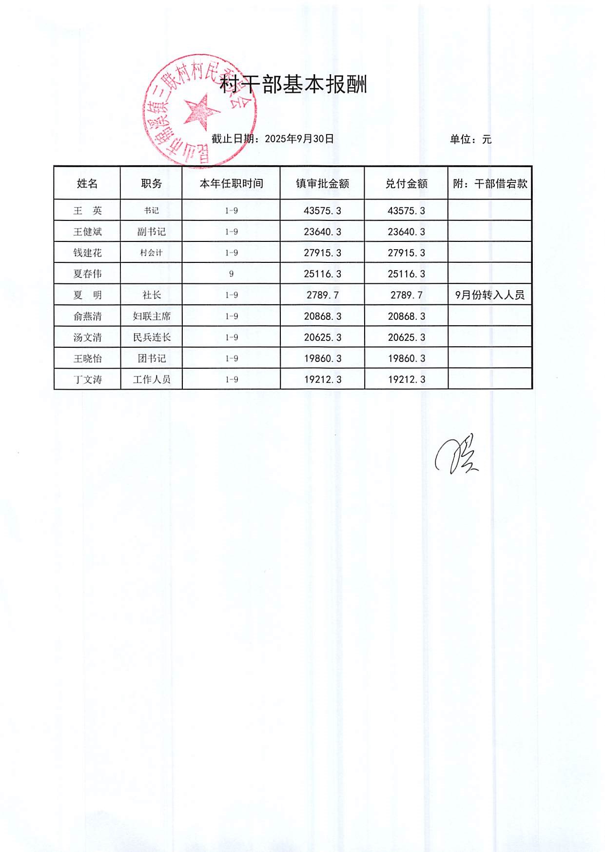 2025年三聯(lián)村村委會(huì)9月份財(cái)務(wù)公開