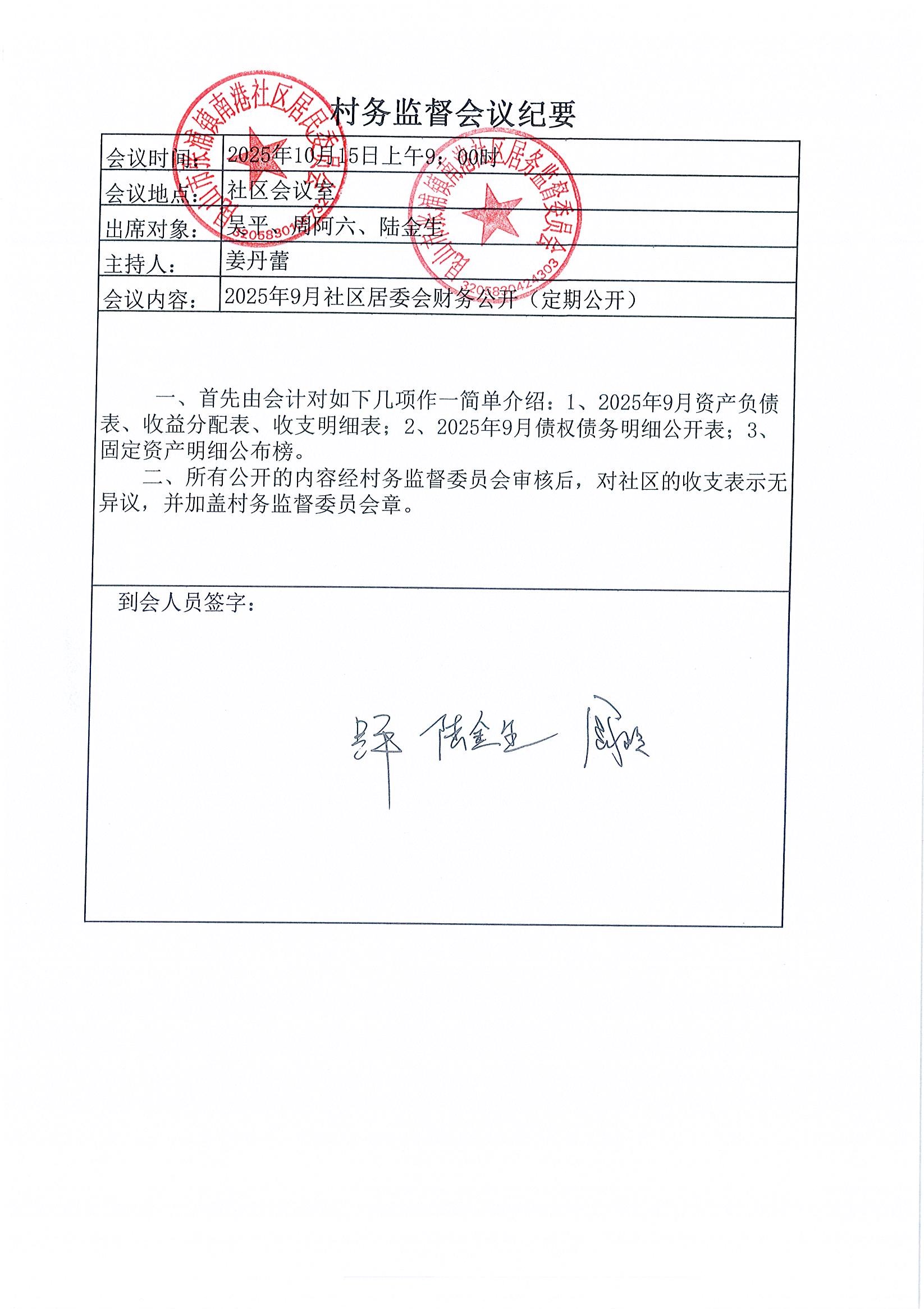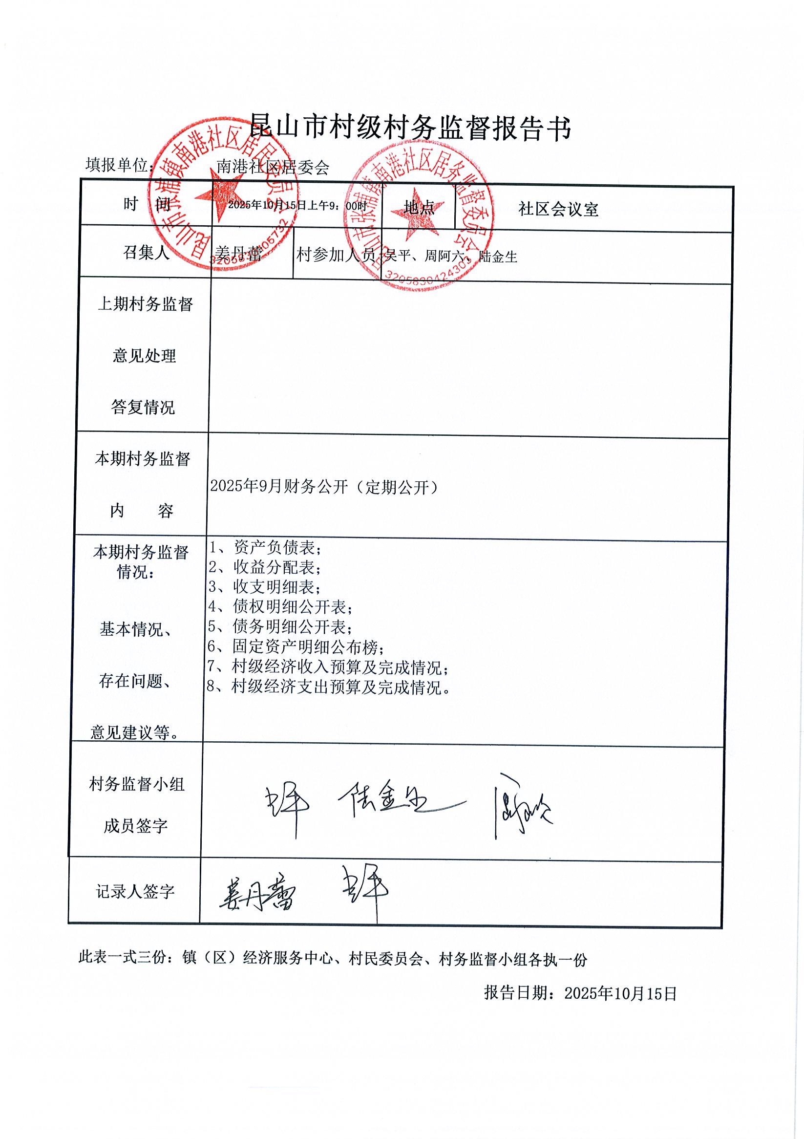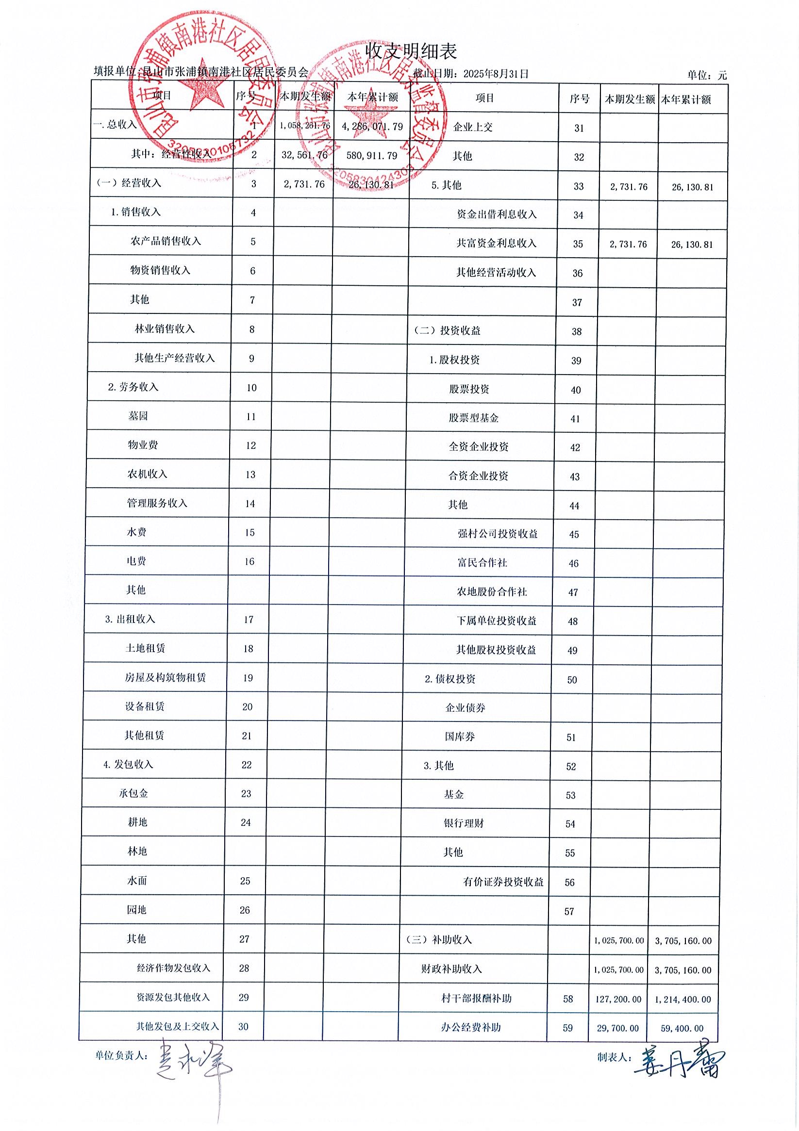 南港社區(qū)居委會(huì)2025年9月財(cái)務(wù)公開(kāi)(定期公開(kāi))