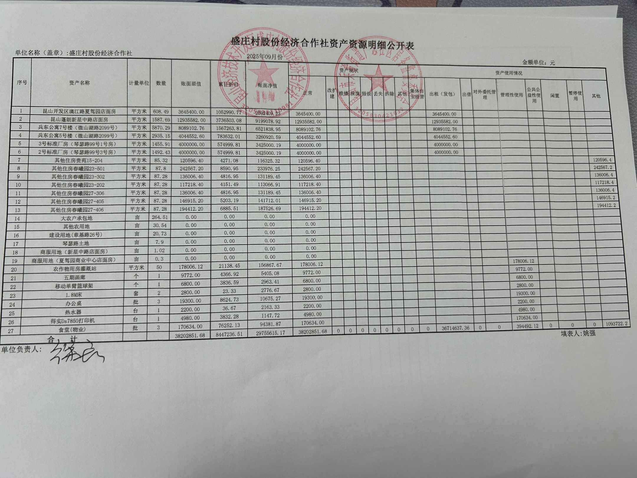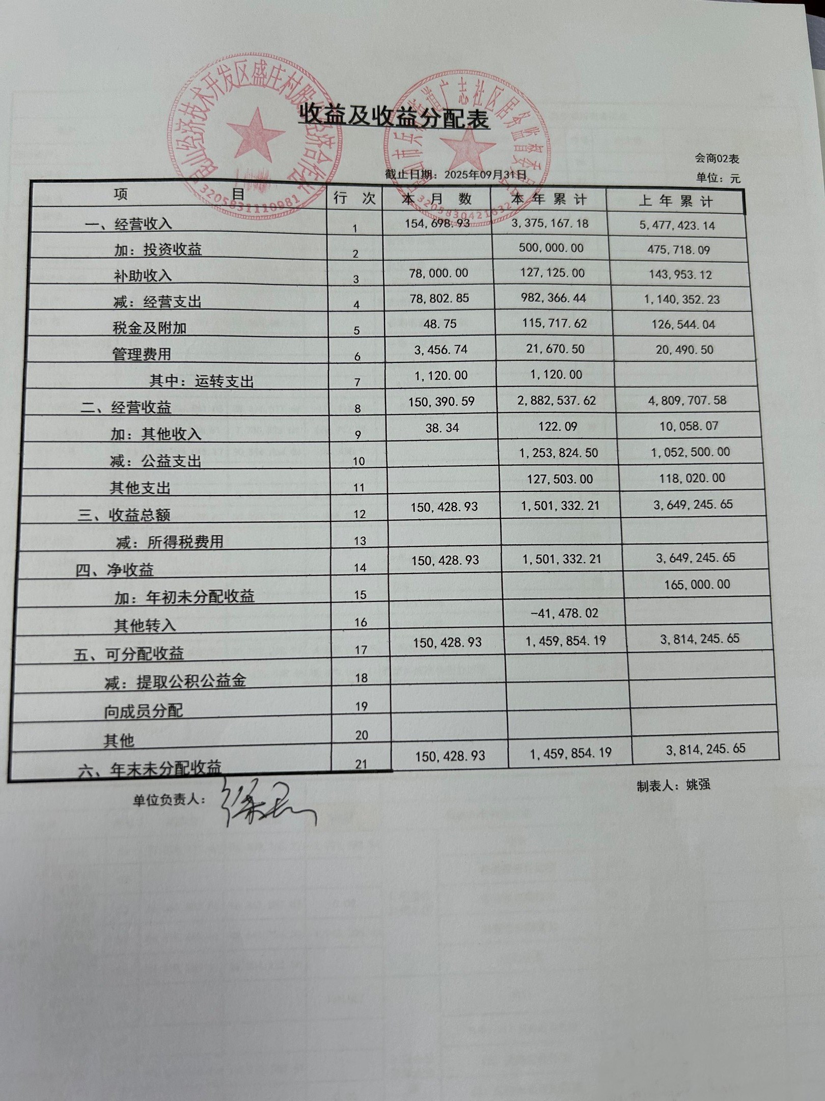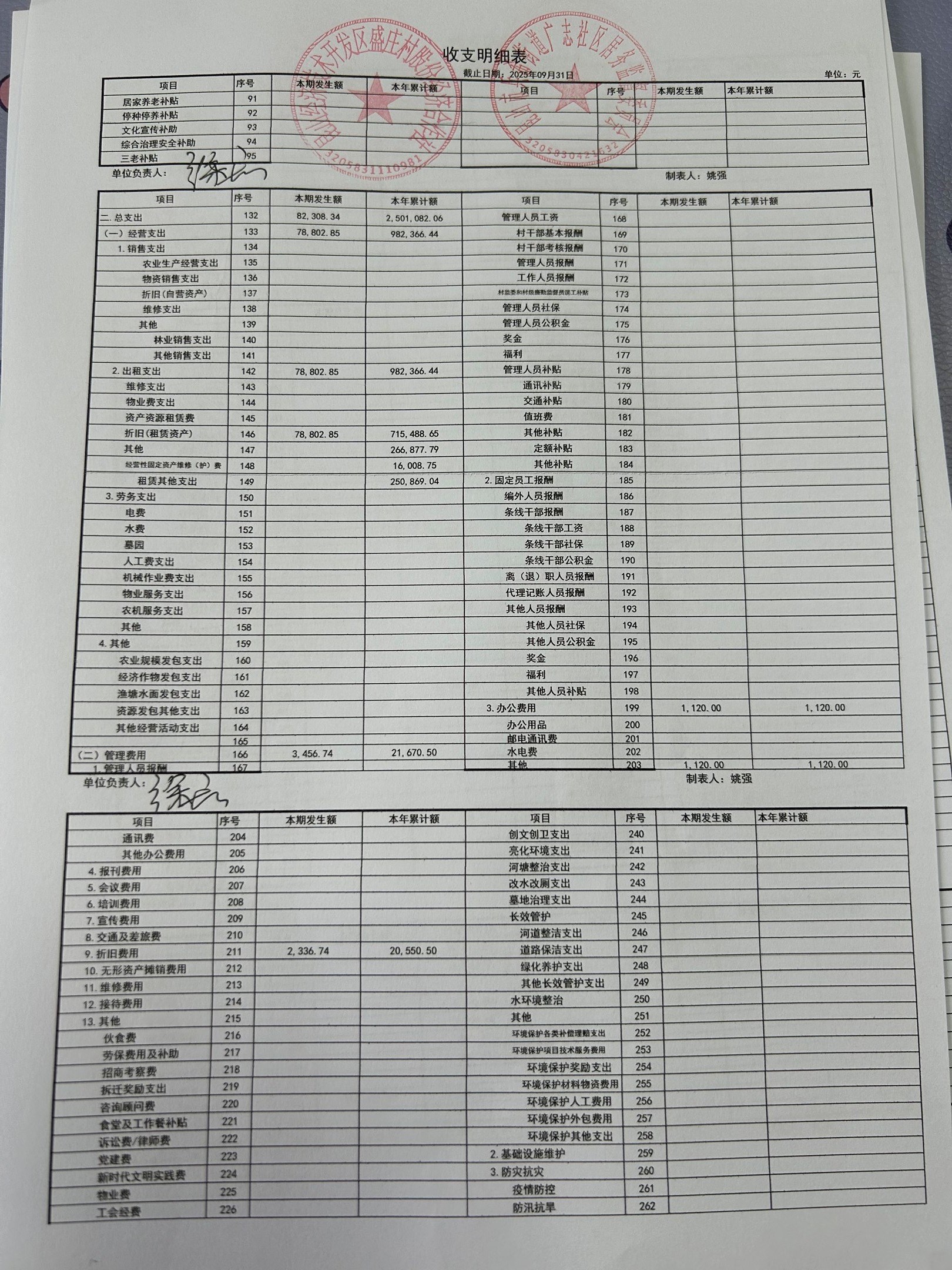 2025年9月份盛莊村股份經(jīng)濟(jì)合作社財(cái)務(wù)公開資料