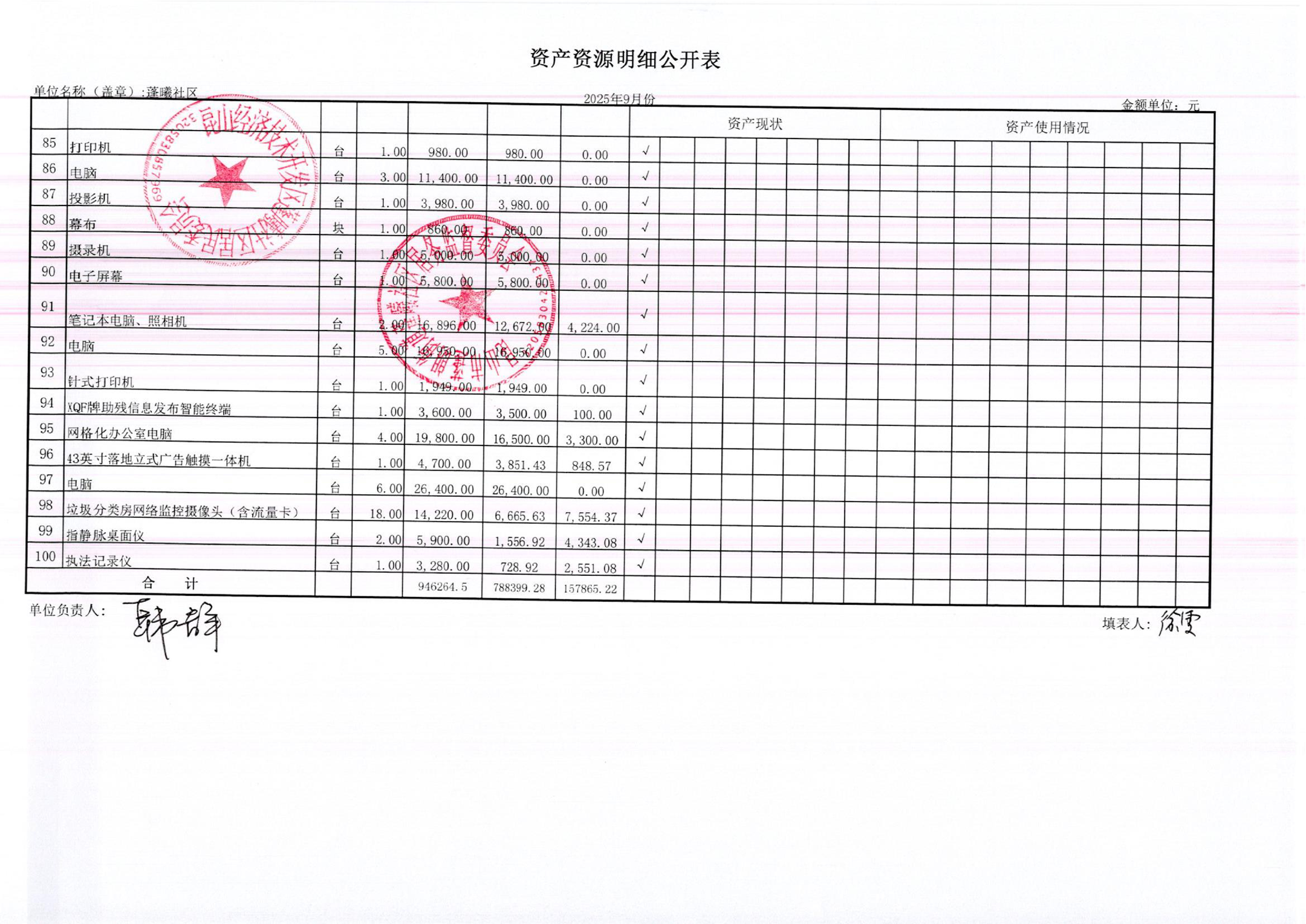 2025年9月蓬曦社區(qū)財務(wù)公開