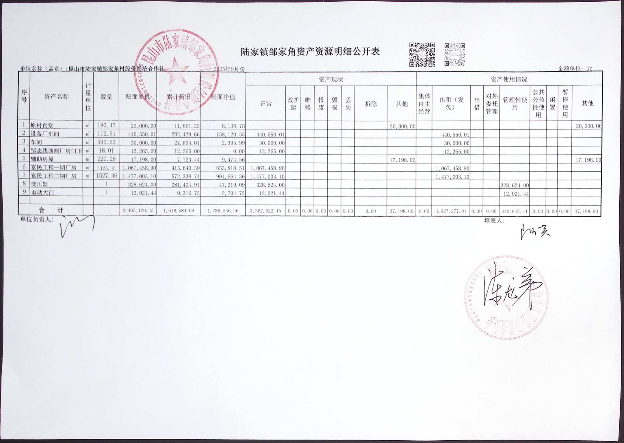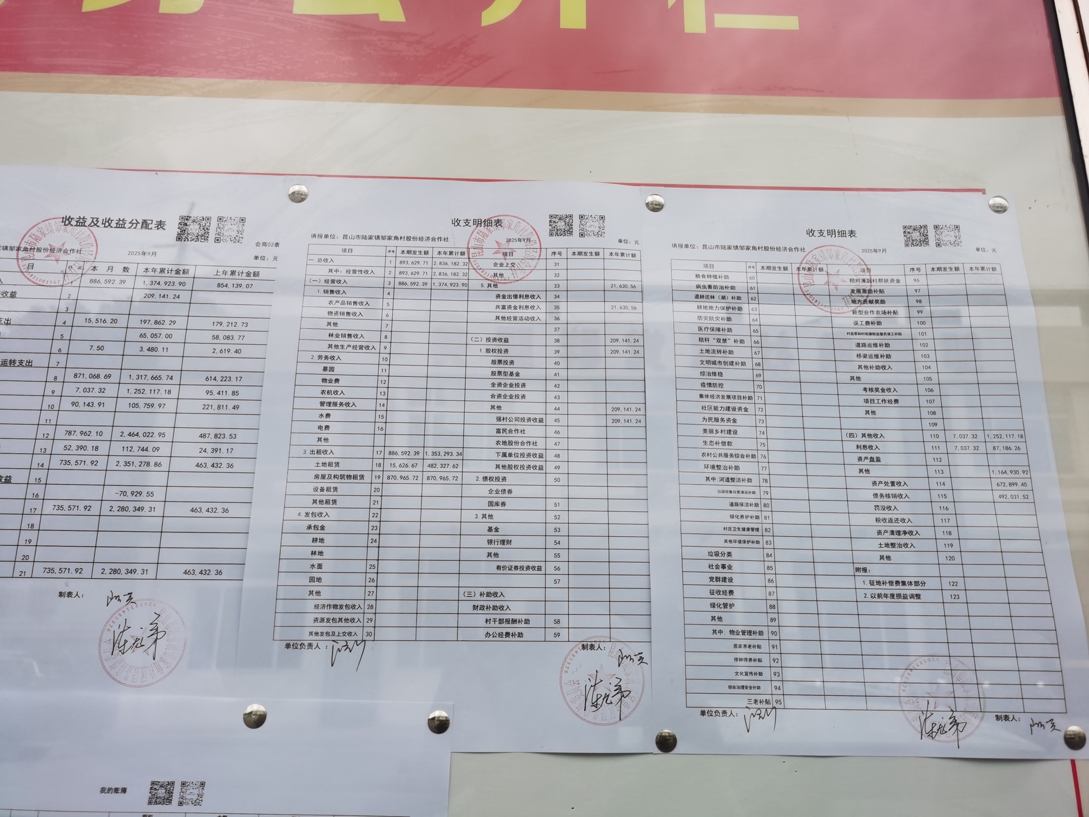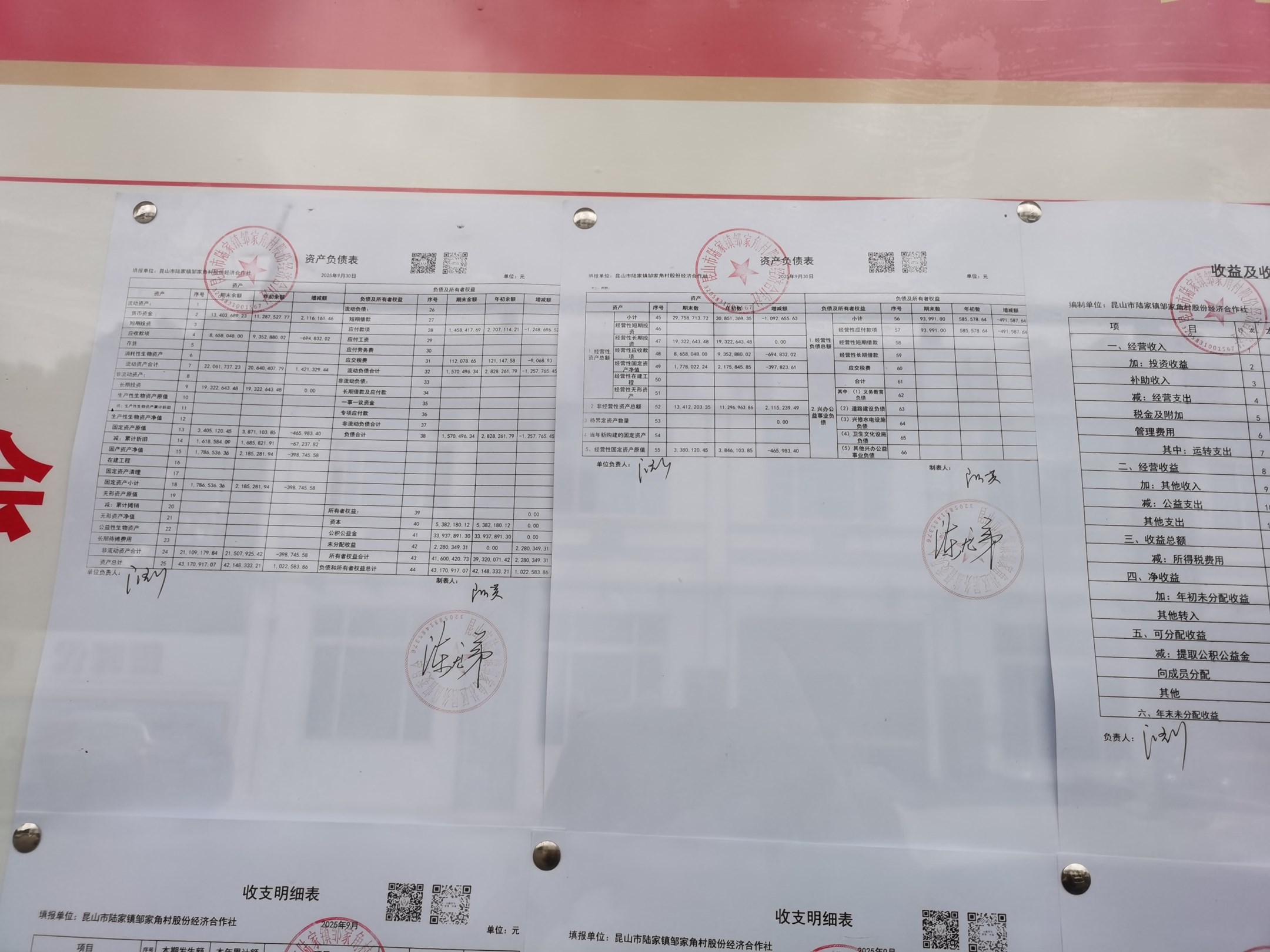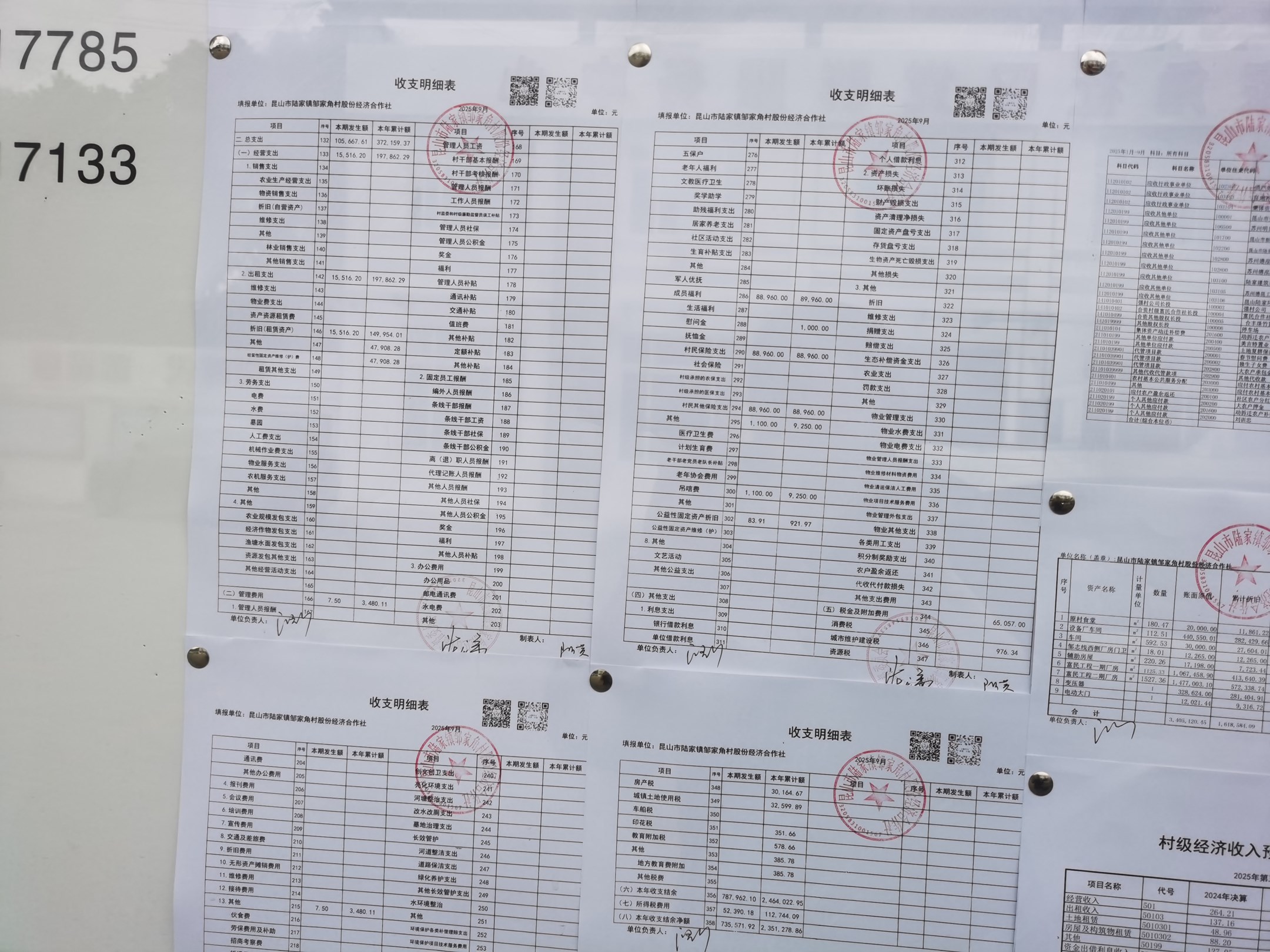 鄒家角村股份經濟合作社2025年9月份財務公開