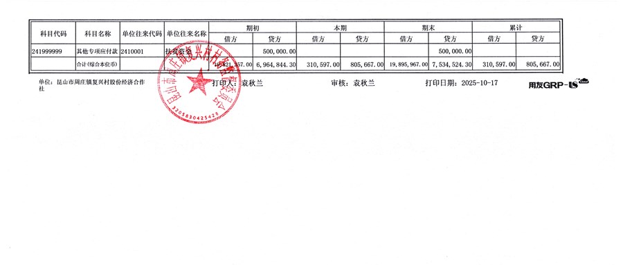 復興村股份經(jīng)濟合作社2025年9月財務公開