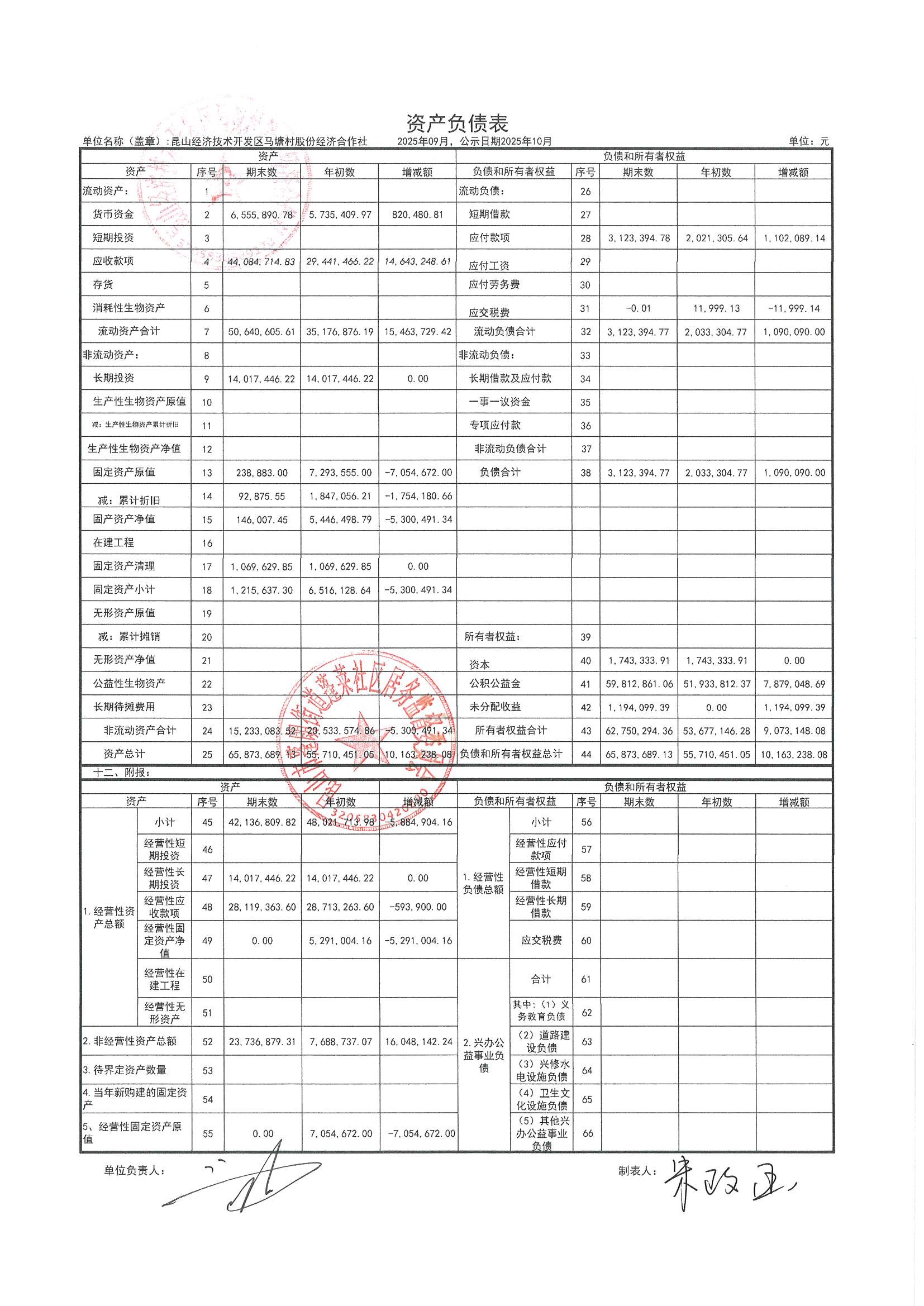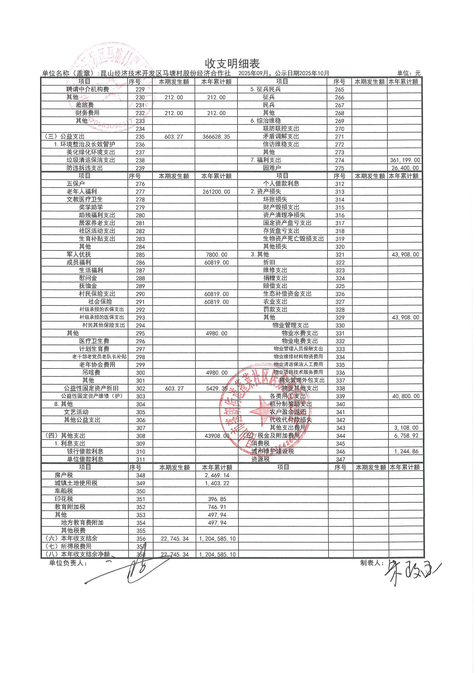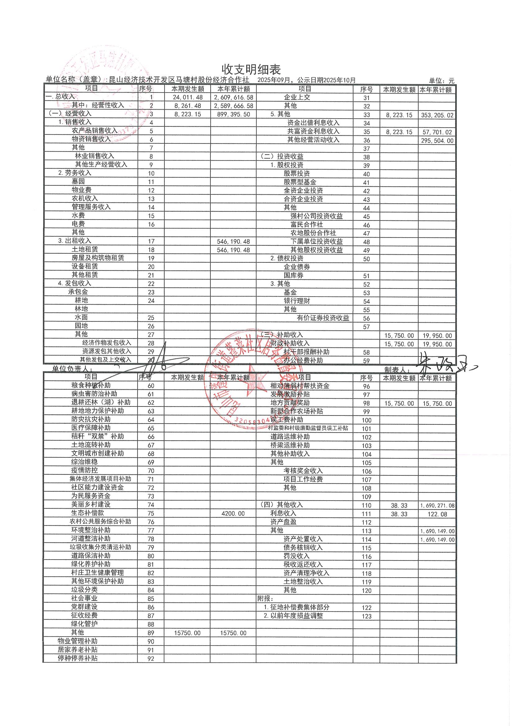 2025年9月財(cái)務(wù)公開(馬塘村股份經(jīng)濟(jì)合作社)