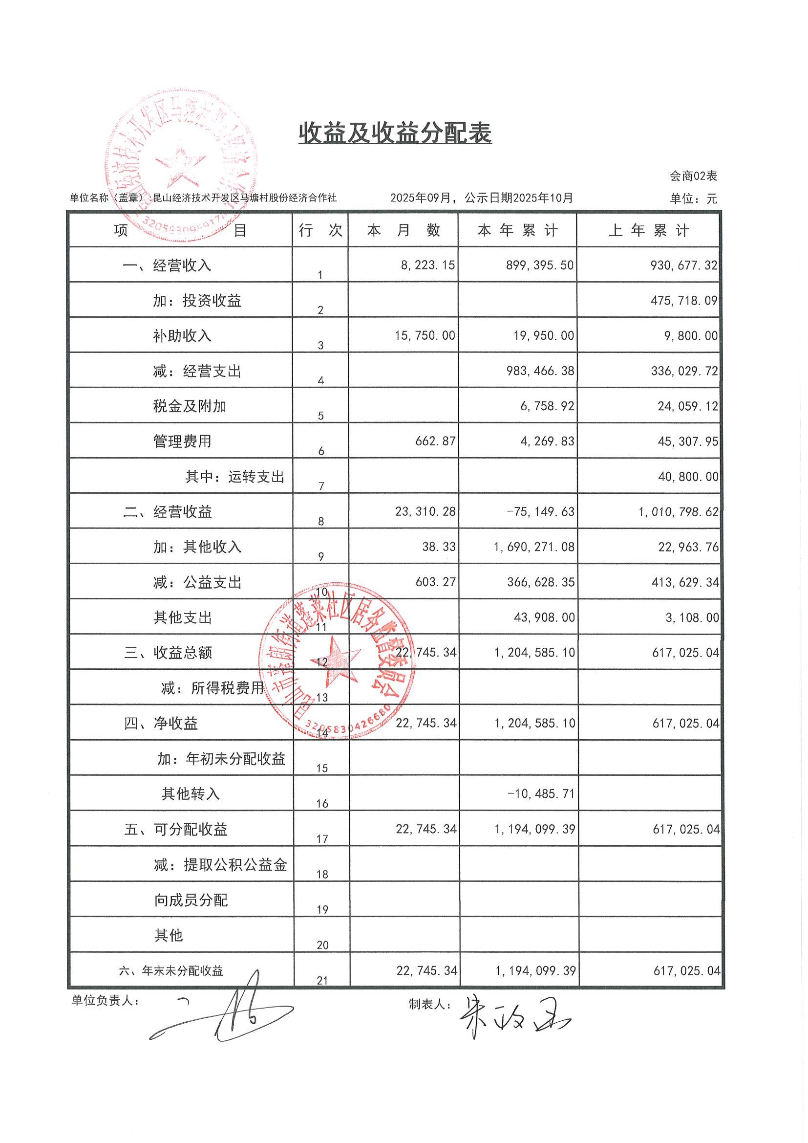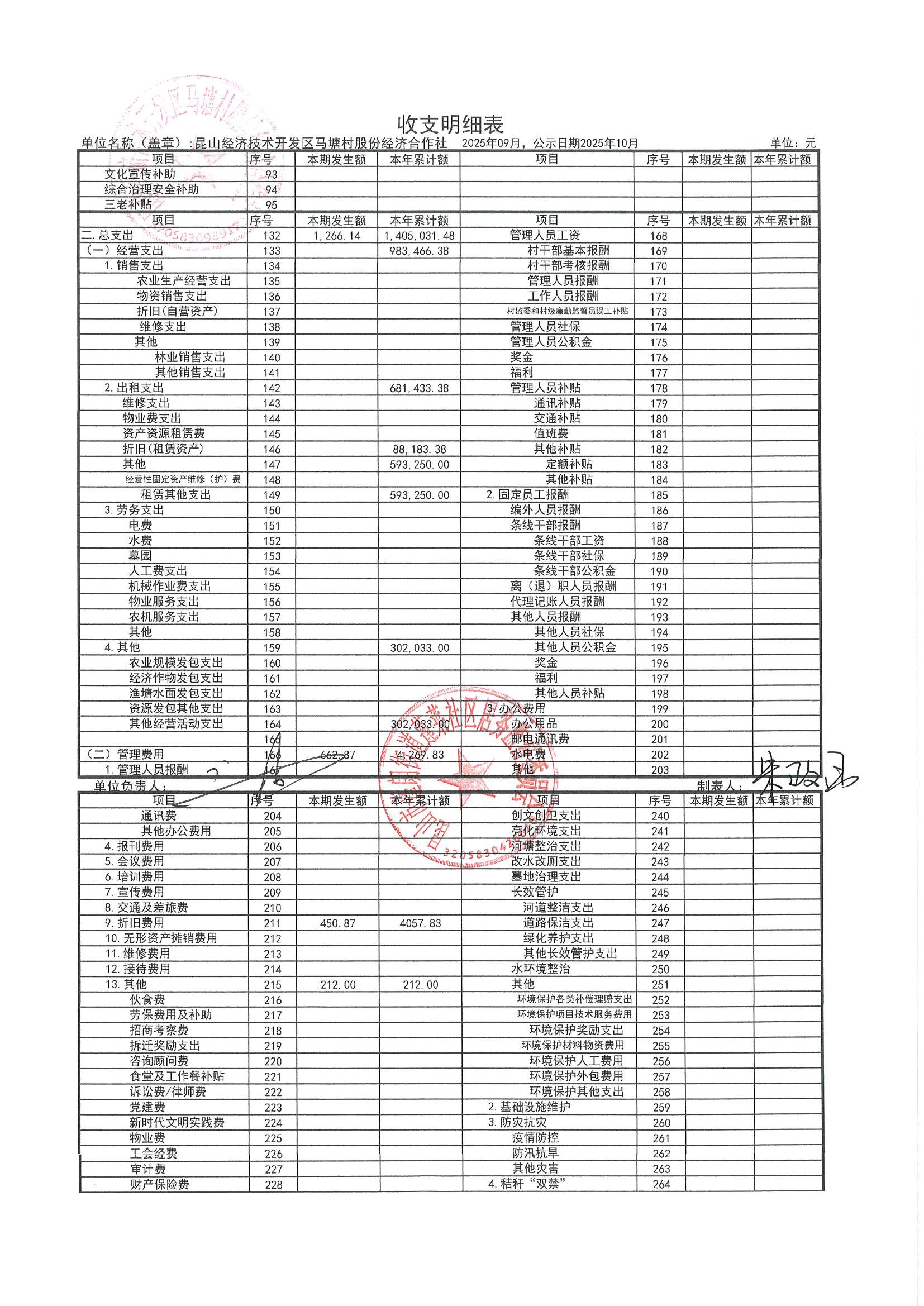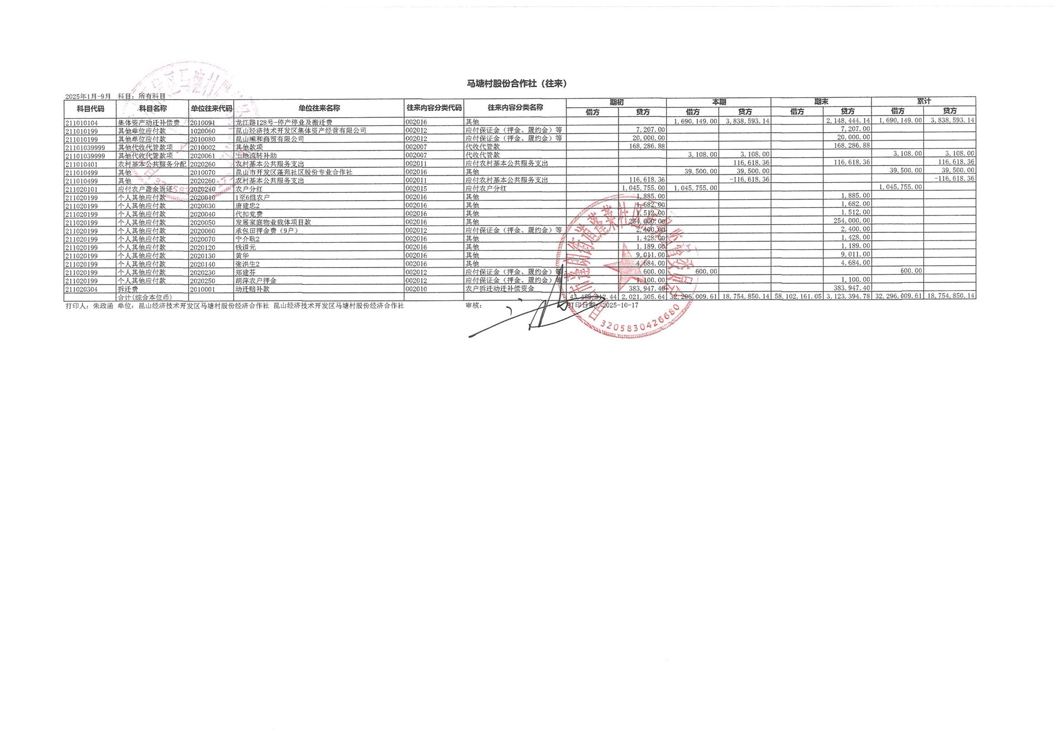 2025年9月財(cái)務(wù)公開(馬塘村股份經(jīng)濟(jì)合作社)