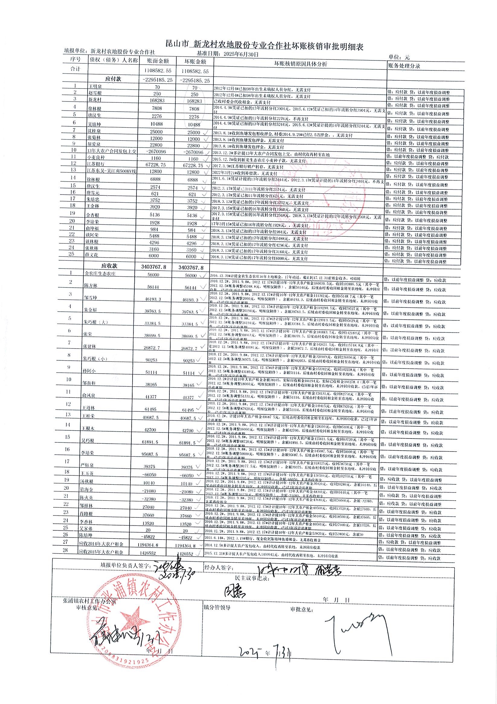 2025年新龍村農(nóng)地股份專業(yè)合作社清產(chǎn)核銷公示