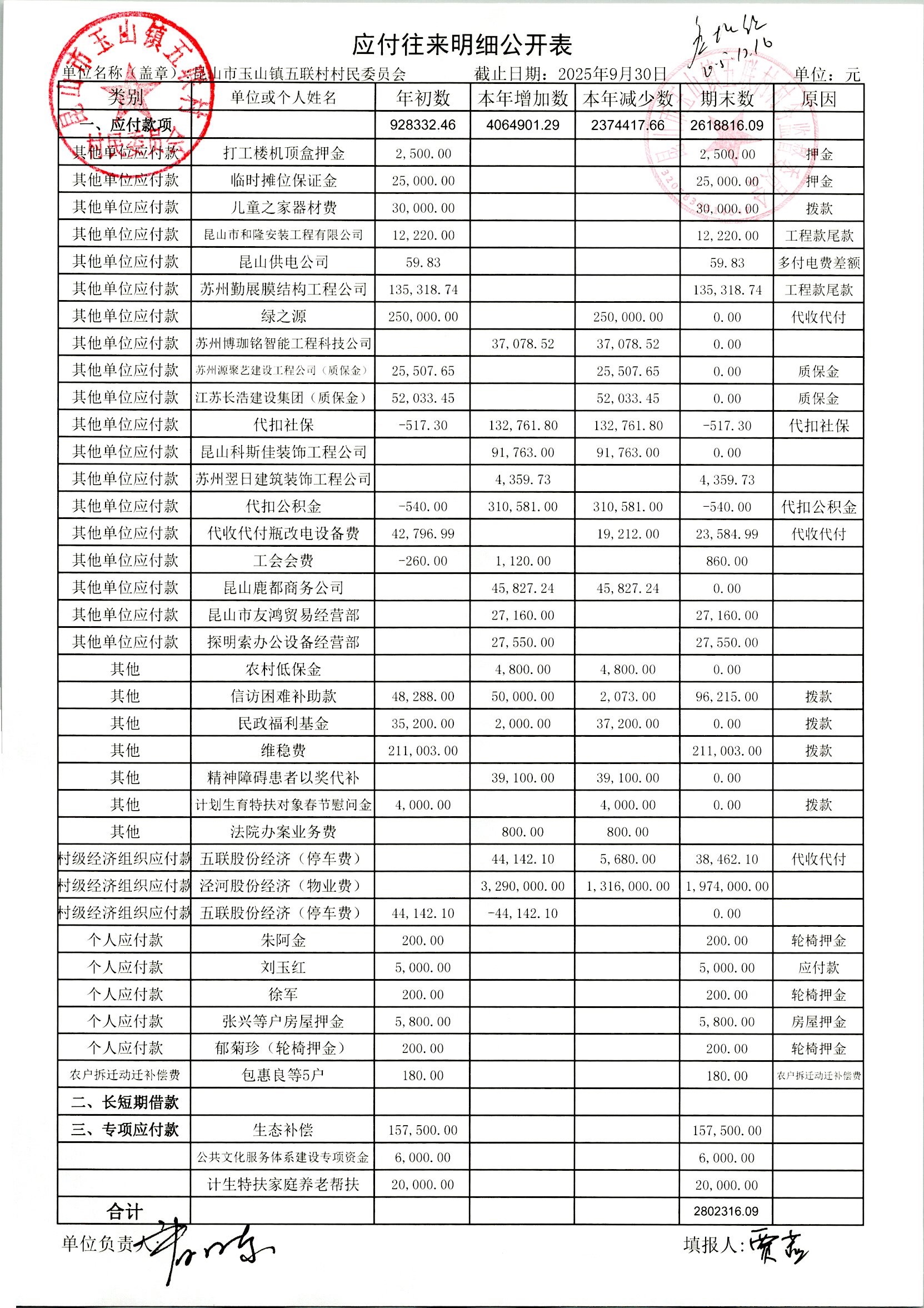2025年10月村委會財(cái)務(wù)定期公開