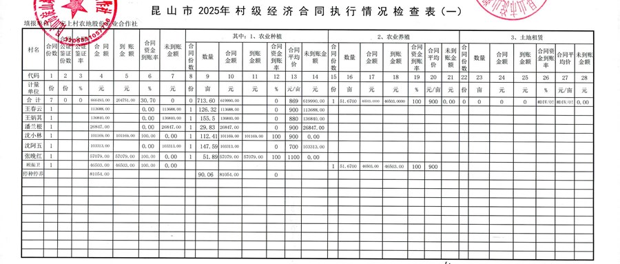 2025年第三季度農(nóng)村集體資產(chǎn)經(jīng)濟(jì)合同收繳進(jìn)度表