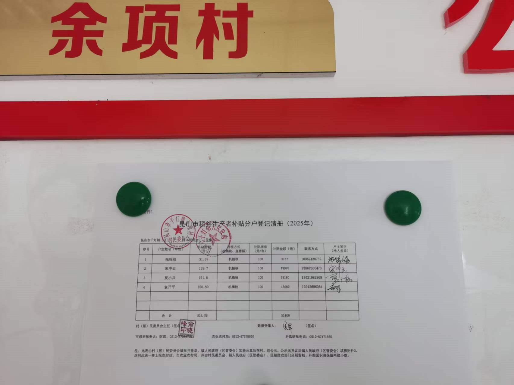 2025年昆山市稻谷生產(chǎn)者補貼分戶登記清冊(余項村)