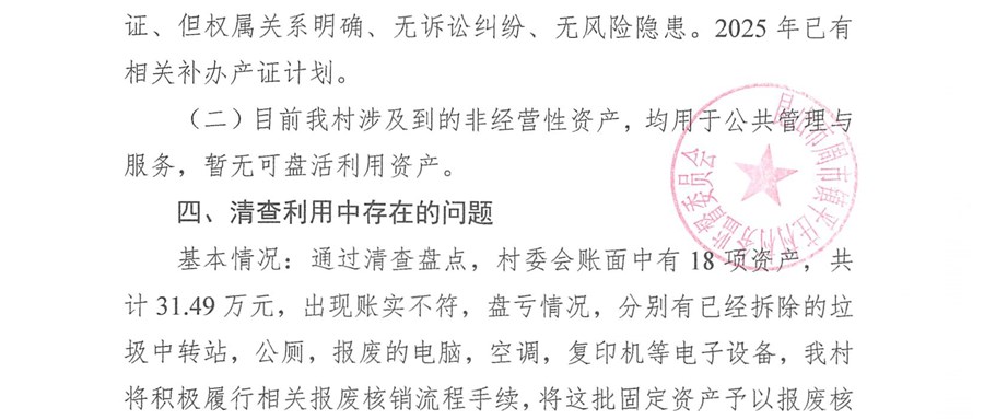 平莊村股份經(jīng)濟(jì)合作社2025年清產(chǎn)核資-清查利用匯報(bào)