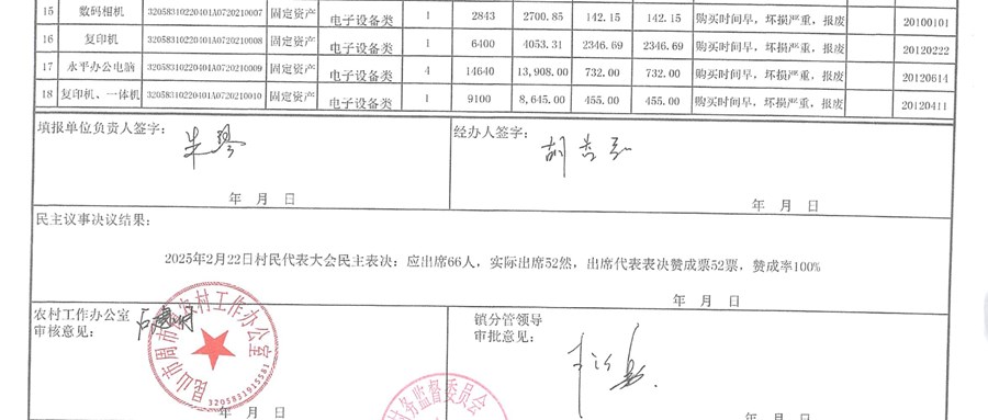 平莊村2025年固定資產(chǎn)核銷清理