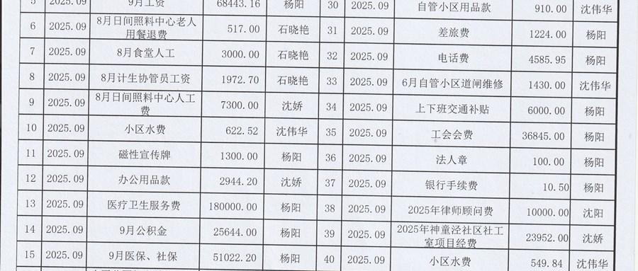 神童涇社區(qū)居民委員會財務(wù)公開(2025年9