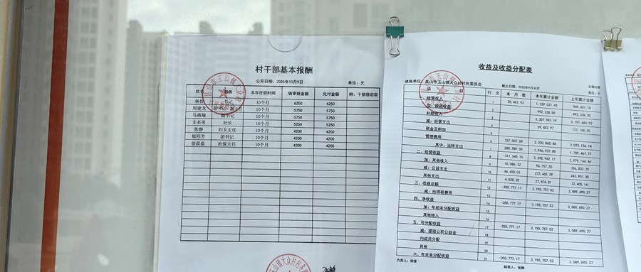 大眾村2025年10月份財(cái)務(wù)公開圖片資料