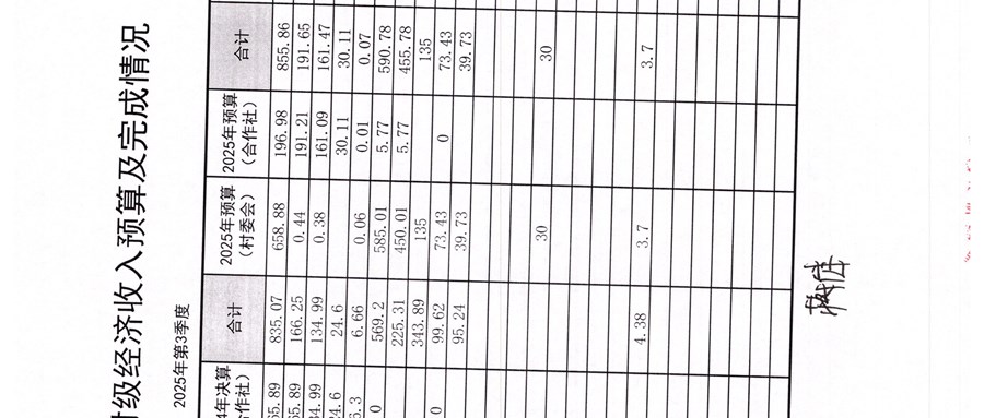 高勇村2025年3季度村級經(jīng)濟收入、支出完成情況及合同執(zhí)行情況