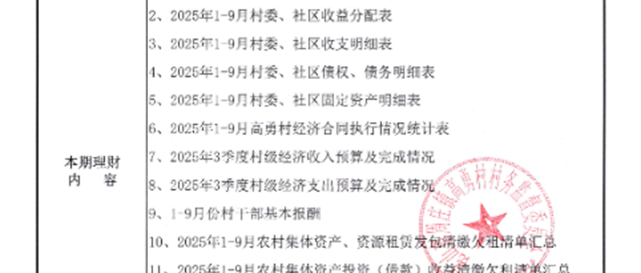 2025年3季度高勇村民主理財資料公開